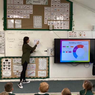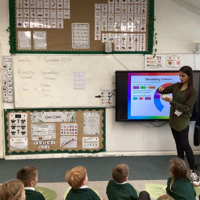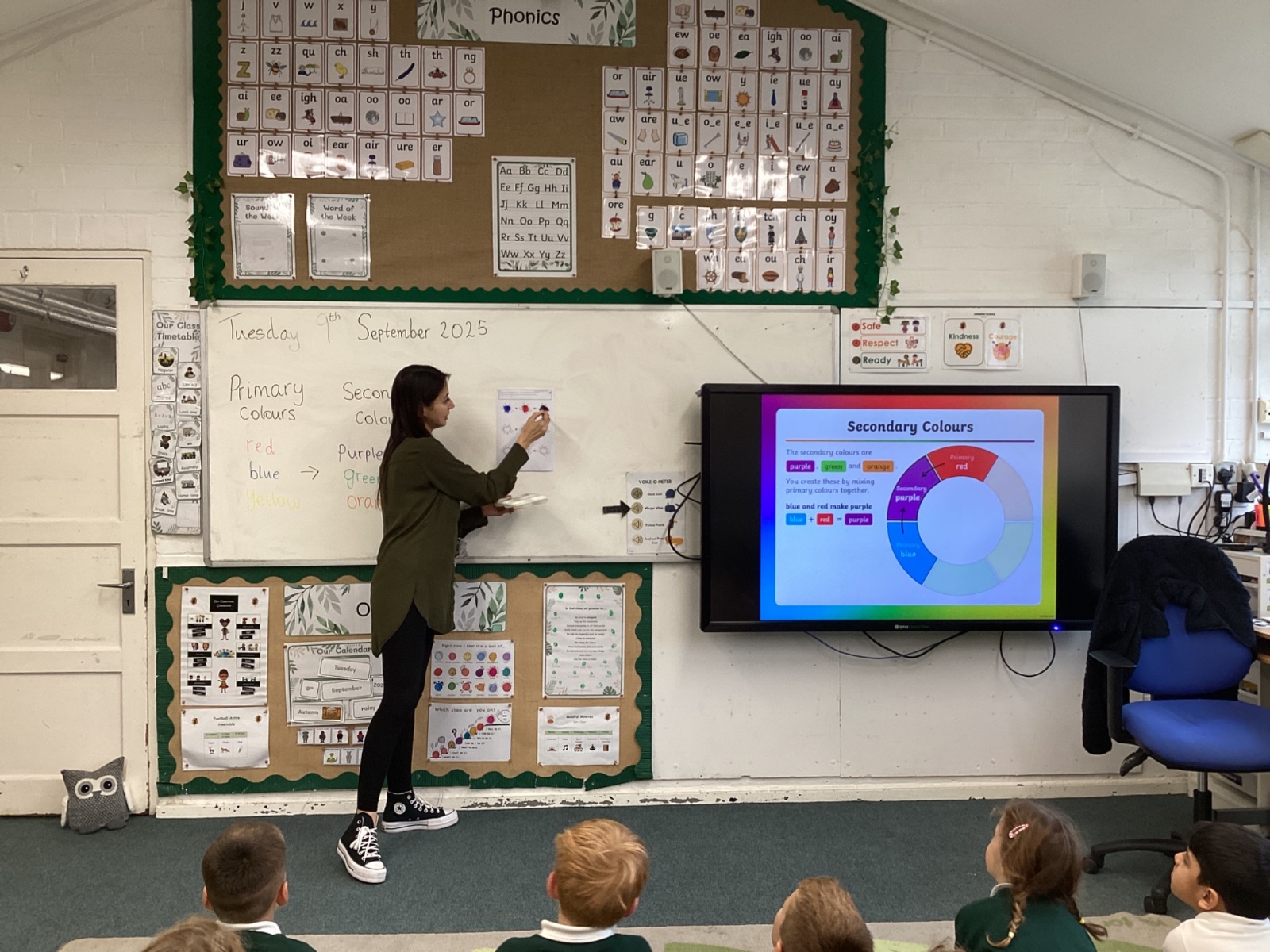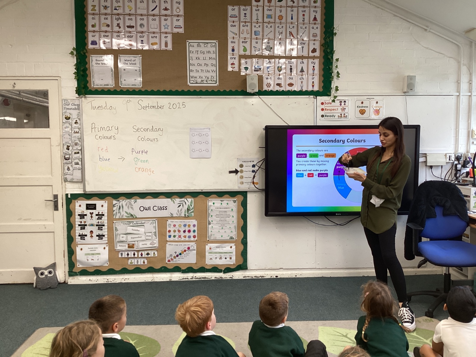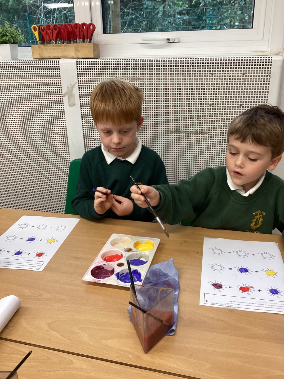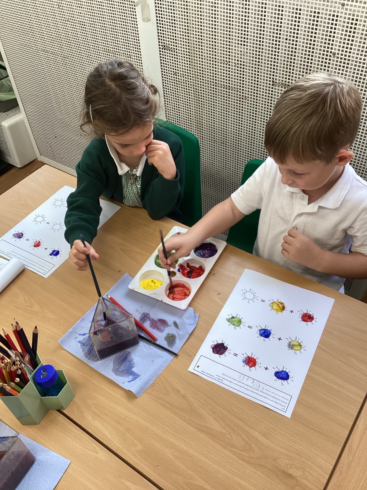 This week in Owl class we have been very busy immersing ourselves in our new topic; 'Owlselves'. We have discussed how we have changed over time and explored what we could do as babies, what we can do now and what we will be able to do as adults. In Science, we took ourselves outside to draw and label our bodies. In Maths we have been focusing on number. We have looked at number lines and represented number in different ways. In art, we explored primary and secondary colours through colour mixing.