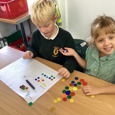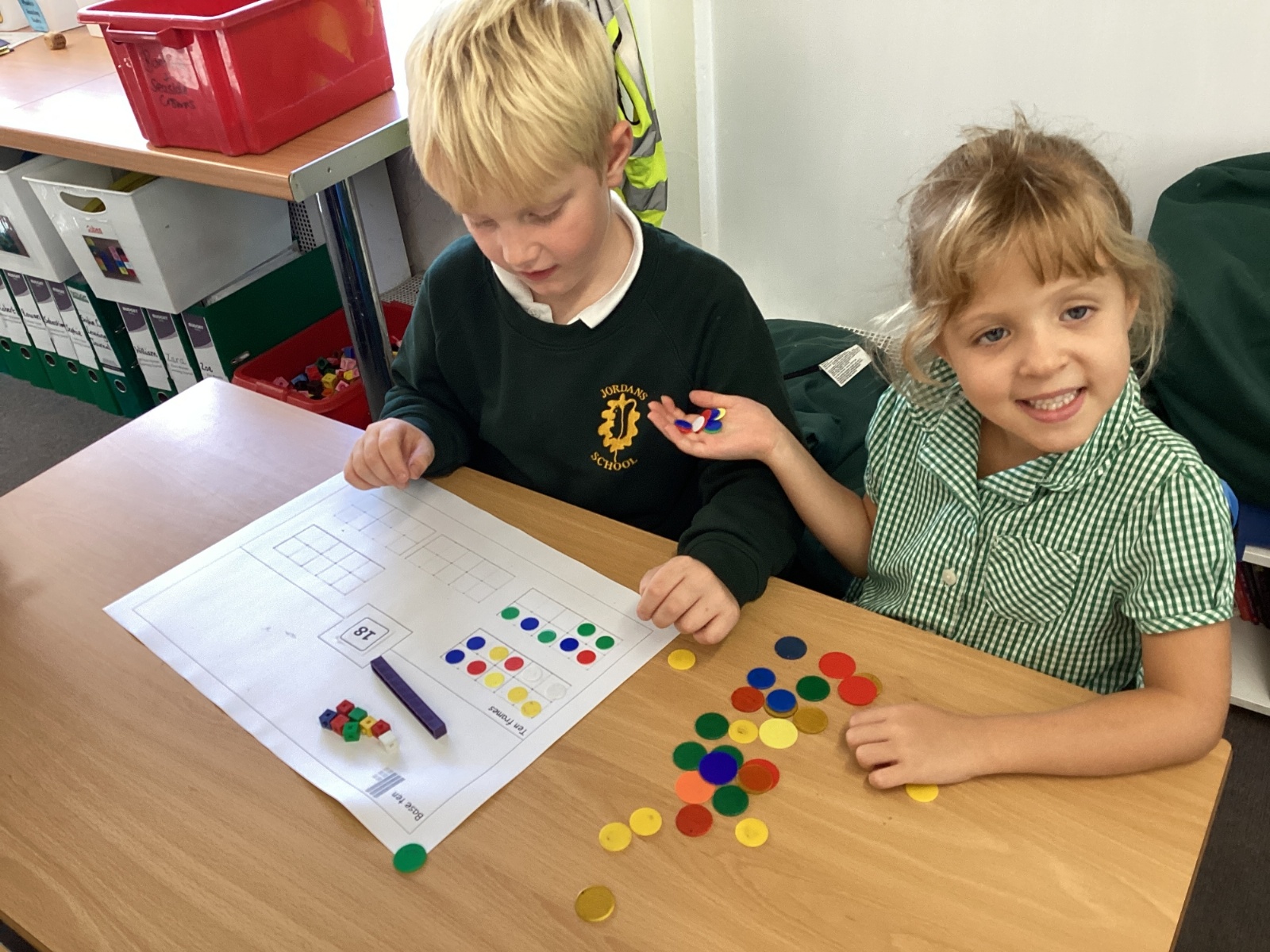 In Year 2 we learn to work with numbers up to 100. This week we practised representing these numbers in  numerals, words and pictures. We used our maths equipment to make numbers too!