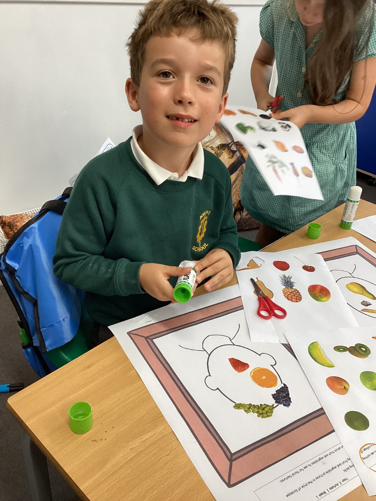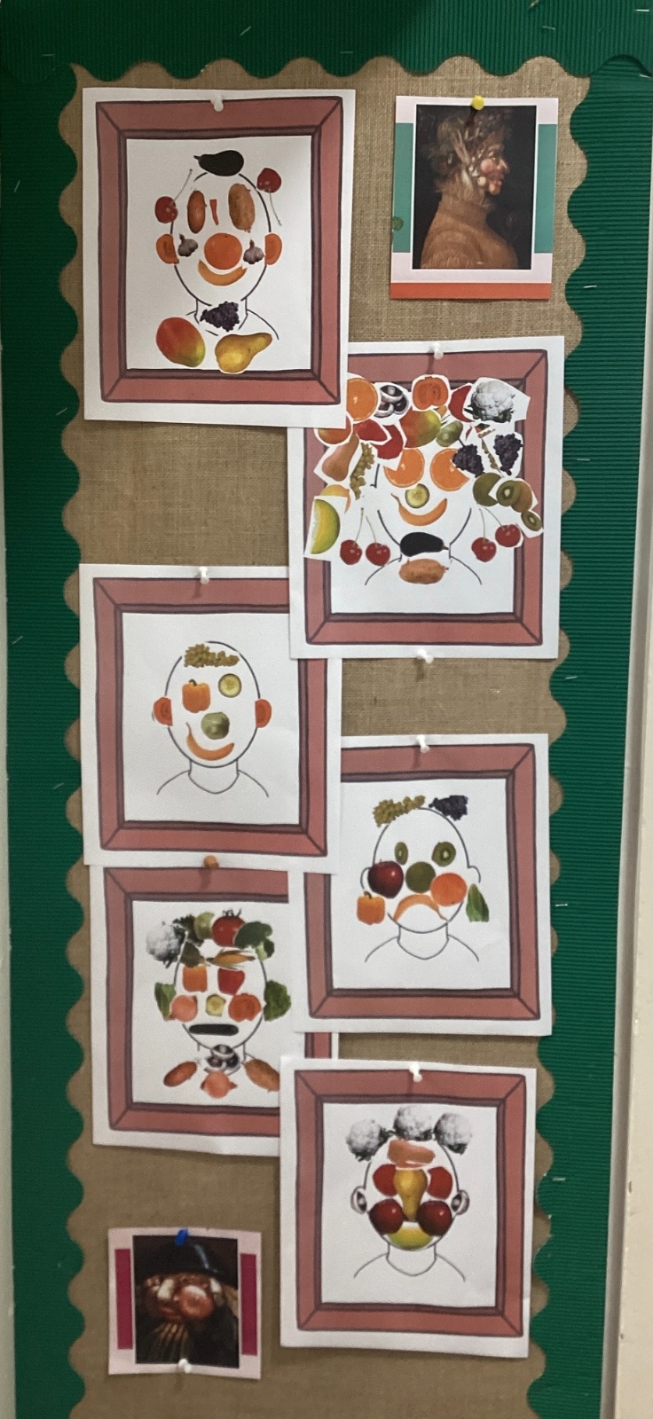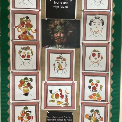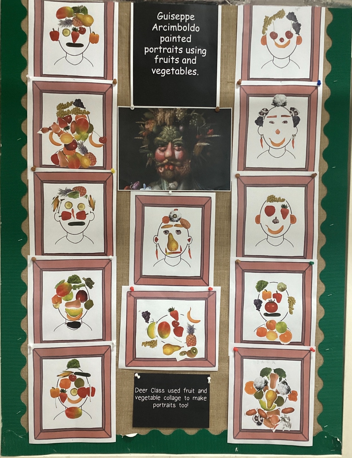 Guiseppe Arcimboldo was an Italian artist who created portraits using fruits, vegetables, flowers and fish. Deer Class studied his work this week and emulated his style with their own collage portraits.