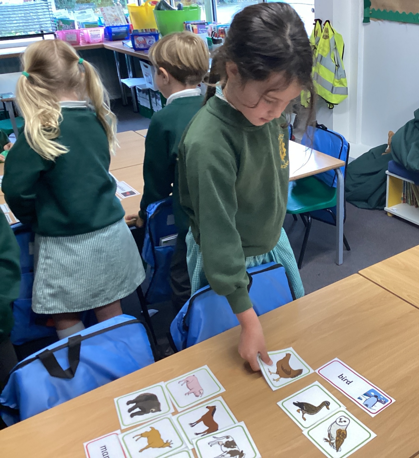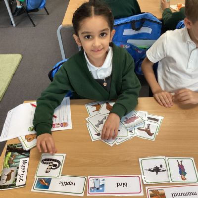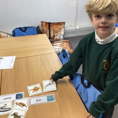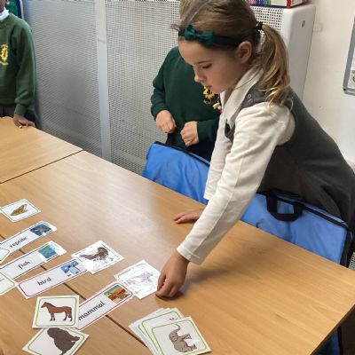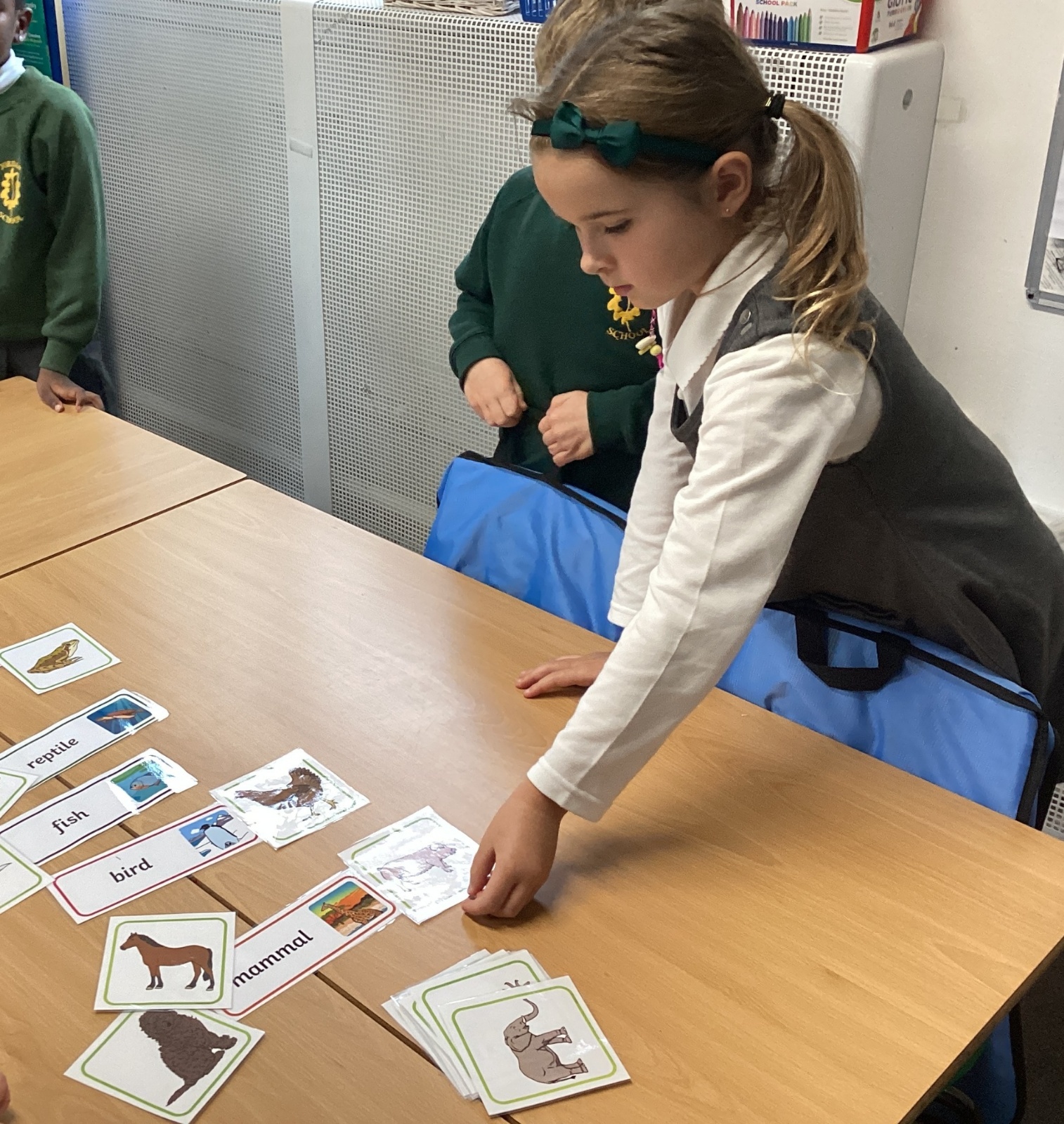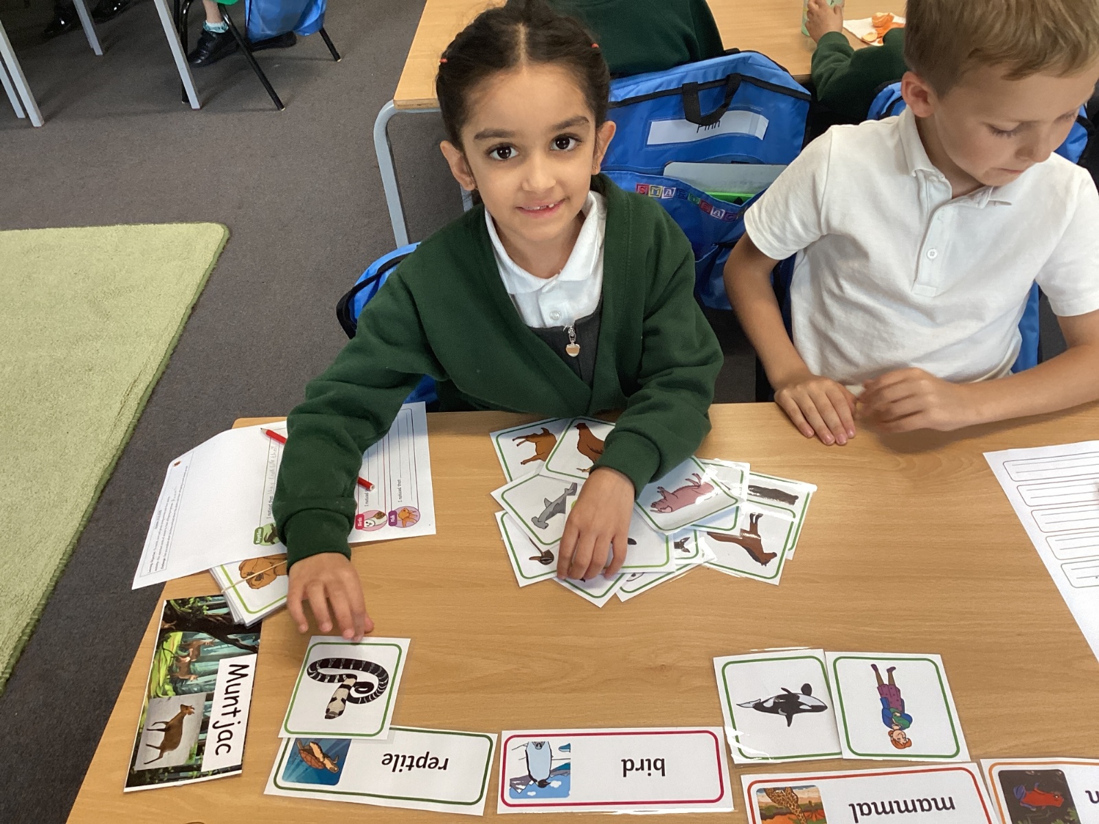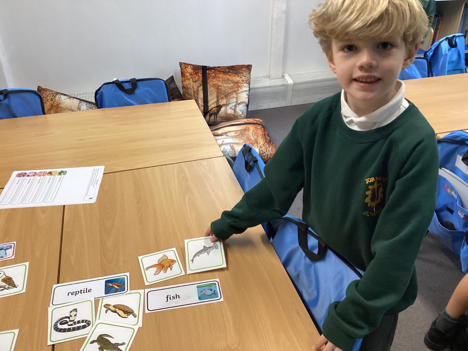 In our science lesson we leaned about the different types of animals. We sorted pictures into mammals, fish, birds, reptiles, amphibians and insects. We also looked at animal babies and discussed which ones looked like their parents and which were very different (a caterpillar and a butterfly for example).