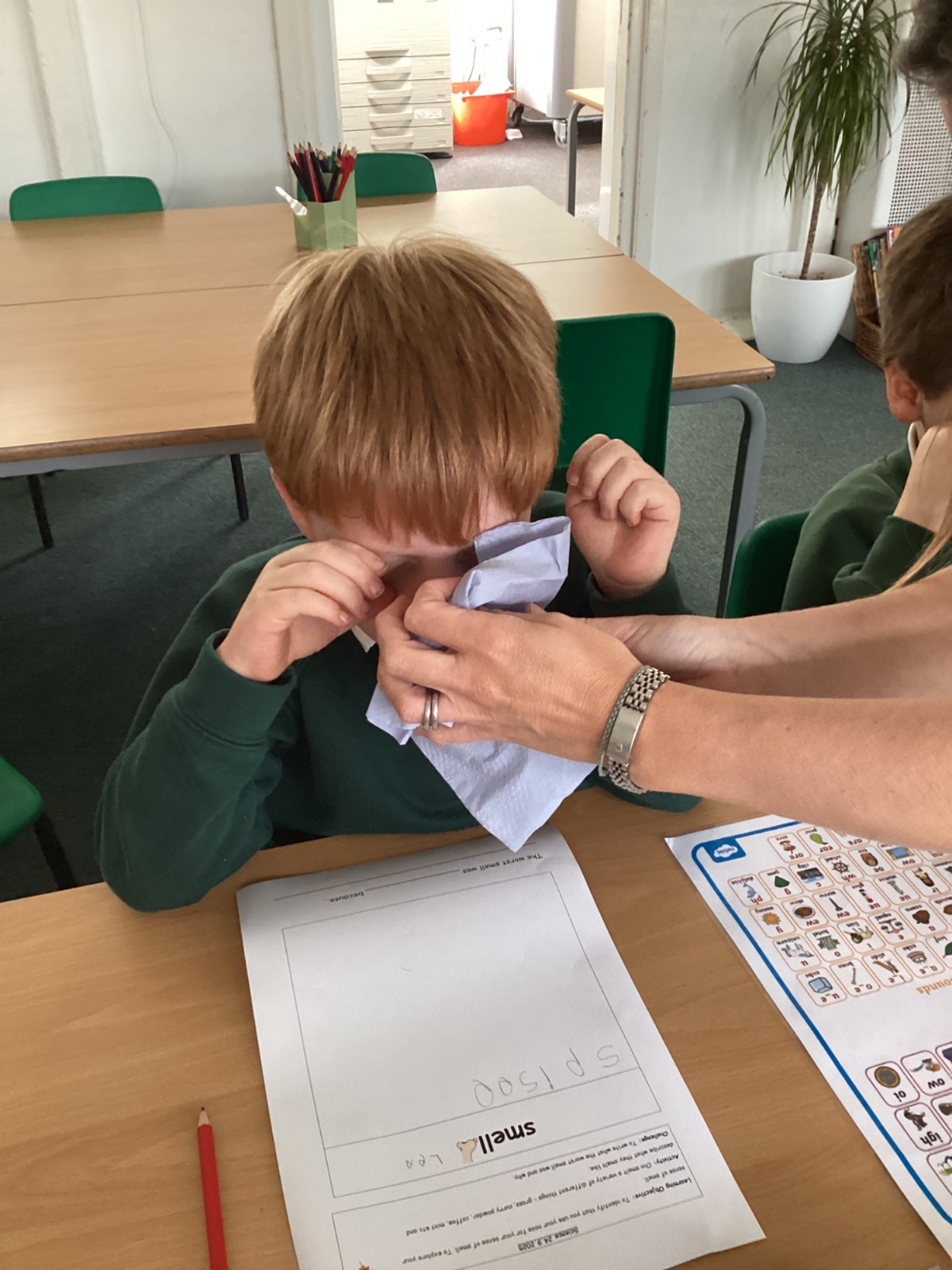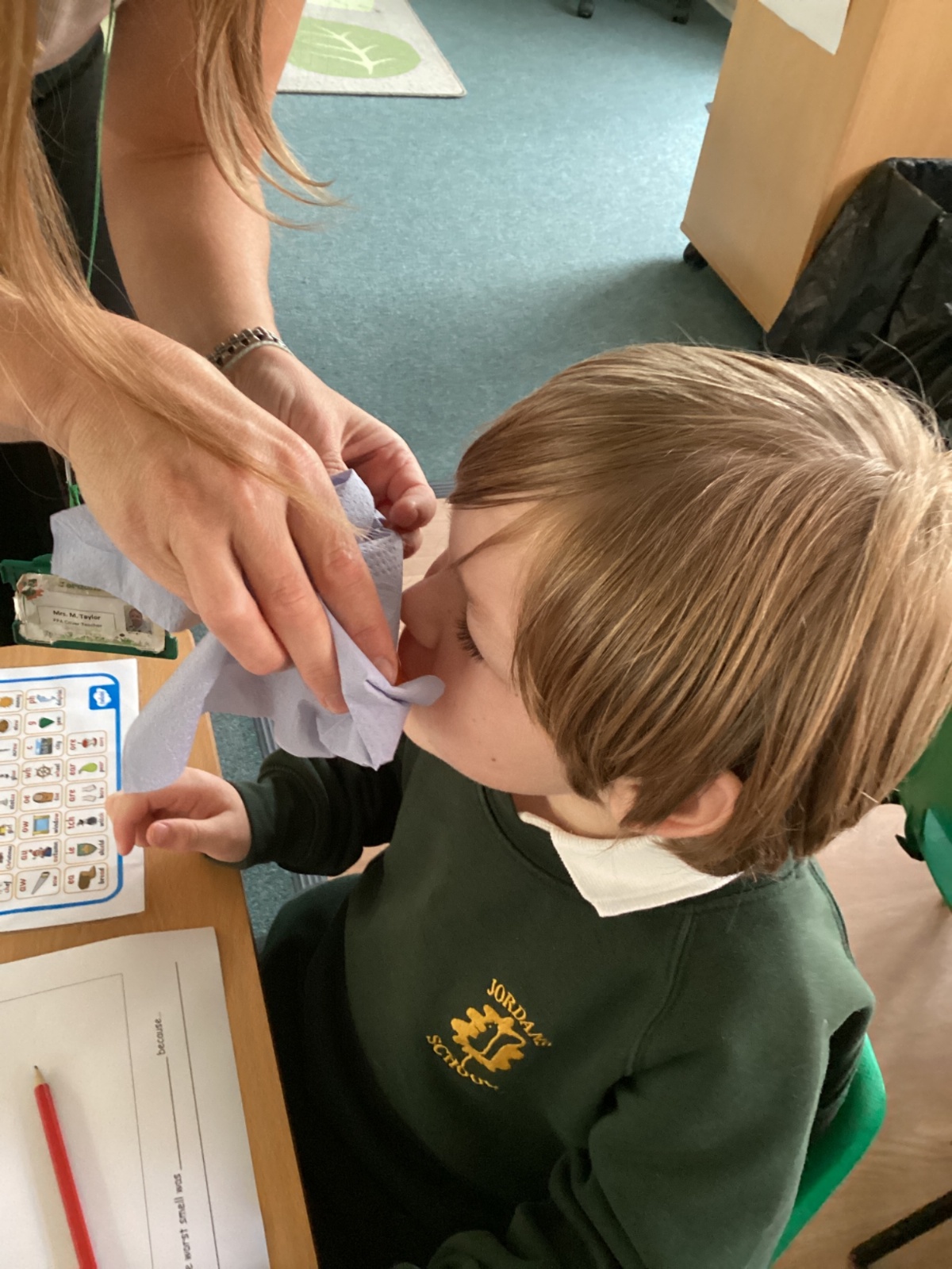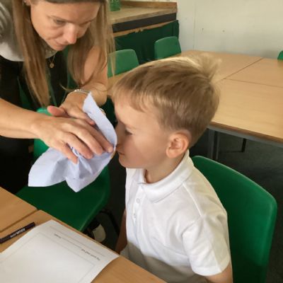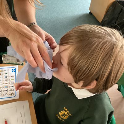 In Art this week we have been exploring using watercolour to paint a background. In maths we have been learning about number lines and identifying missing numbers in a number line. As well as solving mathematical problems with missing numbers, we created number lines with Numicon. In English, we have been learning all about families. We created a labelled picture of our families and wrote sentences all about someone in our family. This week in science, we explored our sense of smell!