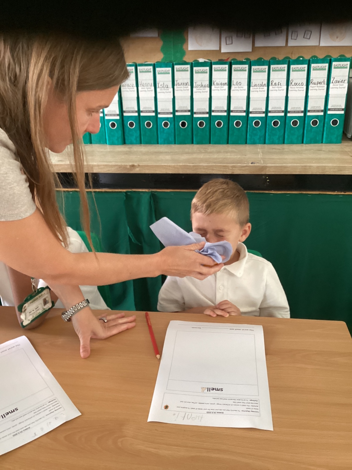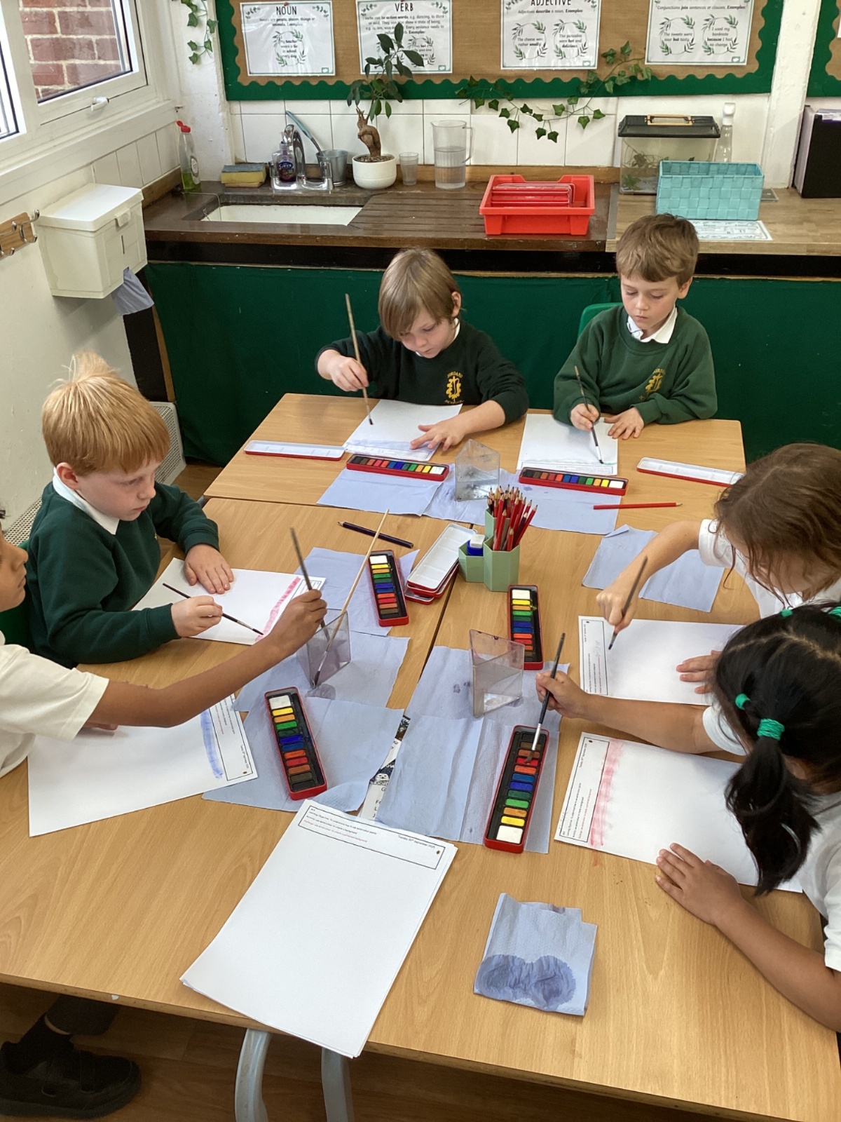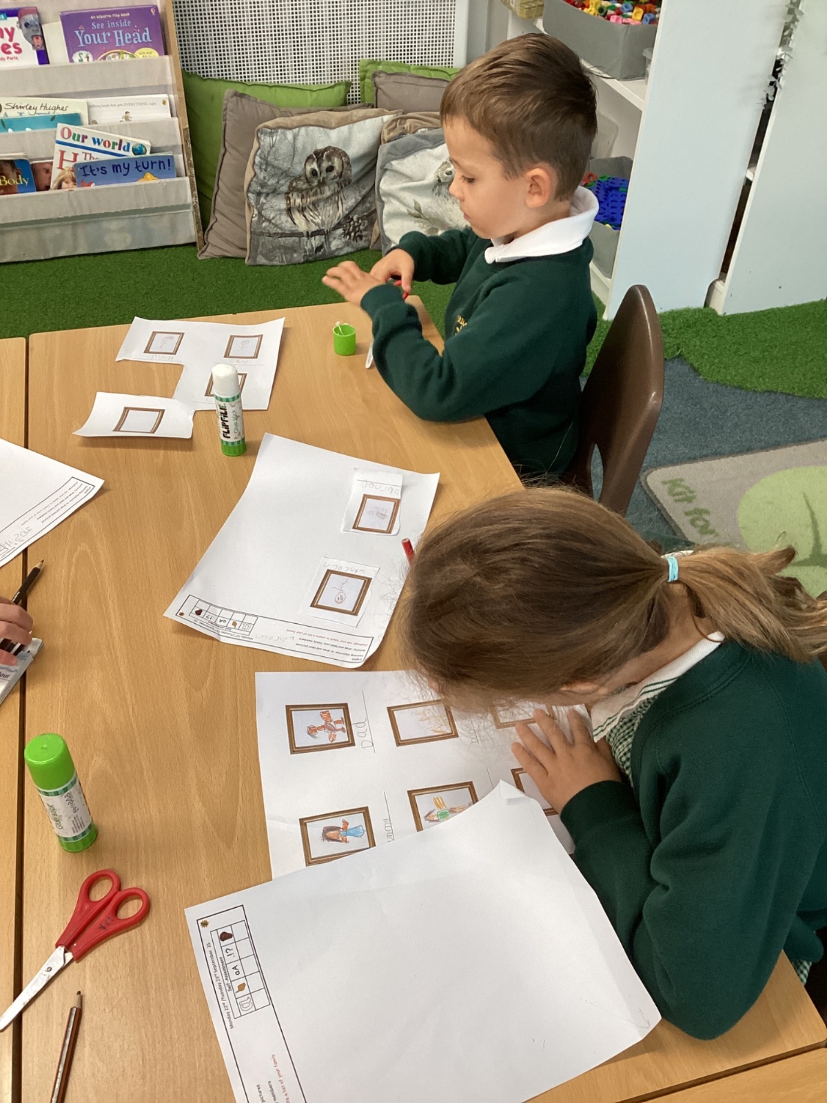 In Art this week we have been exploring using watercolour to paint a background. In maths we have been learning about number lines and identifying missing numbers in a number line. As well as solving mathematical problems with missing numbers, we created number lines with Numicon. In English, we have been learning all about families. We created a labelled picture of our families and wrote sentences all about someone in our family. This week in science, we explored our sense of smell!
