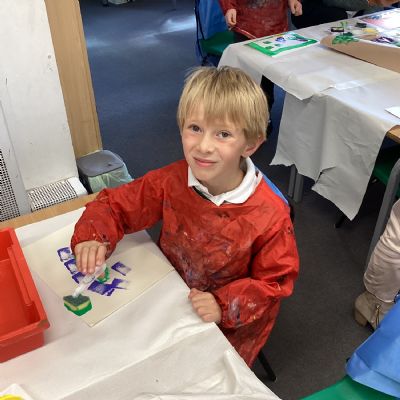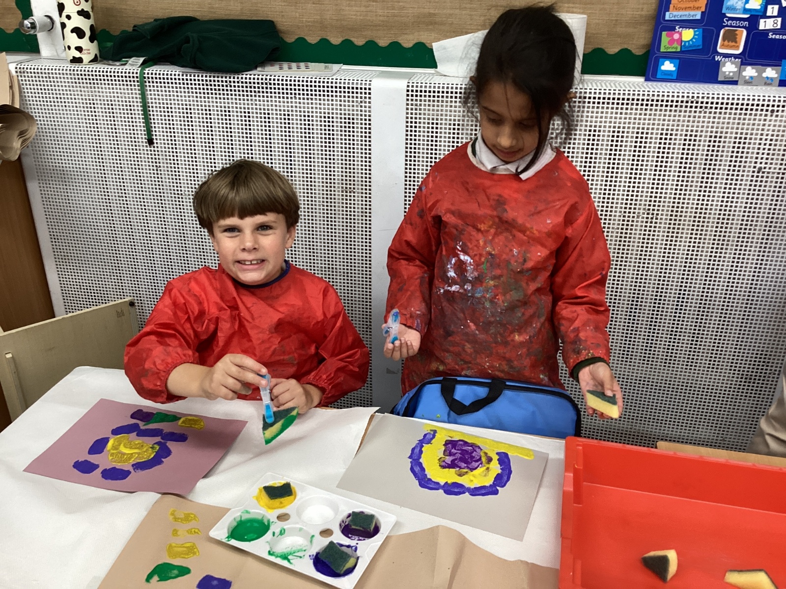 We are continuing our study of The Snail by Henri Matisse. Deer Class used sponge printing skills this week to create their artwork.