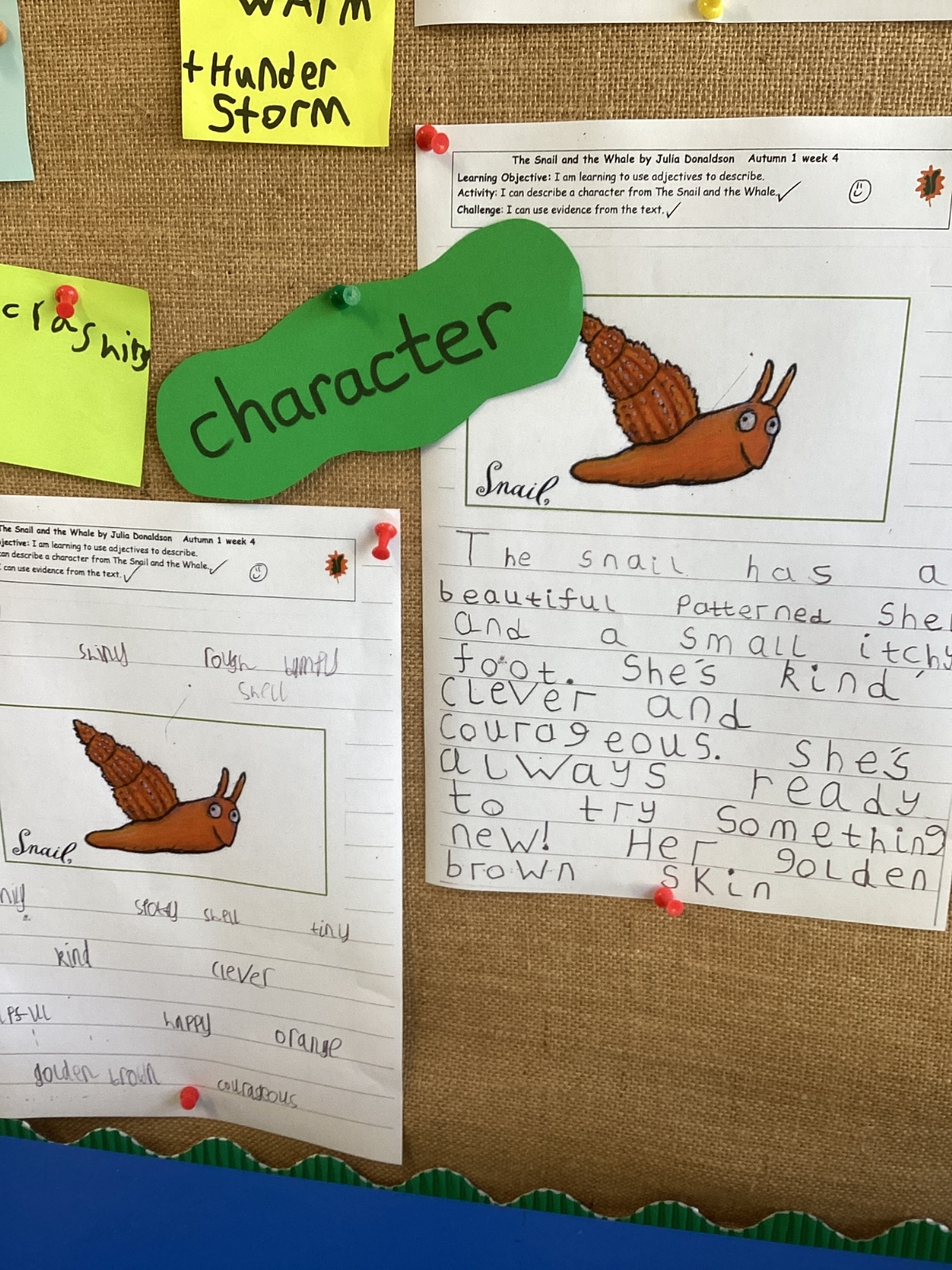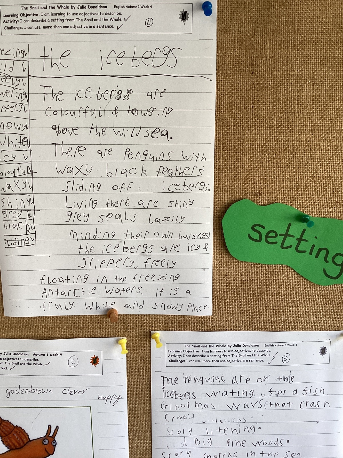 Deer Class wrote some wonderful descriptions of the settings and characters in The Snail and the Whale. They used some excellent adjectives and adverbs!