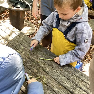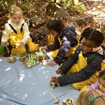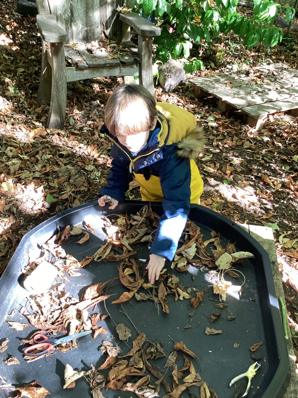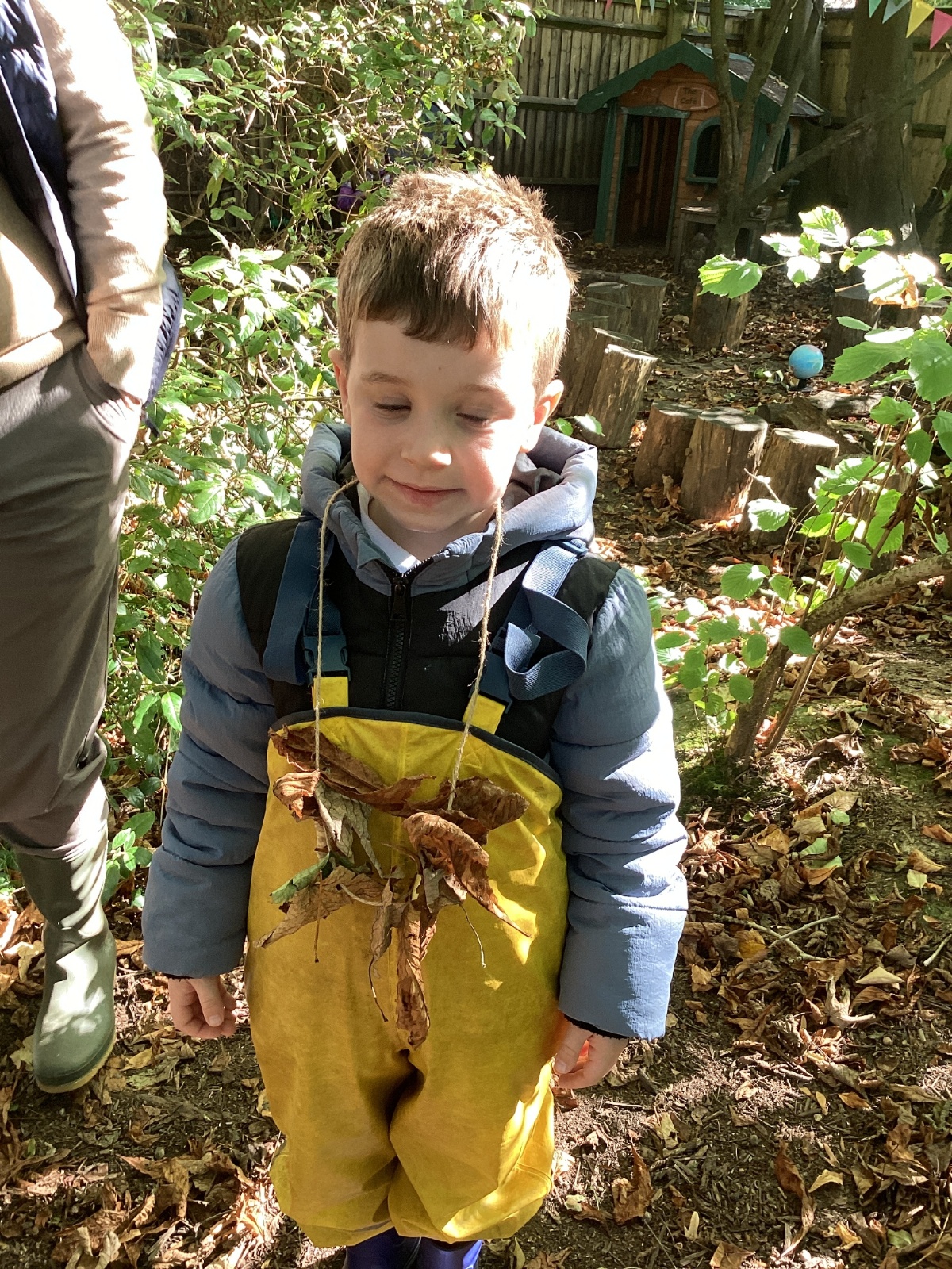 In the Bluebell Woods the talk was of the autumn equinox. The children made necklaces of autumn leaves, had a tea party with some cuddly woodland animals and shaved elder sticks to make wands.