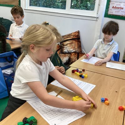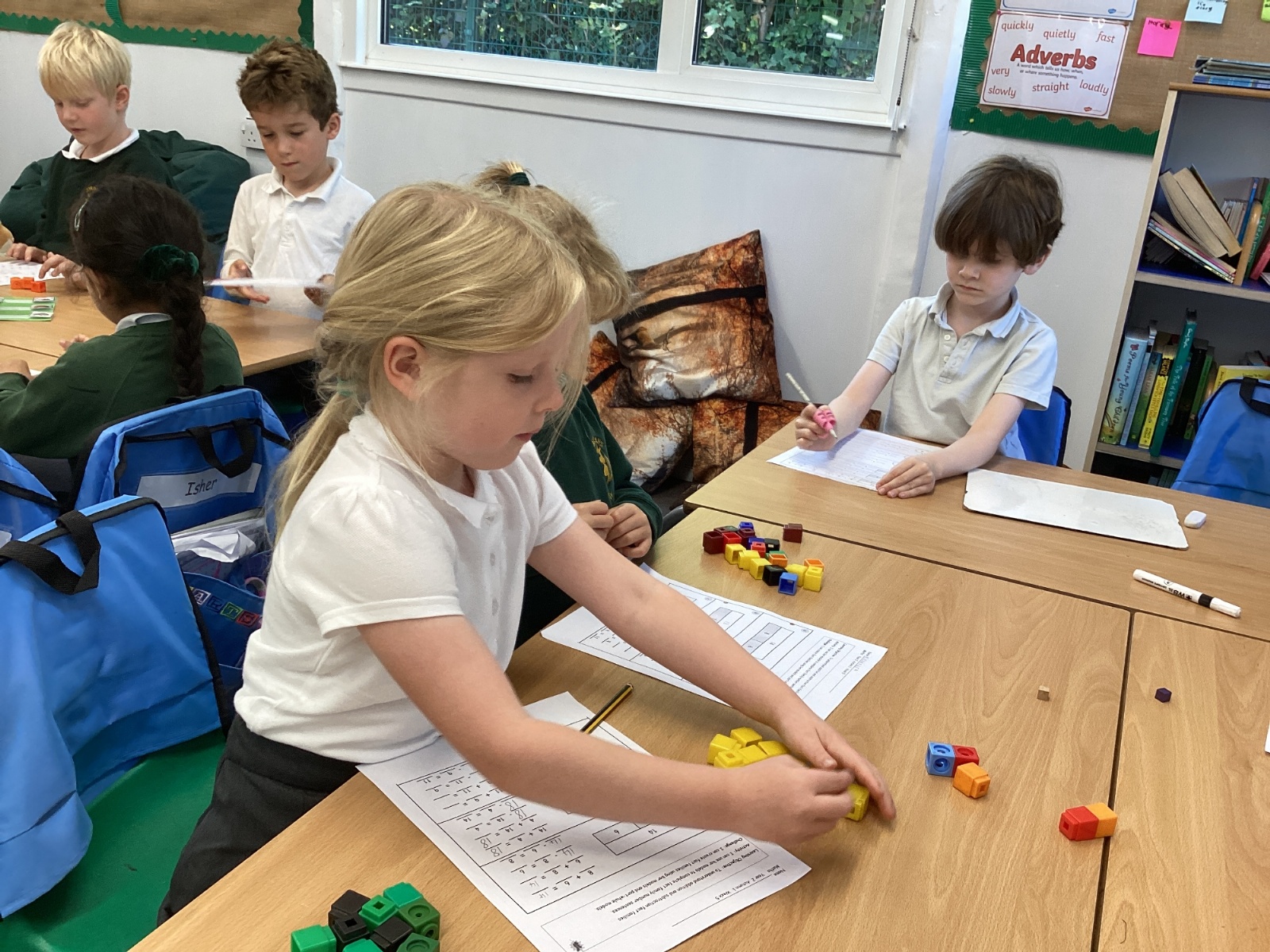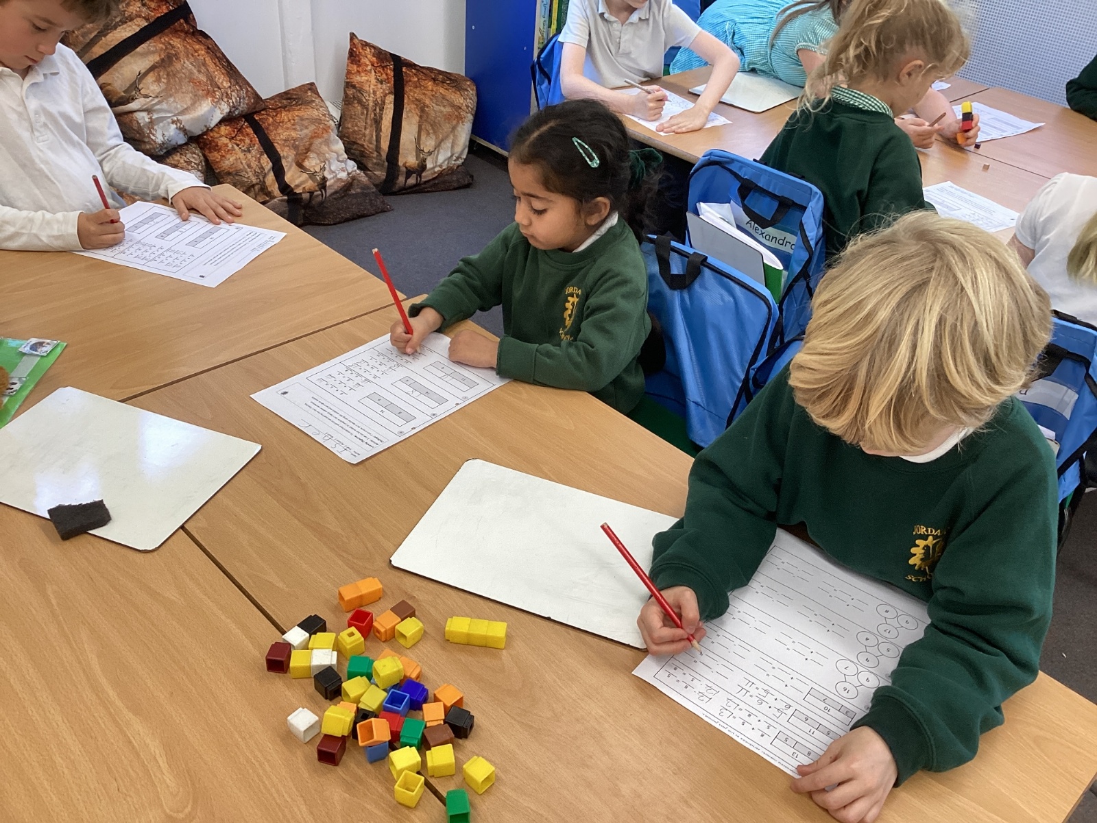 In maths this week, we worked with 'fact families'. Using 3 related numbers, the children composed addition and subtraction number sentences e.g. 6+5=11, 5+6=11, 11-6=5 and 11-5=6.