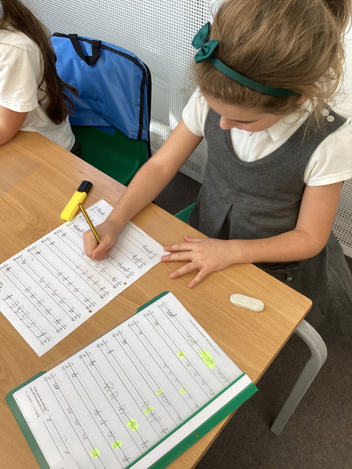 Our joined up handwriting skills are developing well. This week we concentrated on letters with descenders. The children were able to sit the letters on the line and form them in a cursive style with loopy tails.