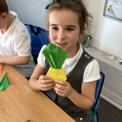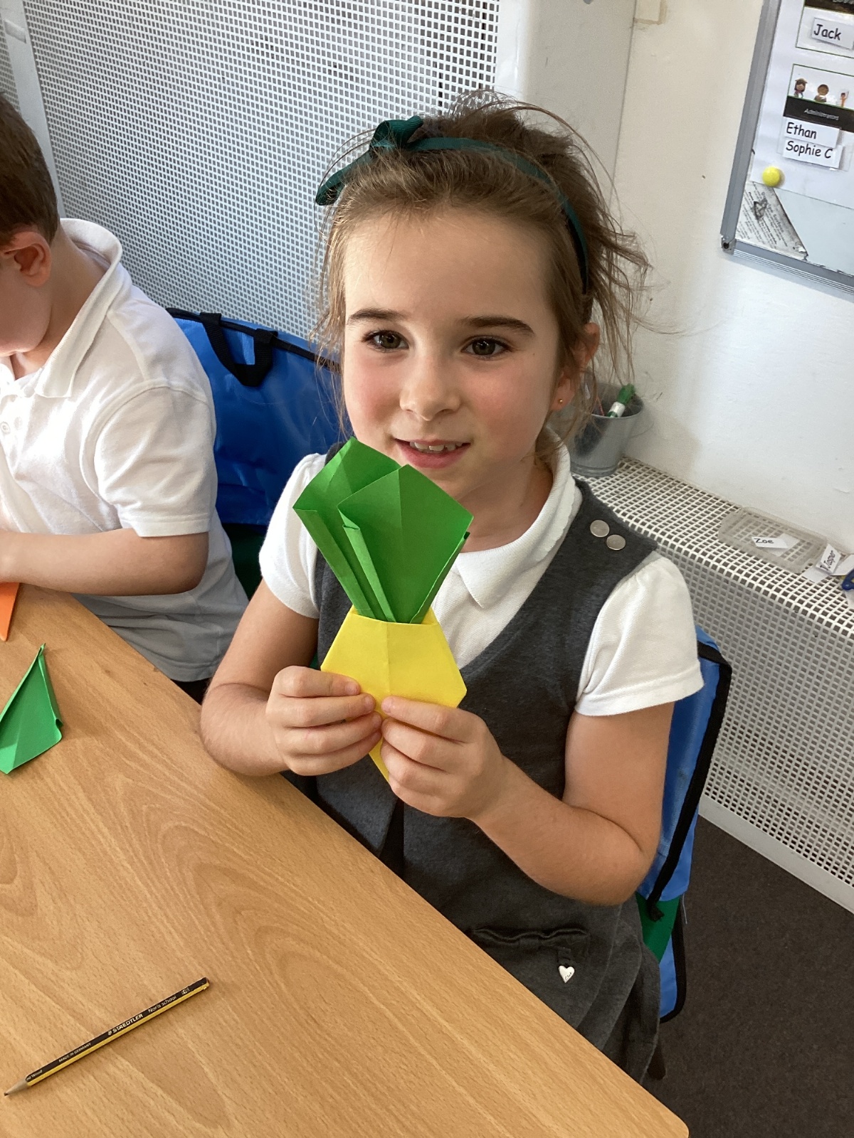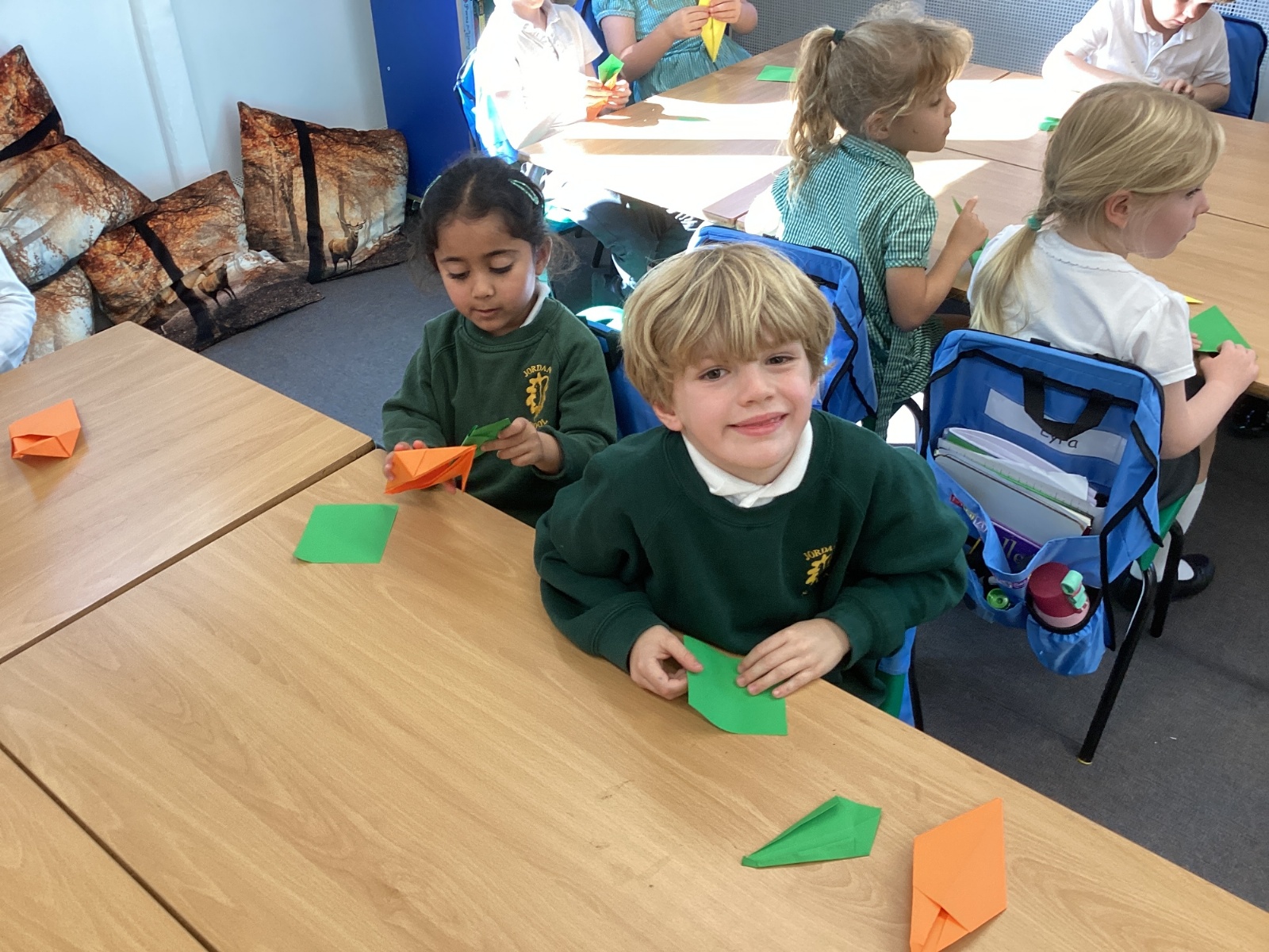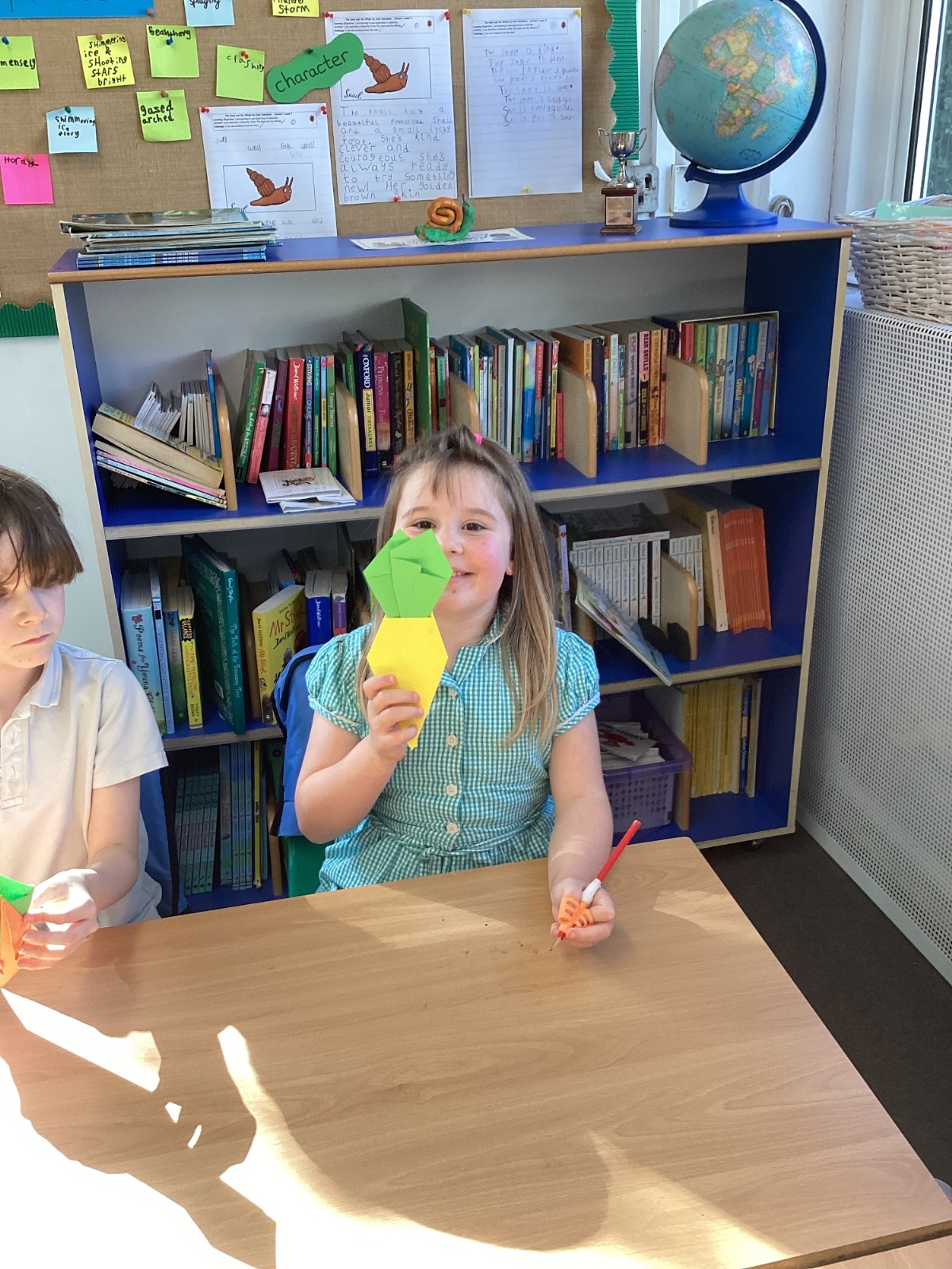 In preparation for our school Harvest Assembly, we made origami carrots and parsnips! The children found the paper sculptures quite tricky to make, but they persevered. The results are impressive!
