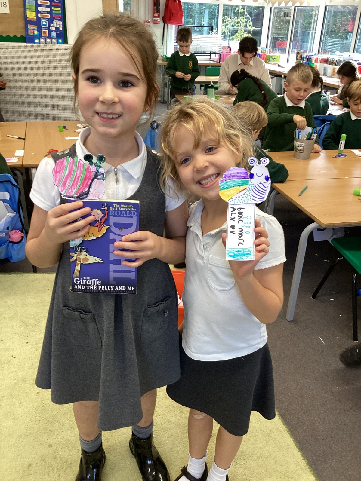 We also made snail bookmarks by cutting curly shapes.