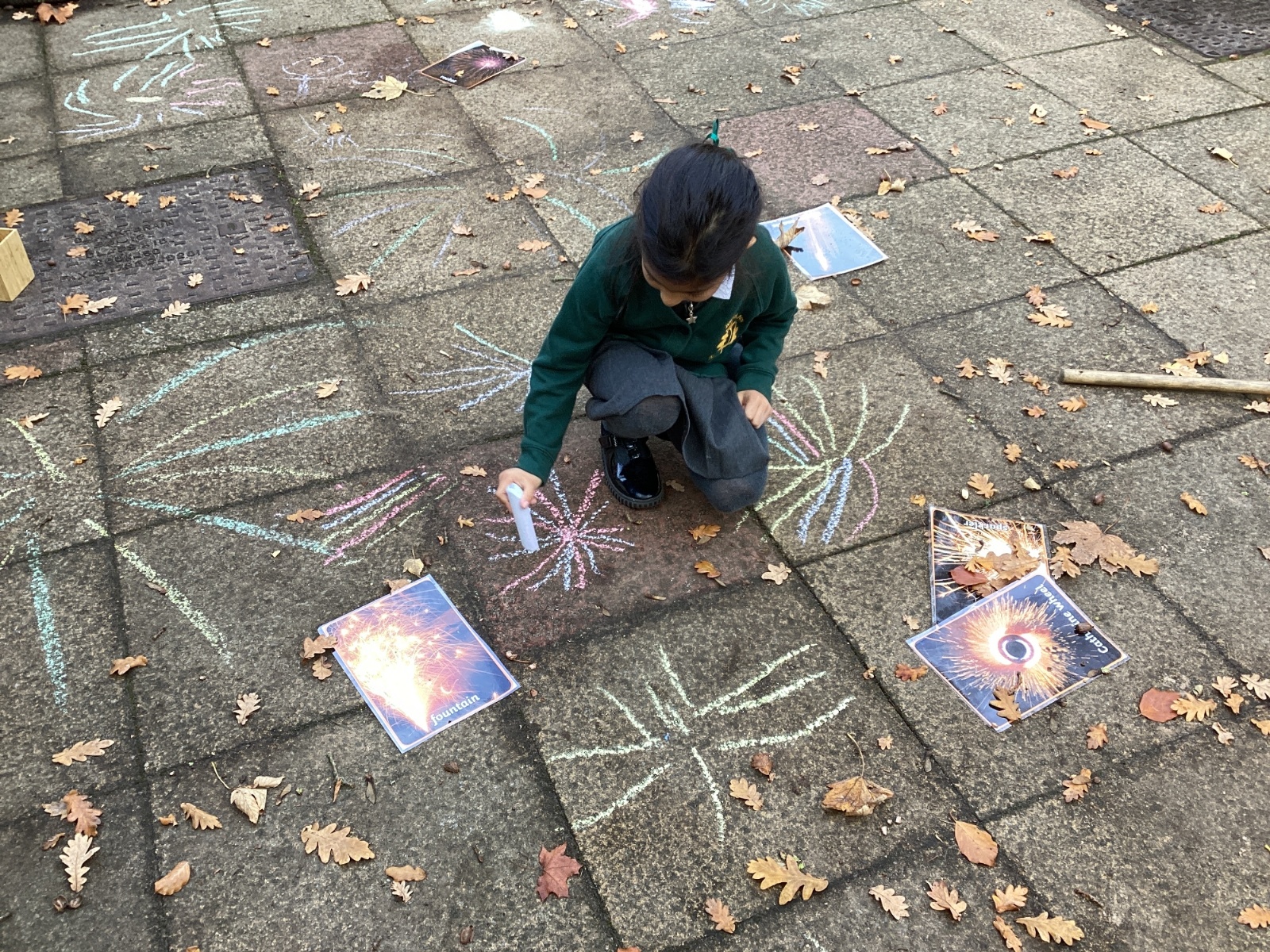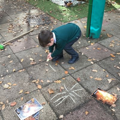 -Using chalk pens to write some keywords linked to Bonfire Night.
