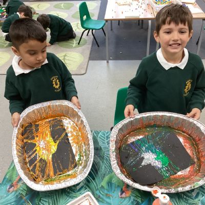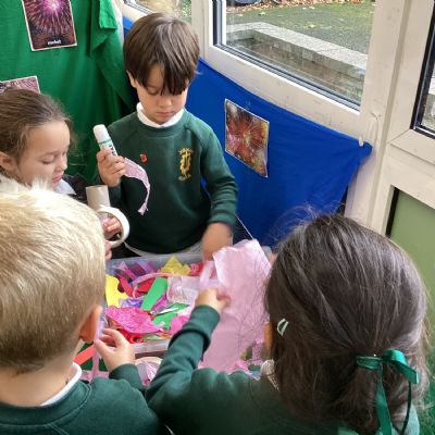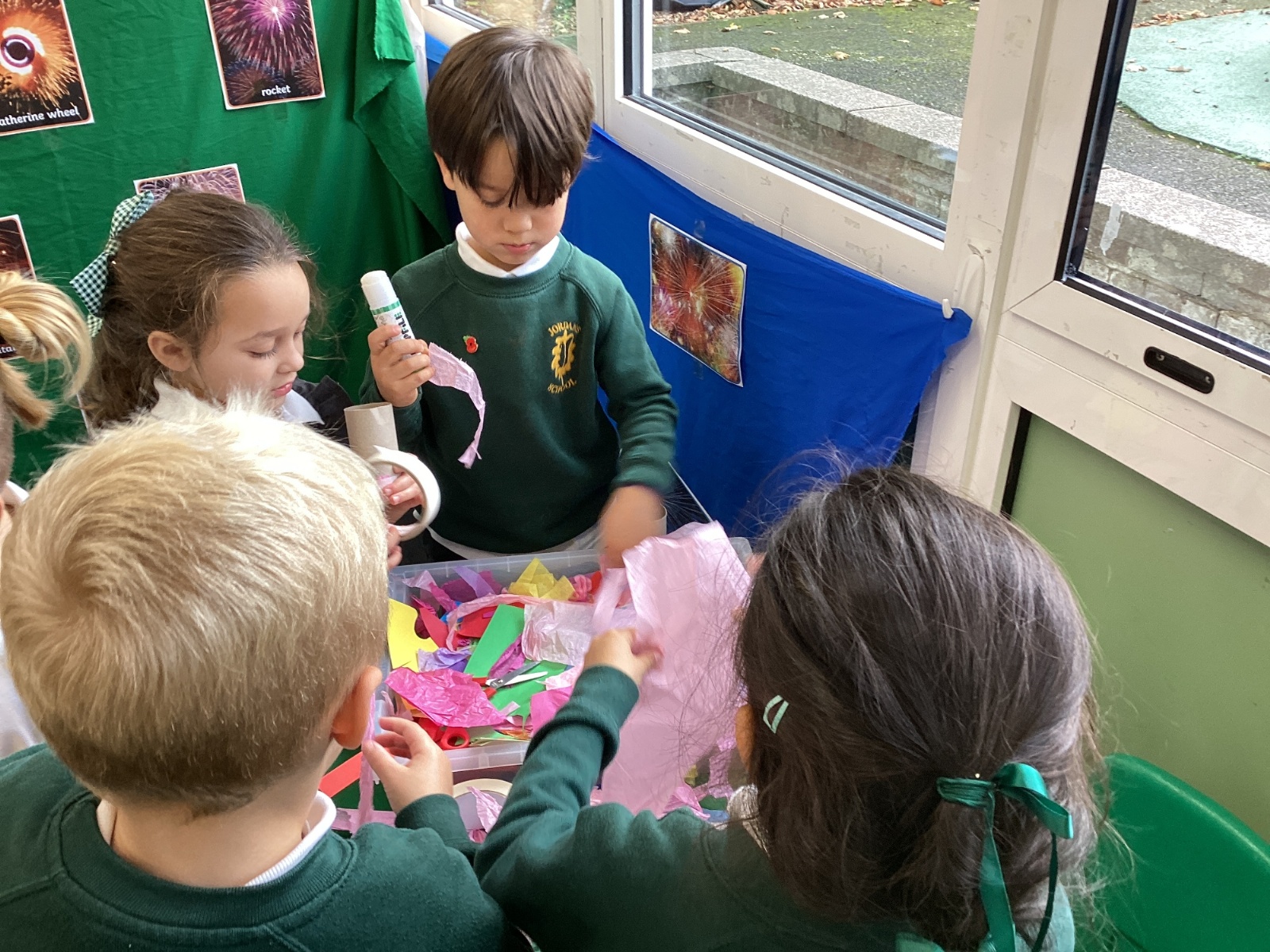 This week, we have been learning about a story called 'Sparks in the Sky'. This links perfectly to our theme of Bonfire Night this week. We then wrote some simple words that describe fireworks such as 'pop' and 'spark'. In Maths, we have had a real focus on composition of numbers. In our UTW sessions, we have been learning about the story behind bonfire night and Guy Fawkes. For PSHE, we have been discussing how members of our community help us during Bonfire Night. We talked about the roles of a firefighter and why its so important to stay safe from fireworks. During our DT sessions, we have been recreating the painting 'Bridge Over a Pond of Water Lillies' inspired by the famous artist Claude Monet.