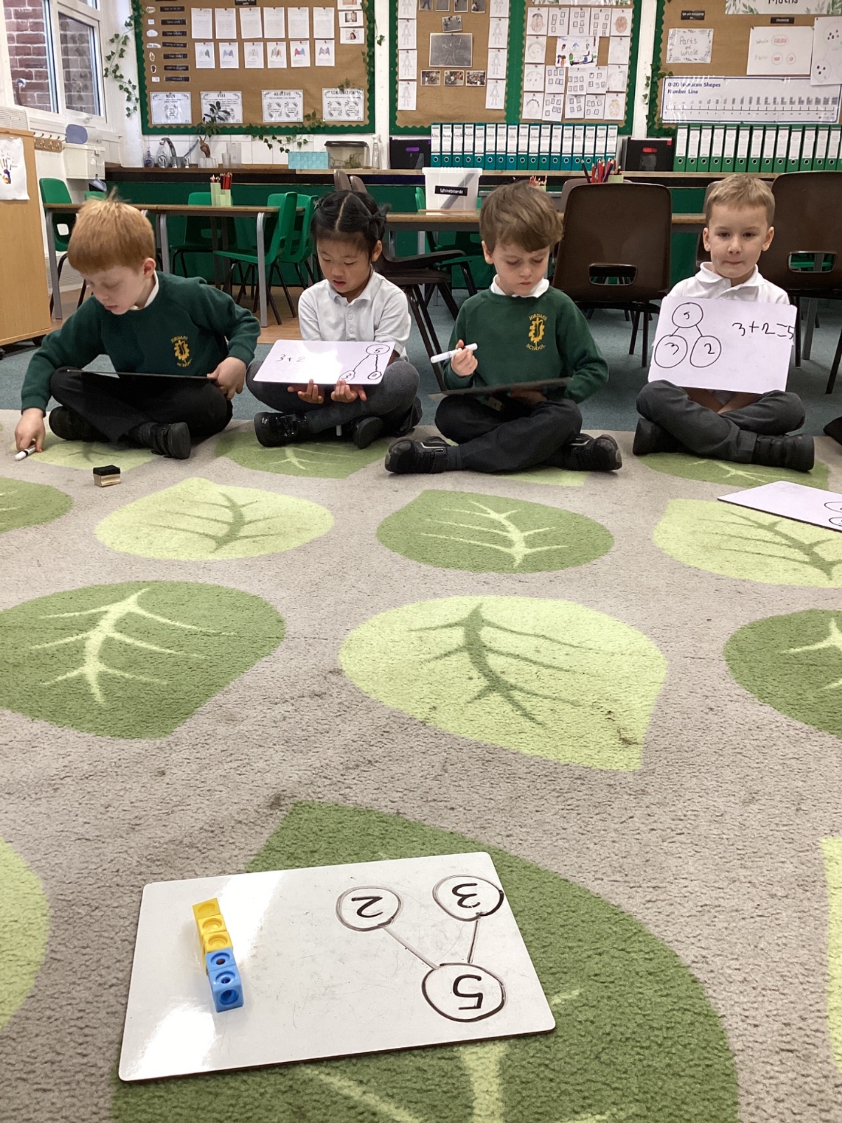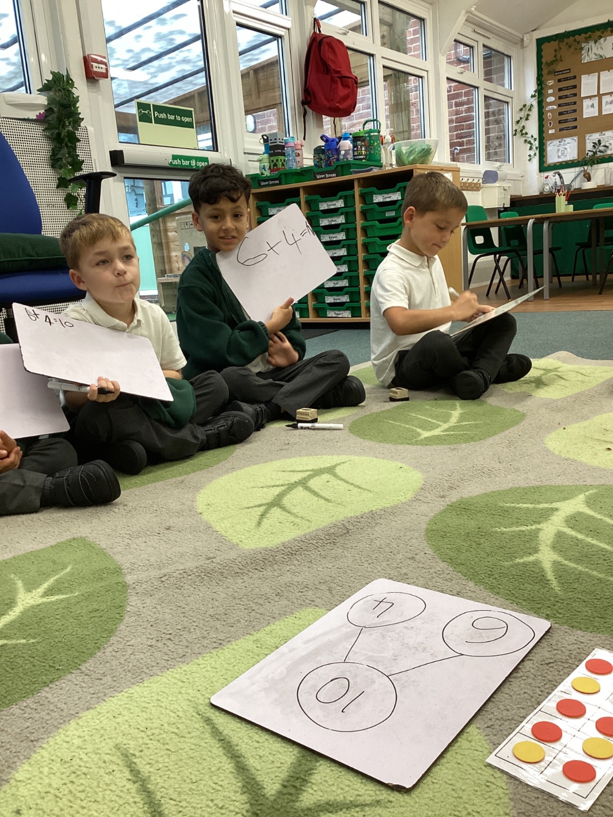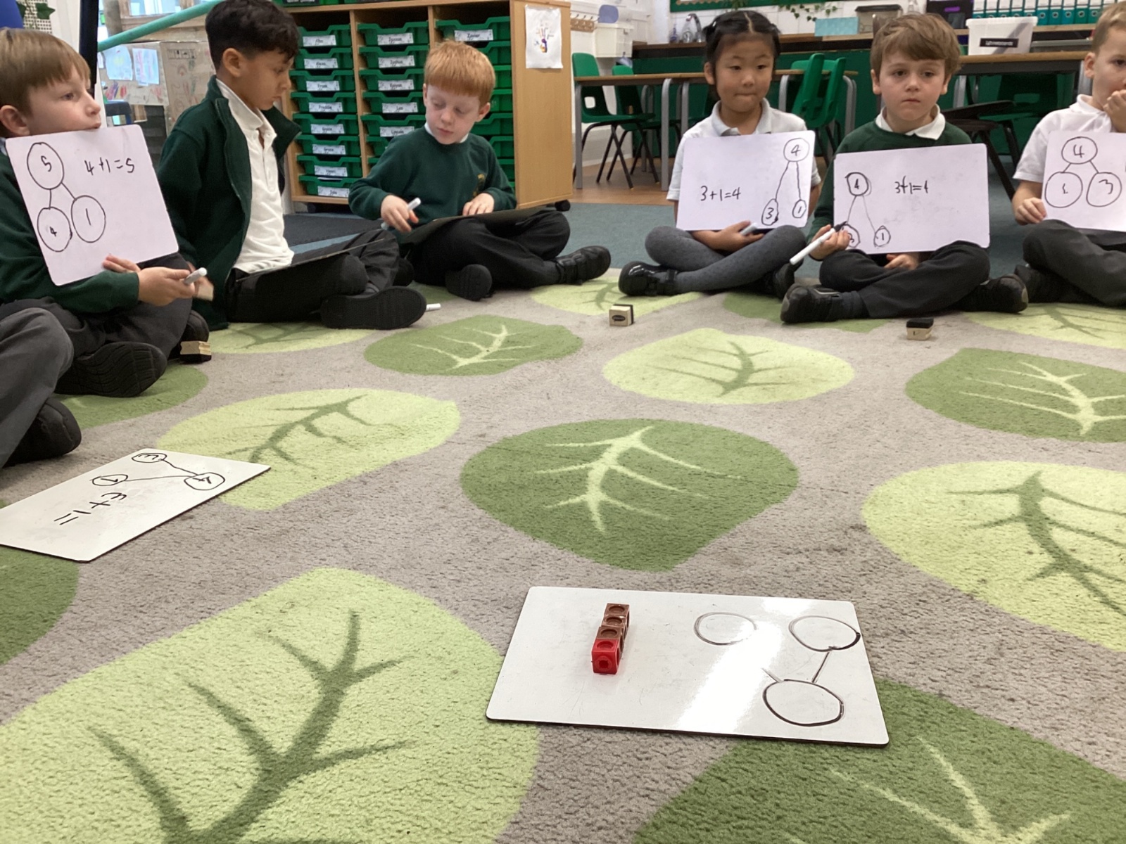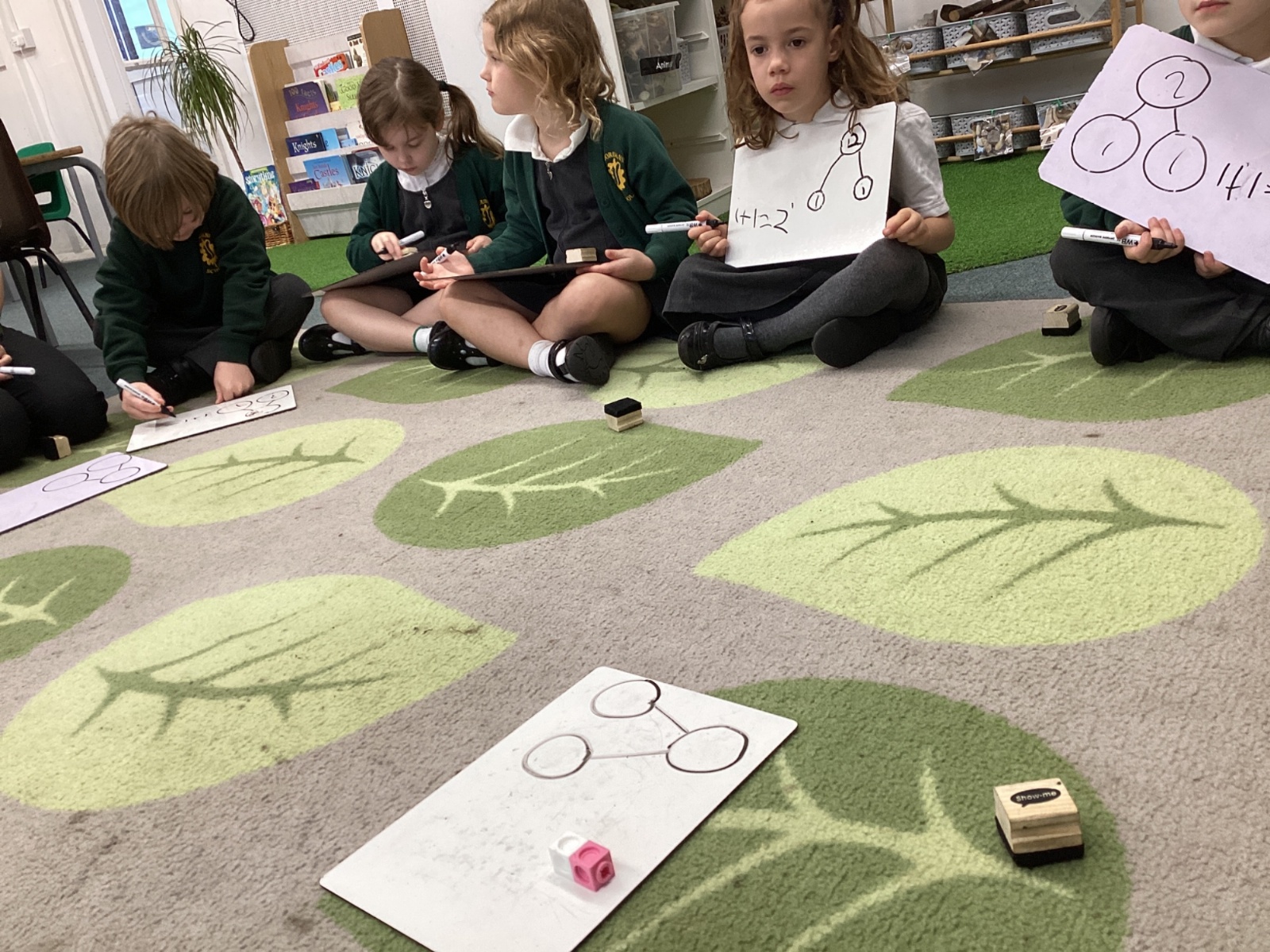 In maths, we have been identifying the parts and whole of amounts of objects and then using our part whole models to write addition number sentences.