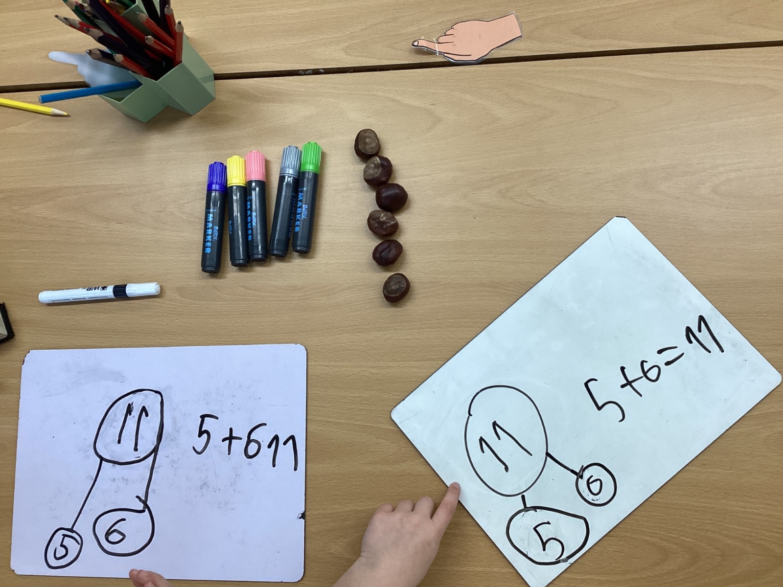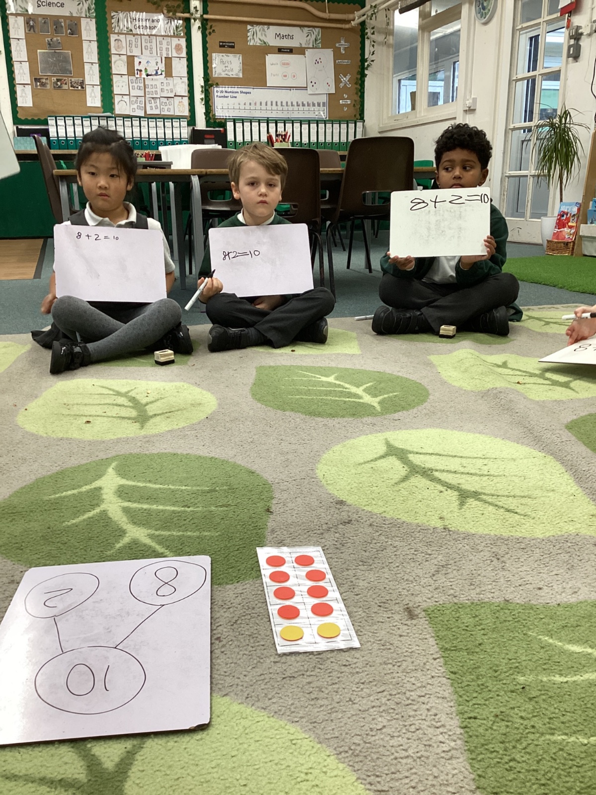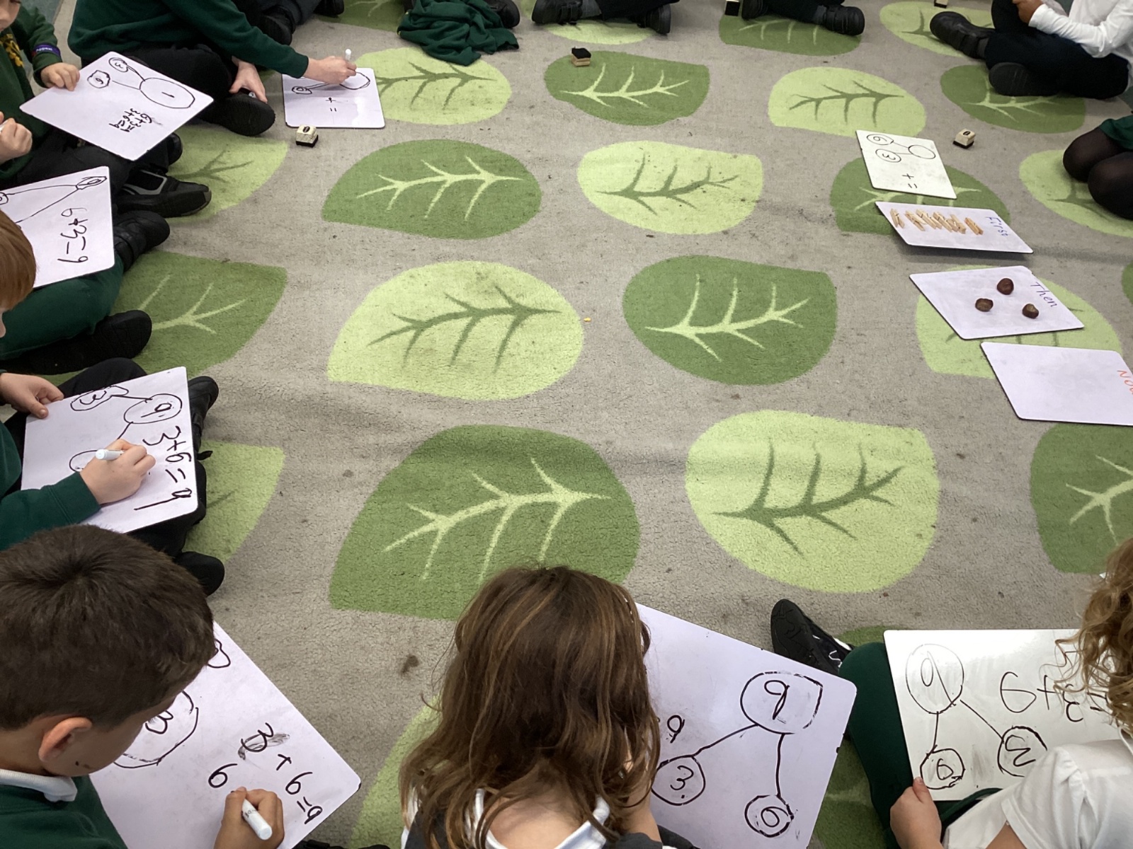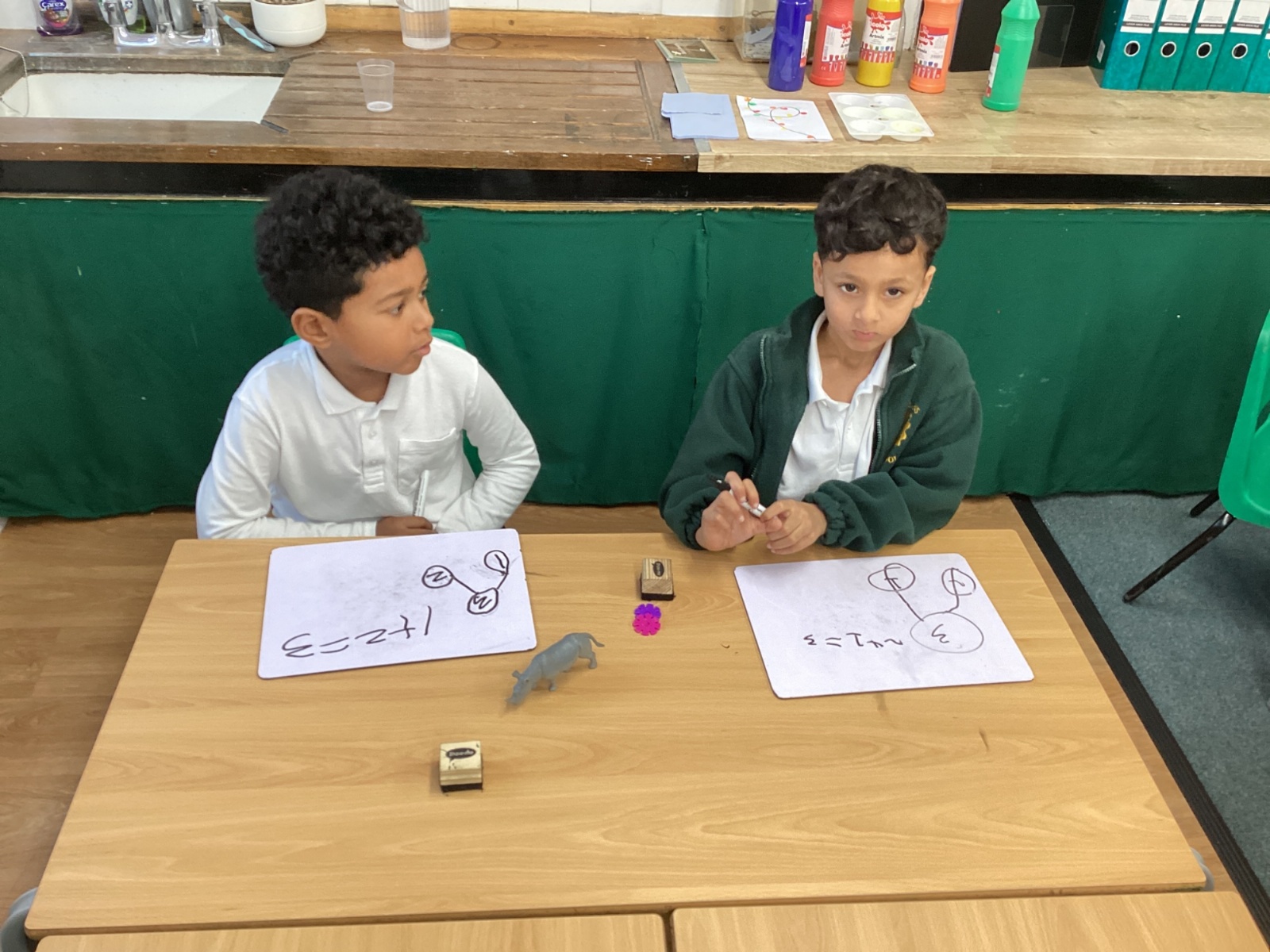 In maths, we have been identifying the parts and whole of amounts of objects and then using our part whole models to write addition number sentences.