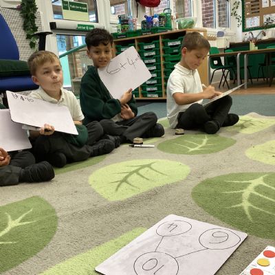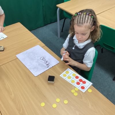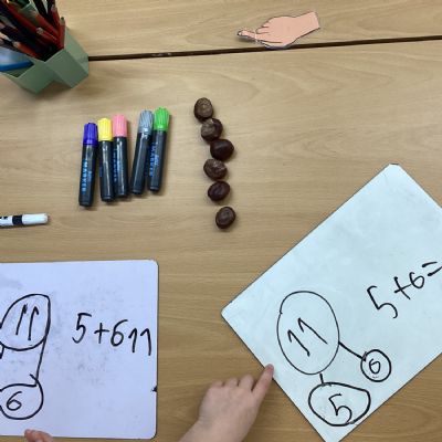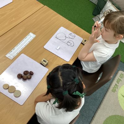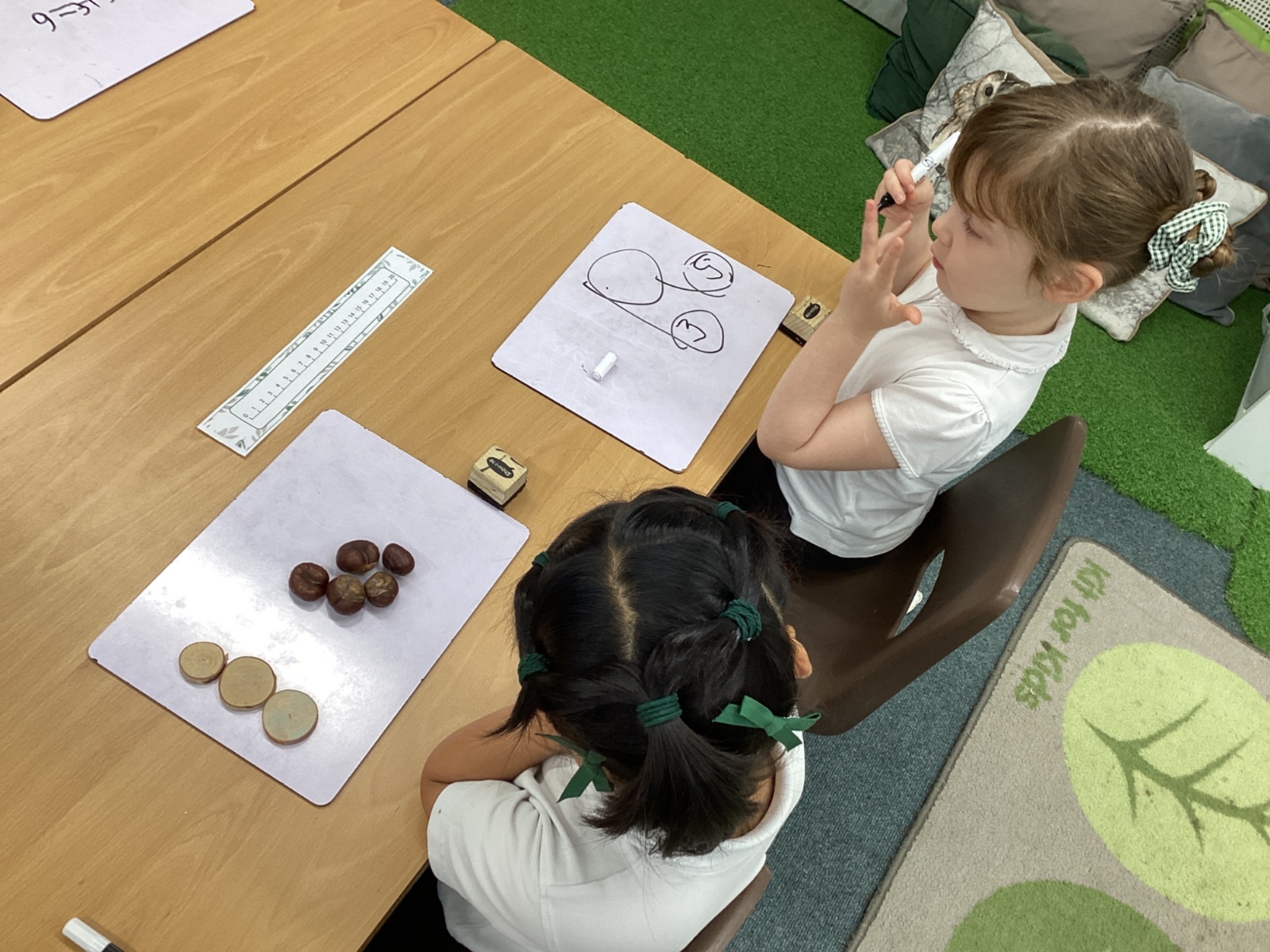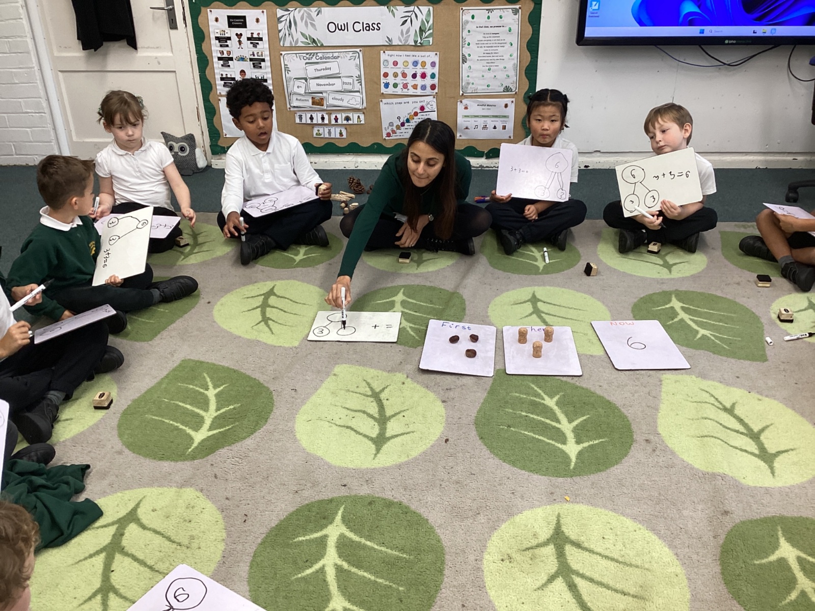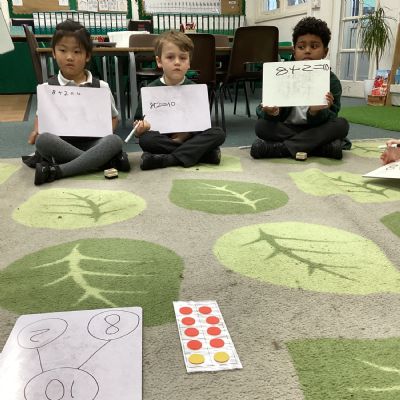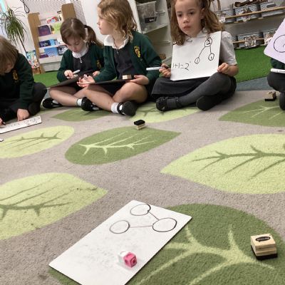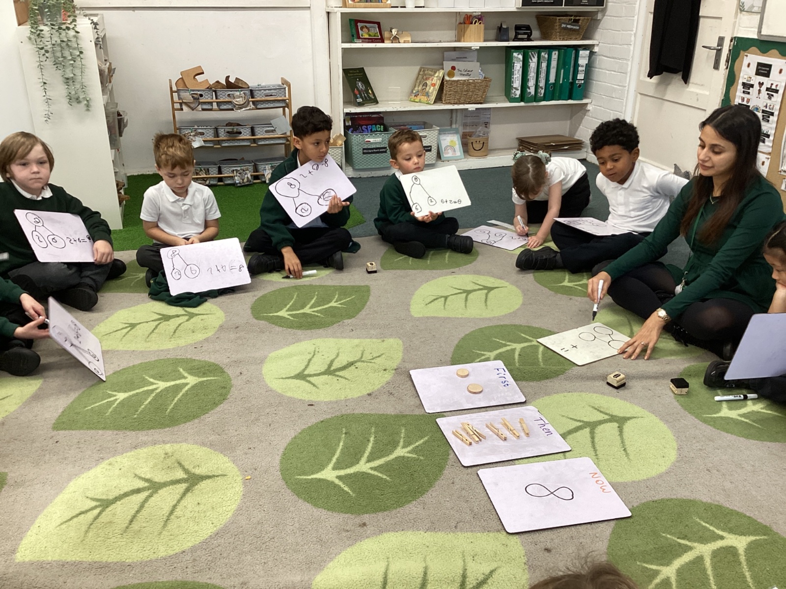 In maths, we have been identifying the parts and whole of amounts of objects and then using our part whole models to write addition number sentences.