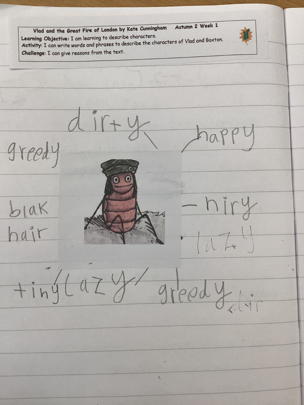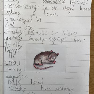 It's autumn and Deer Class are embarking on the next phase of their learning. We have a new class text called 'Vlad and the Great Fire of London'. It follows two friends, a rat and a flea, as they escape from the bakery in Pudding Lane and make their way through the blazing streets. After reading the story together, we began by collecting adjectives to describe the main characters.