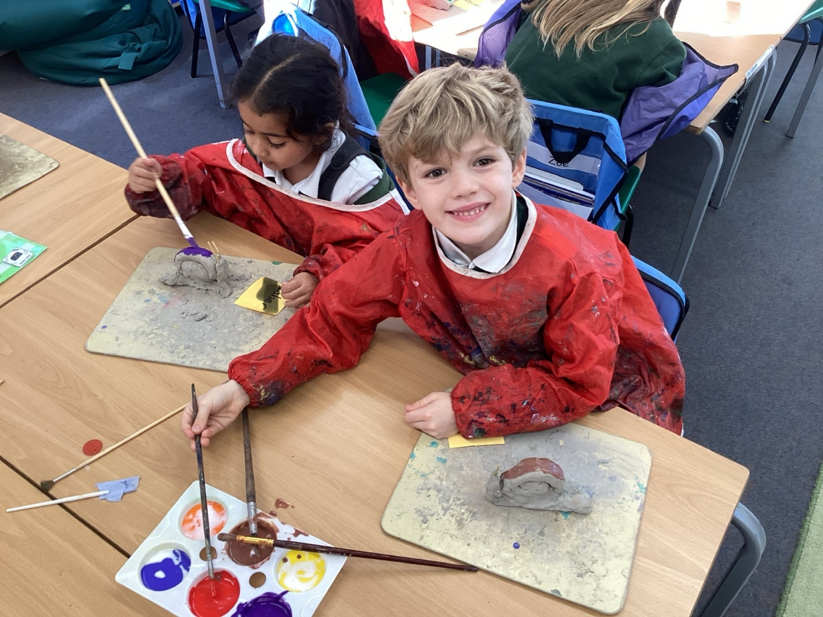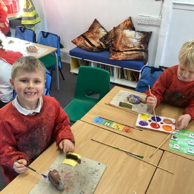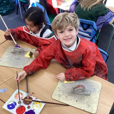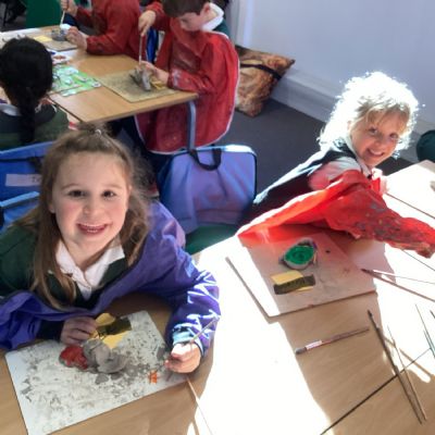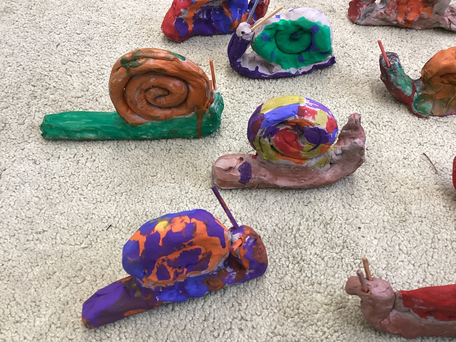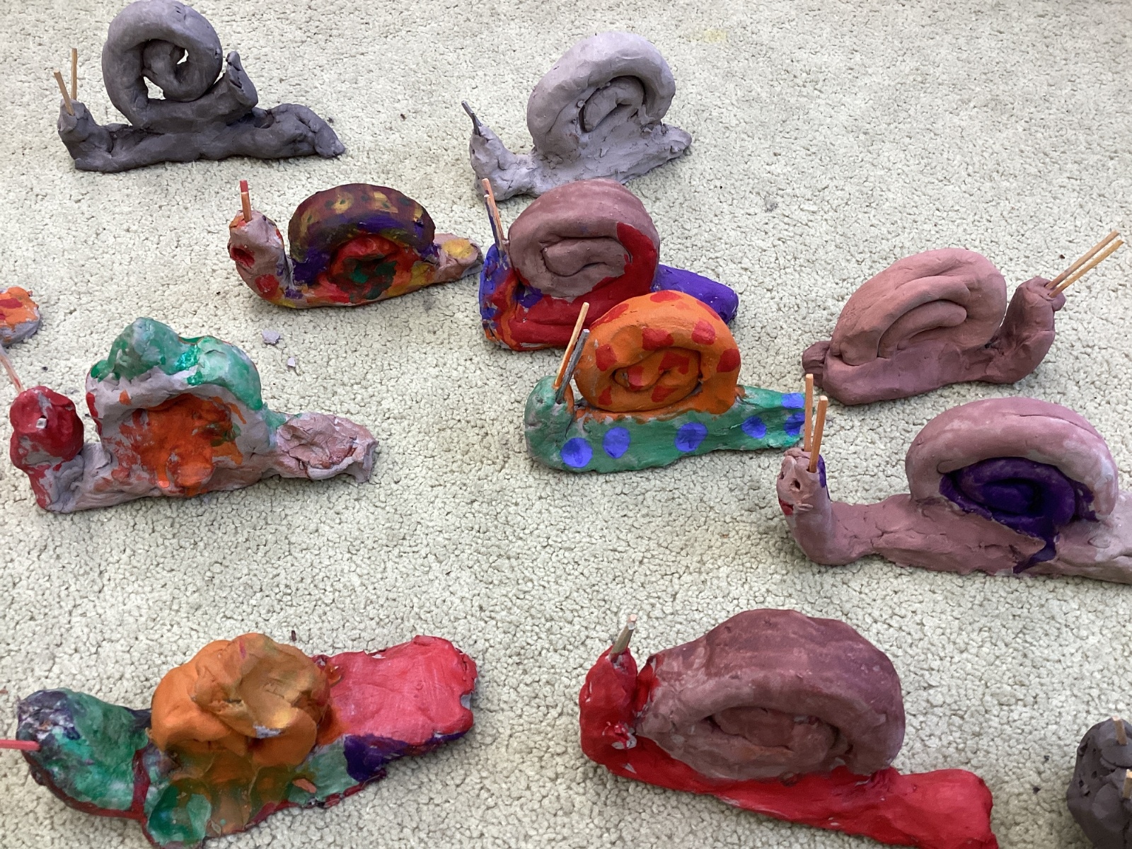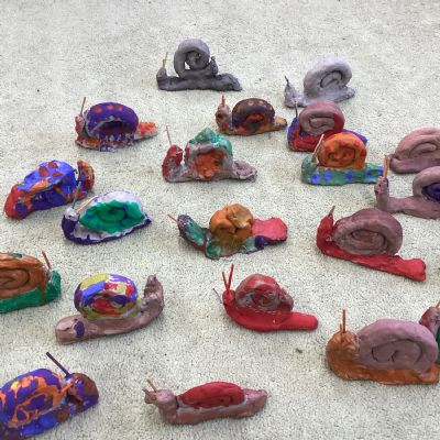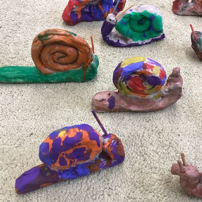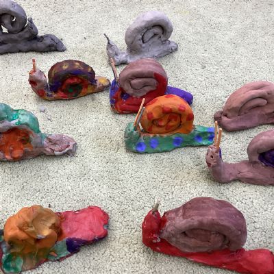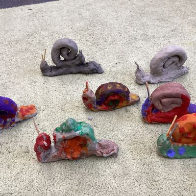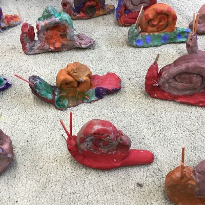 Finally, the clay snails that we made before half-term were ready to be painted this week. Look at our escargatoire!