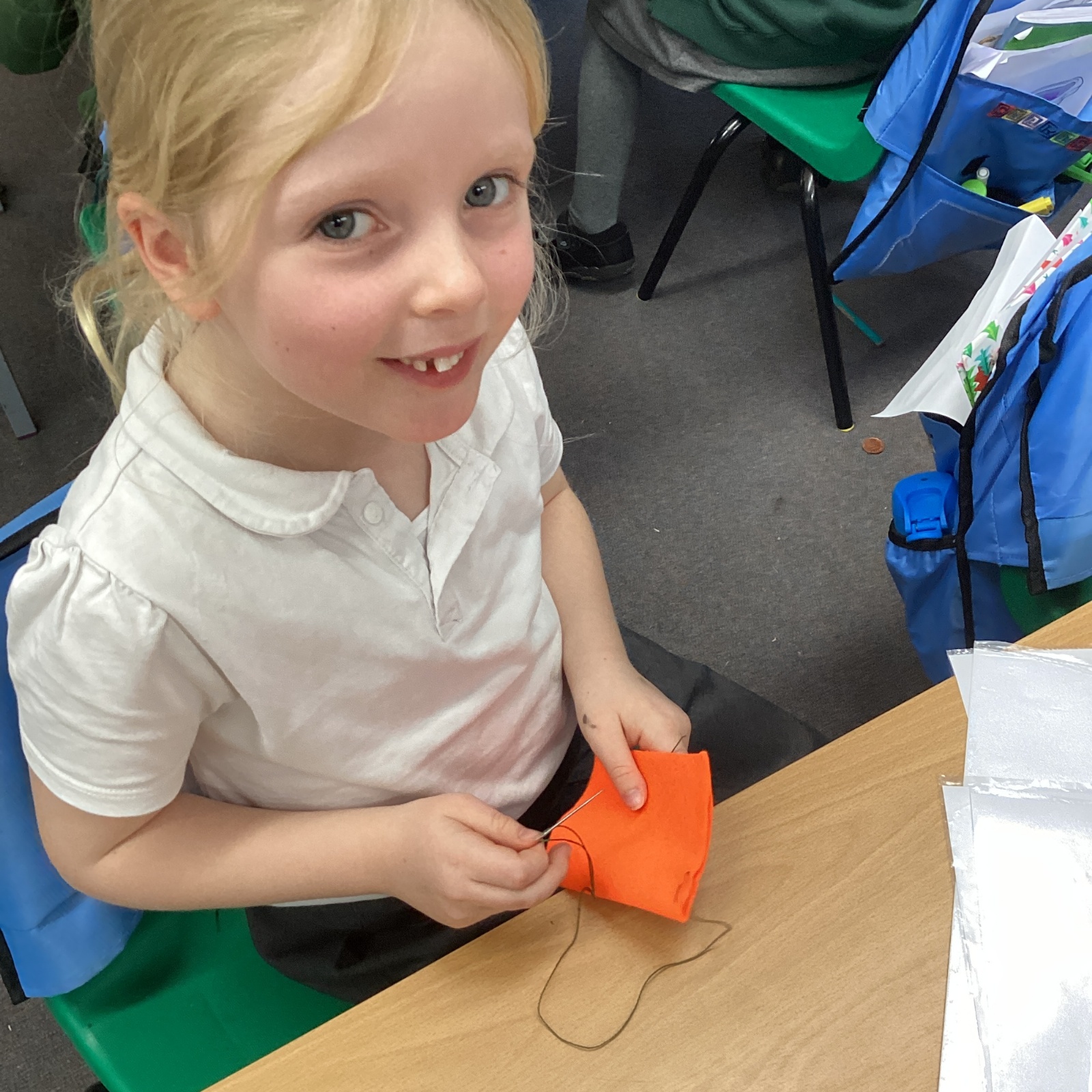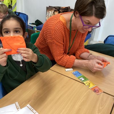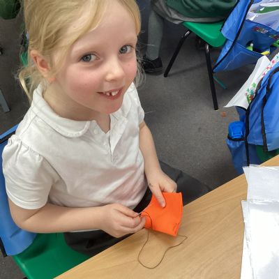 The children will be making Christmas Tree baubles next week. They will design them and then make them using coloured felt pieces stitched together. On Tuesday we learnt how to sew using running stitch and over stitch. It was a bit tricky, but we all succeeded!
