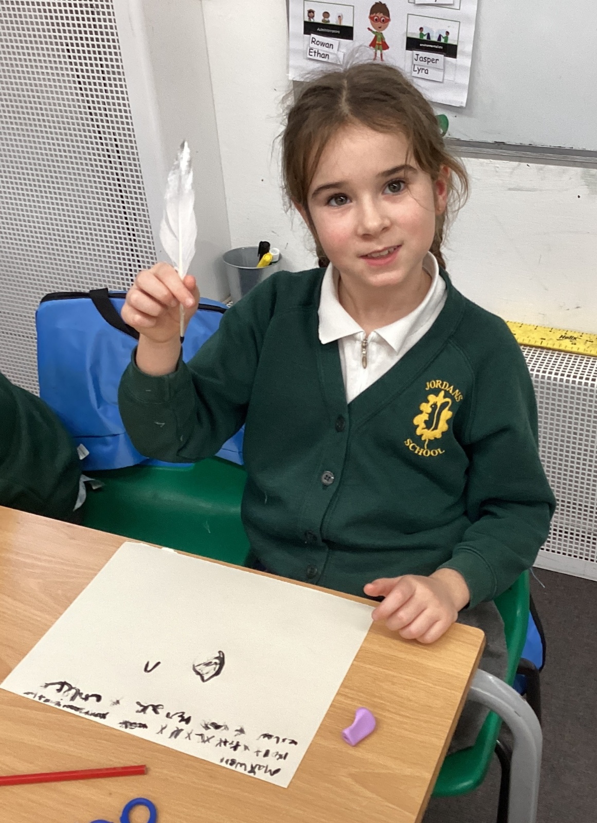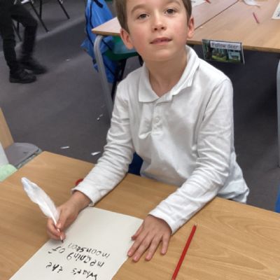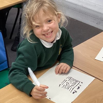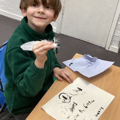 Since learning about Samuel Pepys and his diary, the children have been fascinated by the fact that Pepys wrote with a feather! So this week we did likewise. Everyone enjoyed this lesson. Some of the children incorporated their joined handwriting skills into the activity.