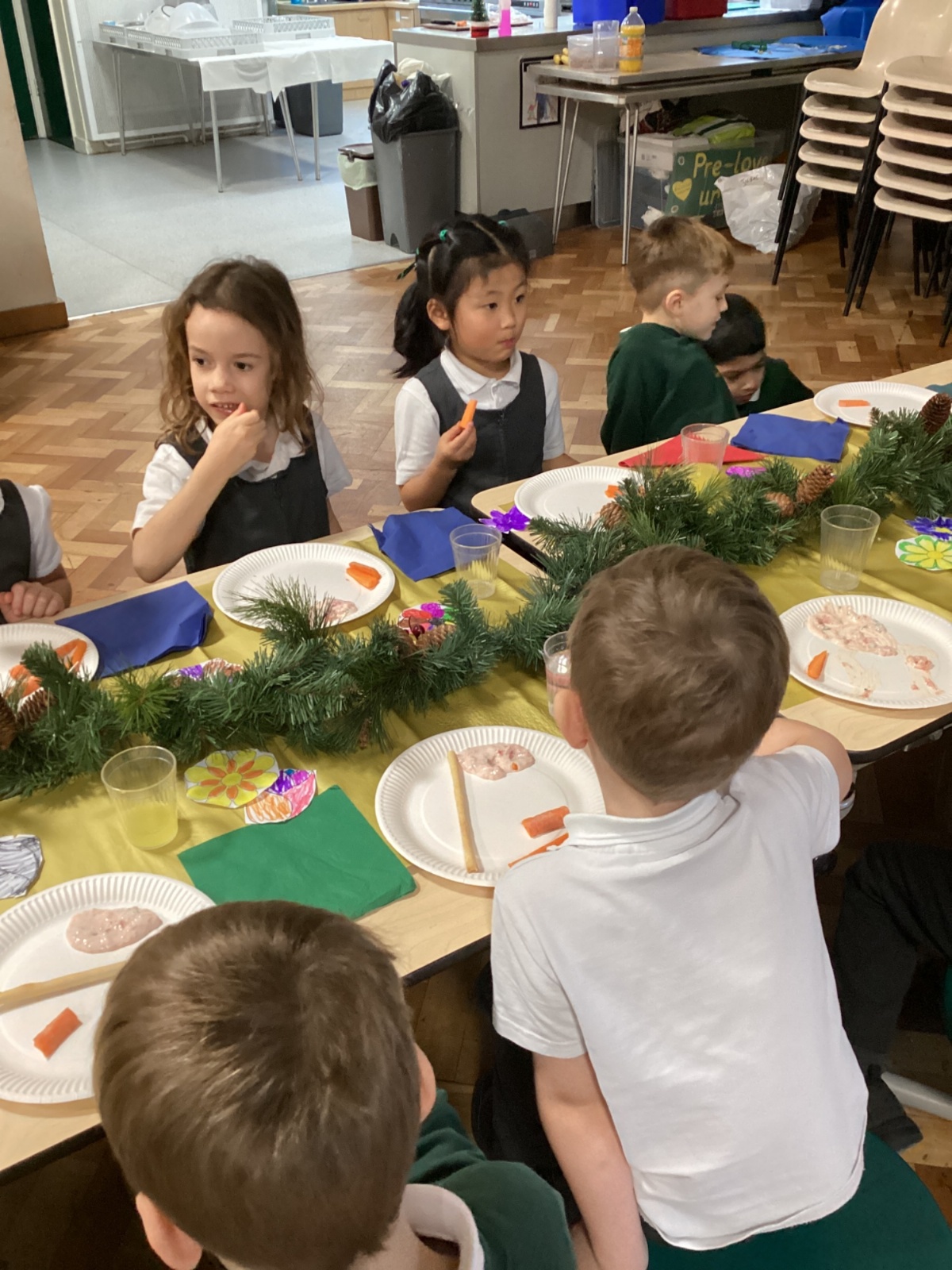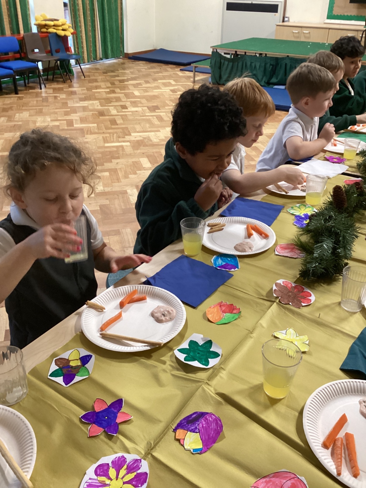 We have had a wonderful week! The children all performed brilliantly in our school nativity this week, well done! This week we also followed a recipe we wrote to carefully to create a creamy tomato and herb dip. We enjoyed our dip at our Owl Classn banquet. At the banquet, we also enjoyed some dancing, entertainment such a songs and jokes and exploring the castle too! In R.E we learnt about Christmas presents and the meaning behind them. We discussed how presents can be handmade and created a Christmas card to gift to our families.
