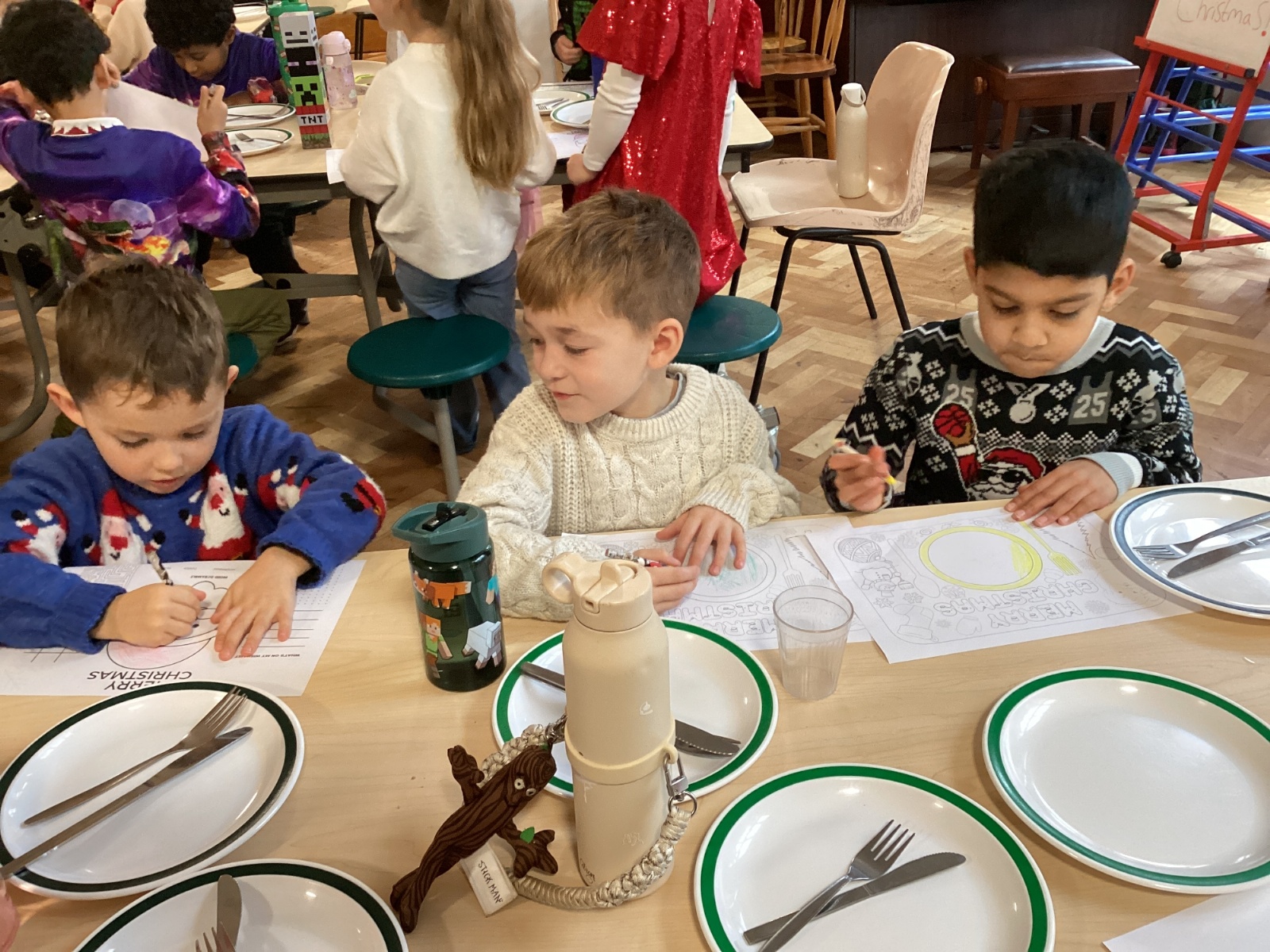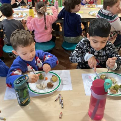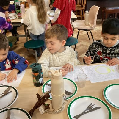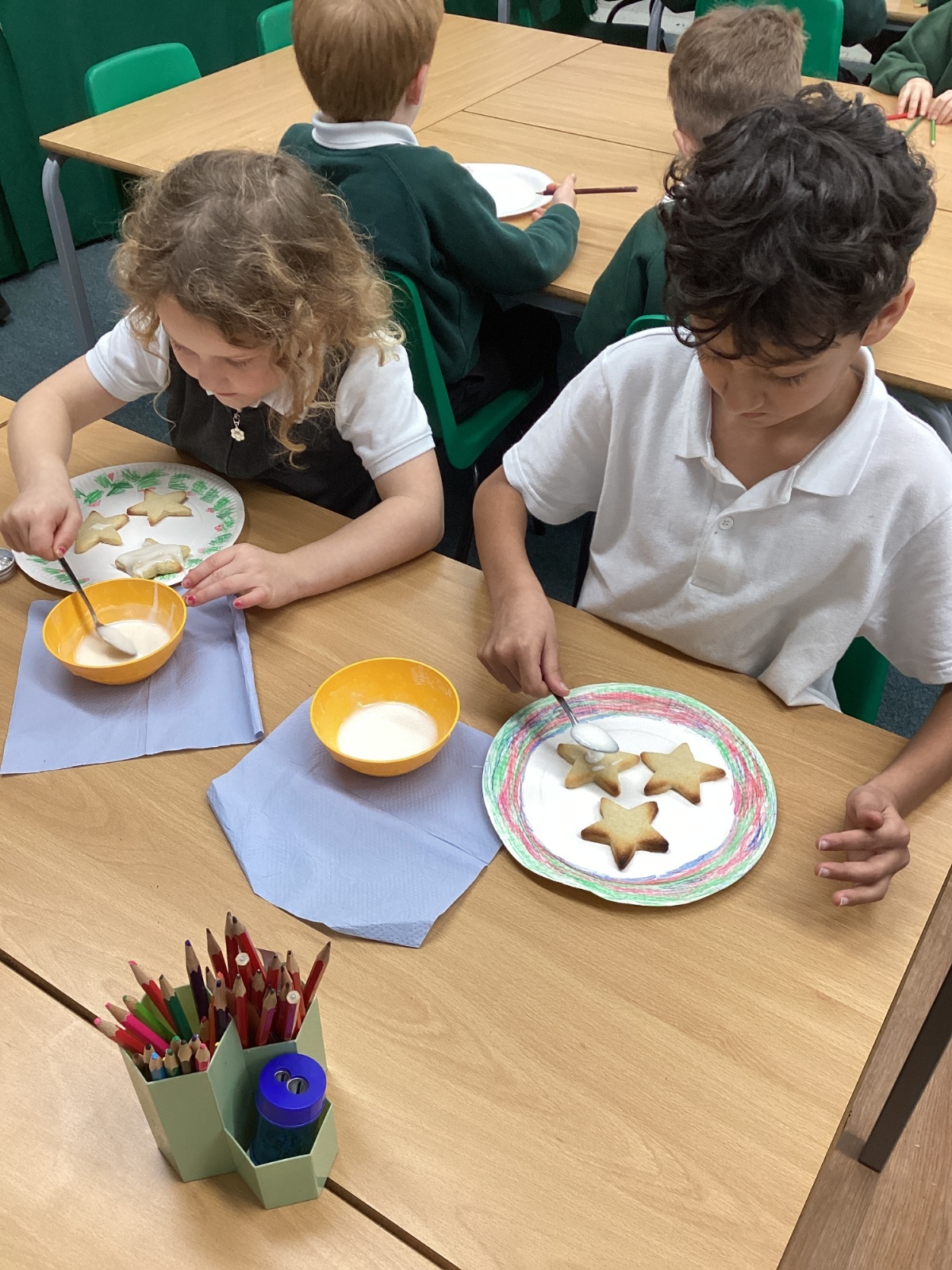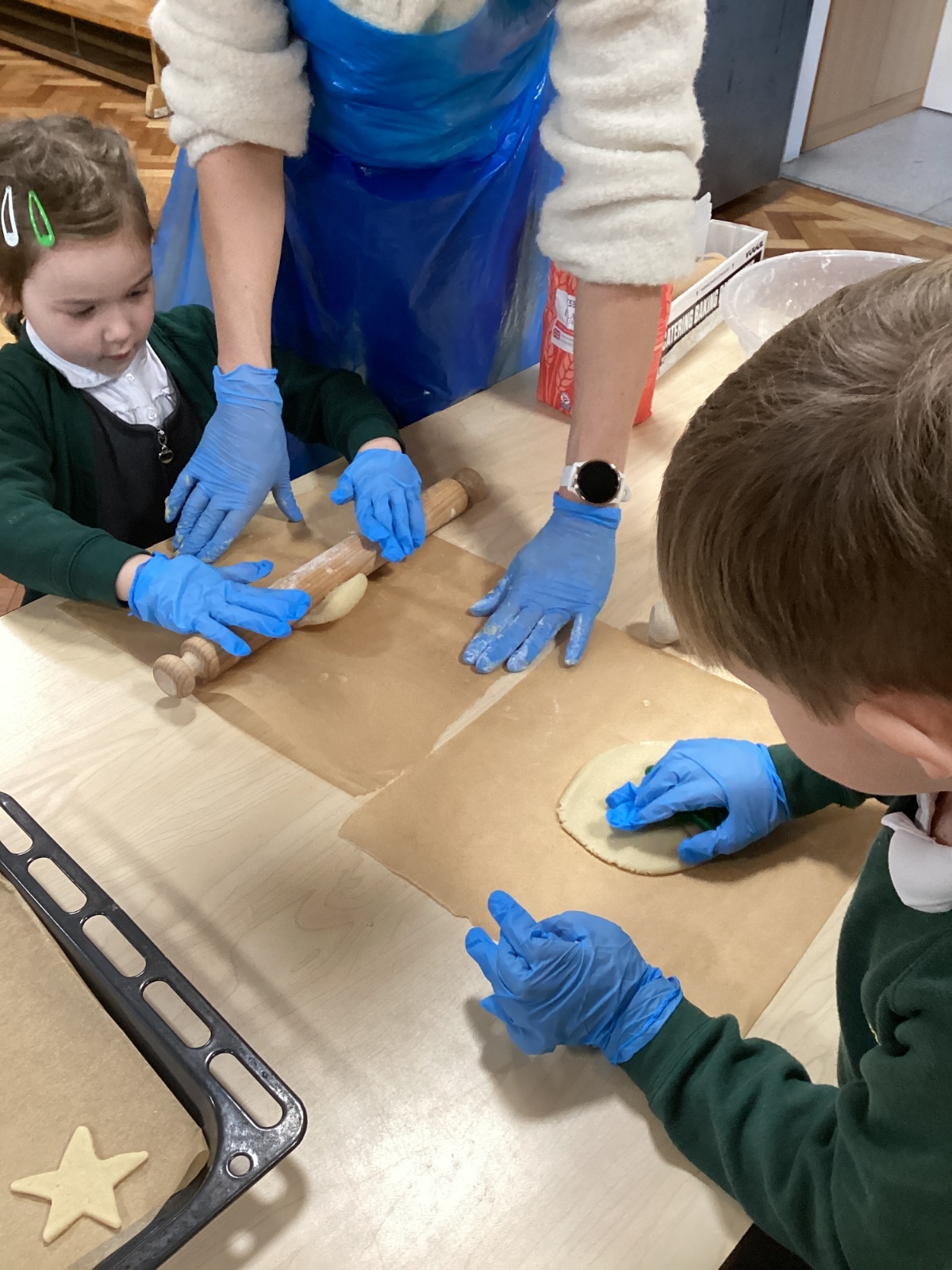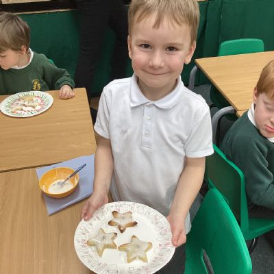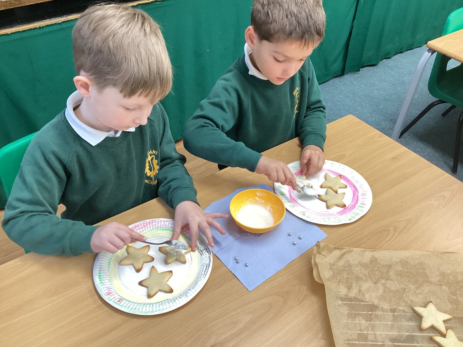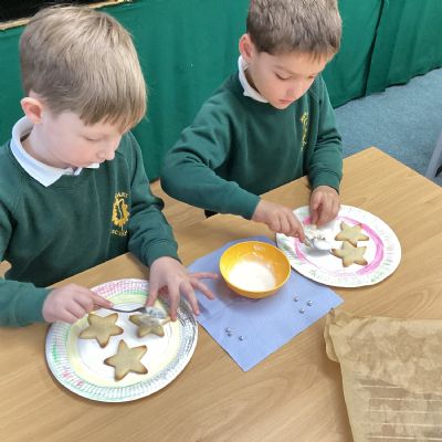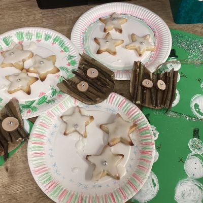 It has been the last week of term and we have had a wonderful week! We started our week using our skills of following a recipe to make star-shaped biscuits. We then decorated a plate with a Festive design to take our iced biscuits home.  Our book of the week has been 'The Owl who came for Christmas'. We enjoyed listening to the true story all about an owl who got trapped in a Christmas tree and ended up in a family home. We created a story map of the story to retell the story to a friend. On Wednesday we had a fabulous time at our school Christmas lunch! The whole school sat down together to enjoy a delicious lunch together in our Festive outfits. In forest school we explored the forest and enjoyed a hot chocolate!