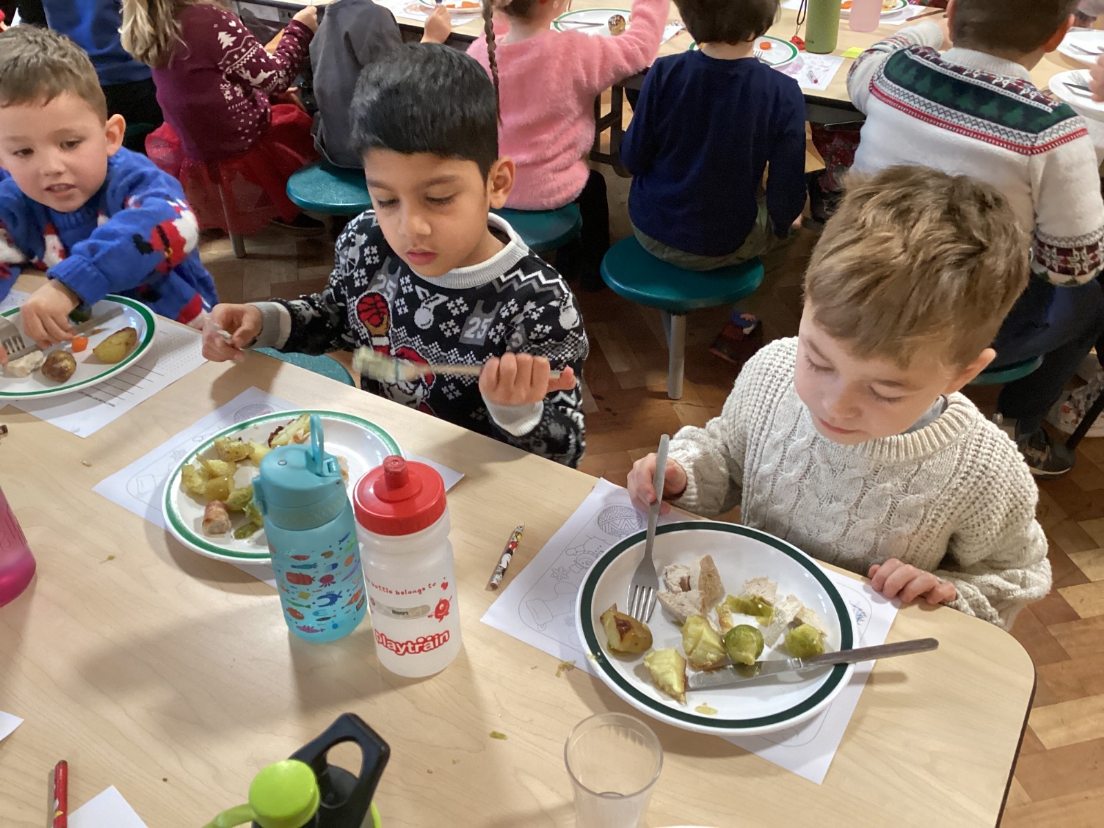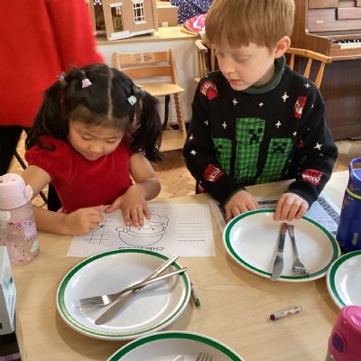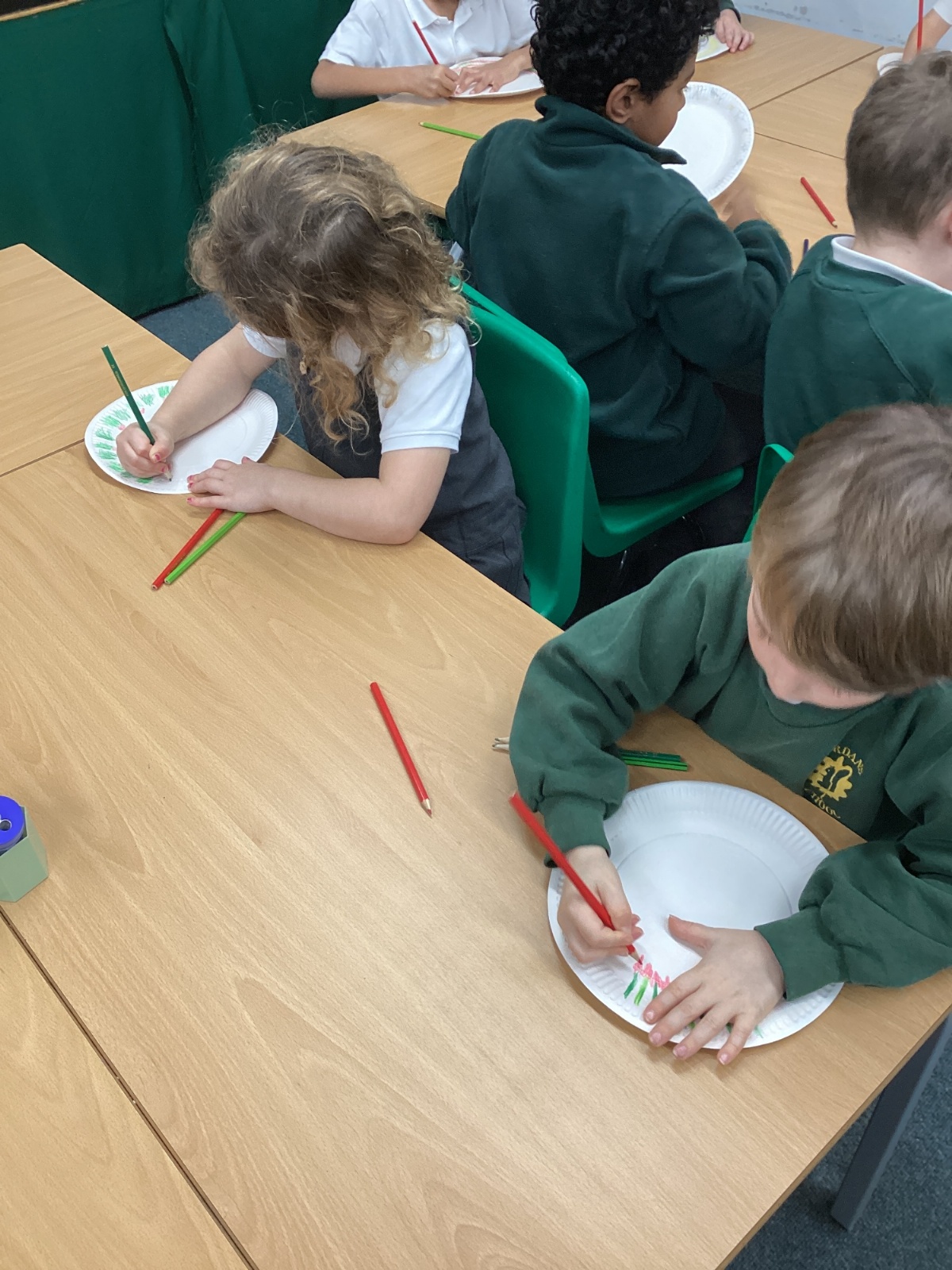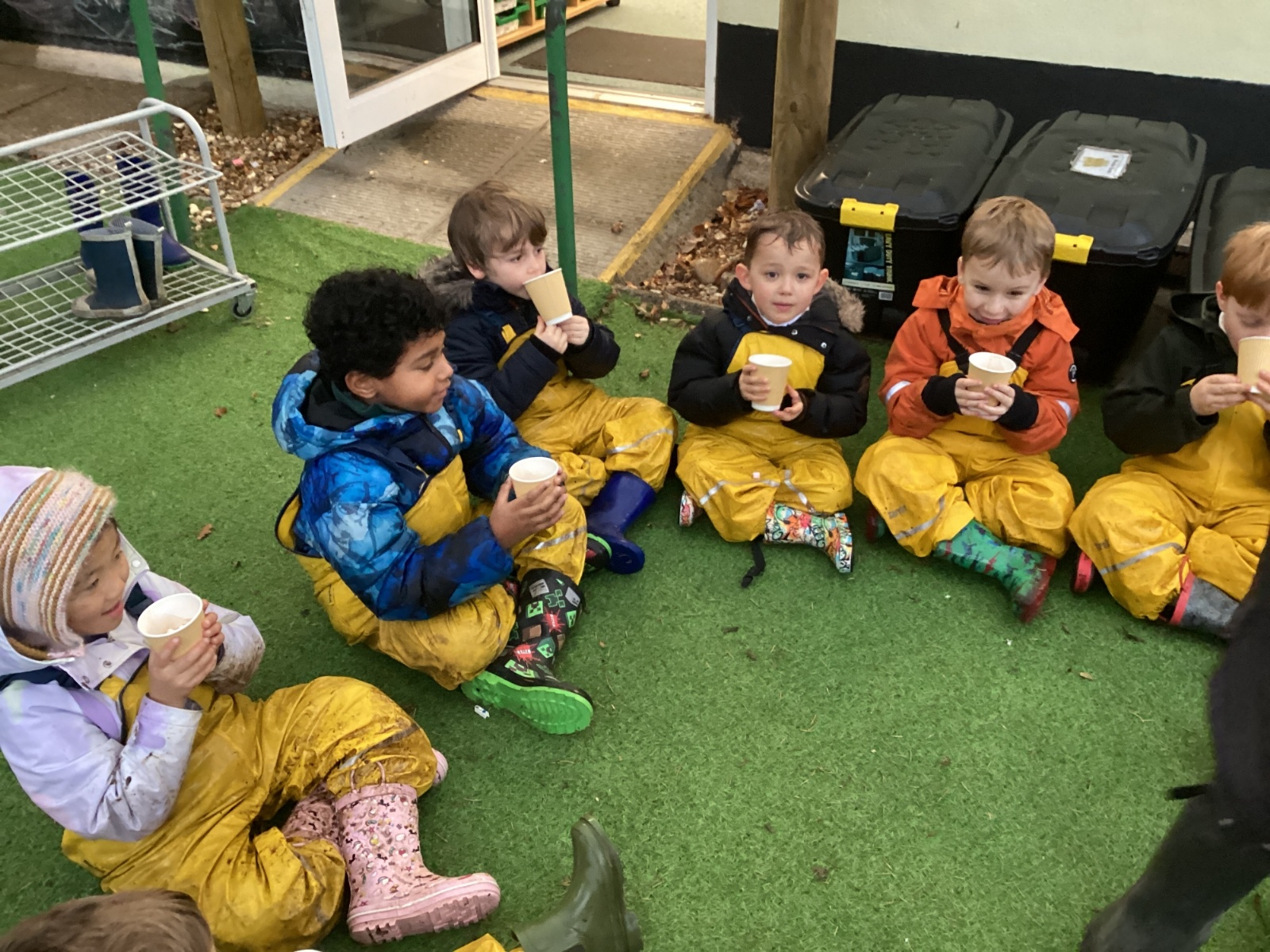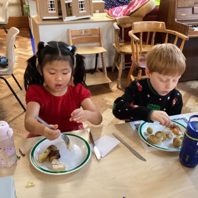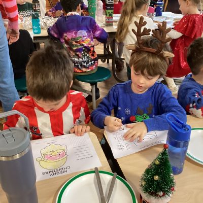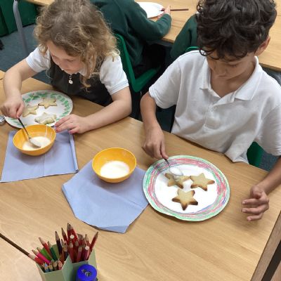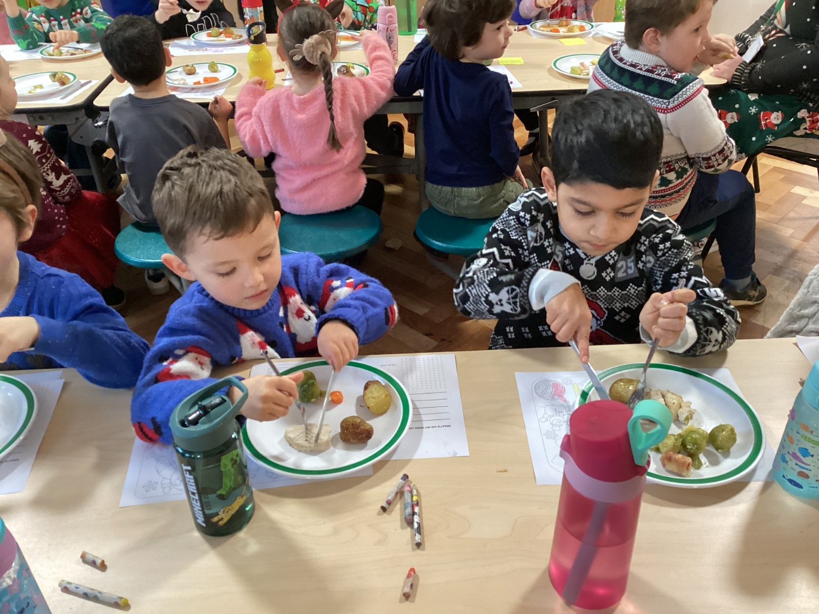 It has been the last week of term and we have had a wonderful week! We started our week using our skills of following a recipe to make star-shaped biscuits. We then decorated a plate with a Festive design to take our iced biscuits home.  Our book of the week has been 'The Owl who came for Christmas'. We enjoyed listening to the true story all about an owl who got trapped in a Christmas tree and ended up in a family home. We created a story map of the story to retell the story to a friend. On Wednesday we had a fabulous time at our school Christmas lunch! The whole school sat down together to enjoy a delicious lunch together in our Festive outfits. In forest school we explored the forest and enjoyed a hot chocolate!