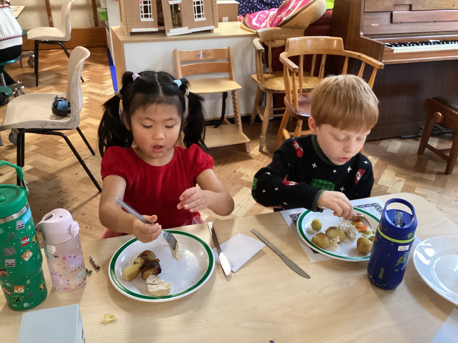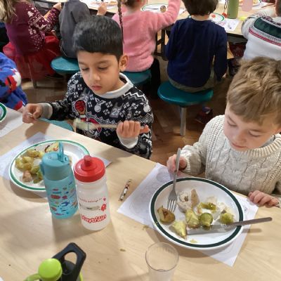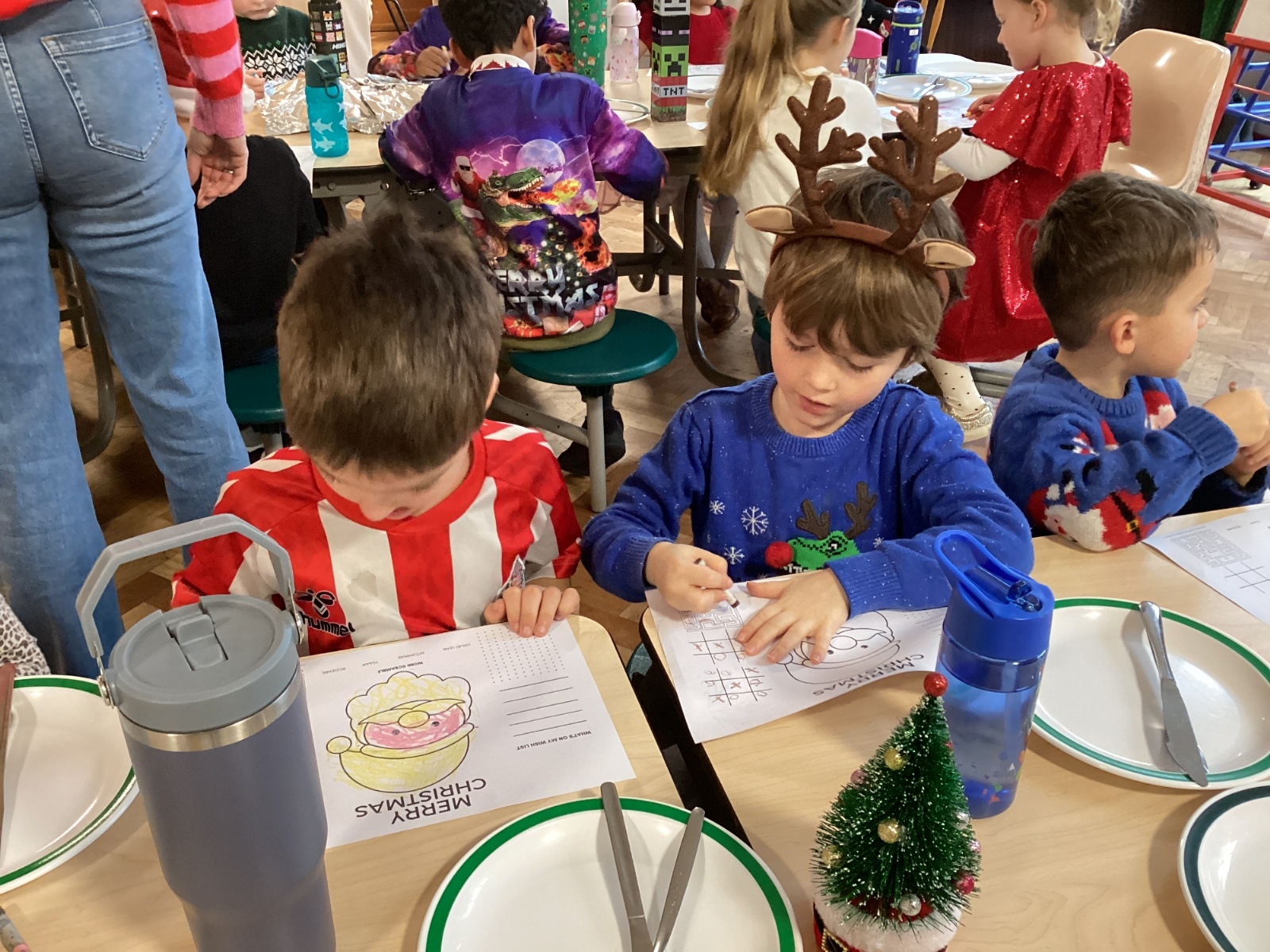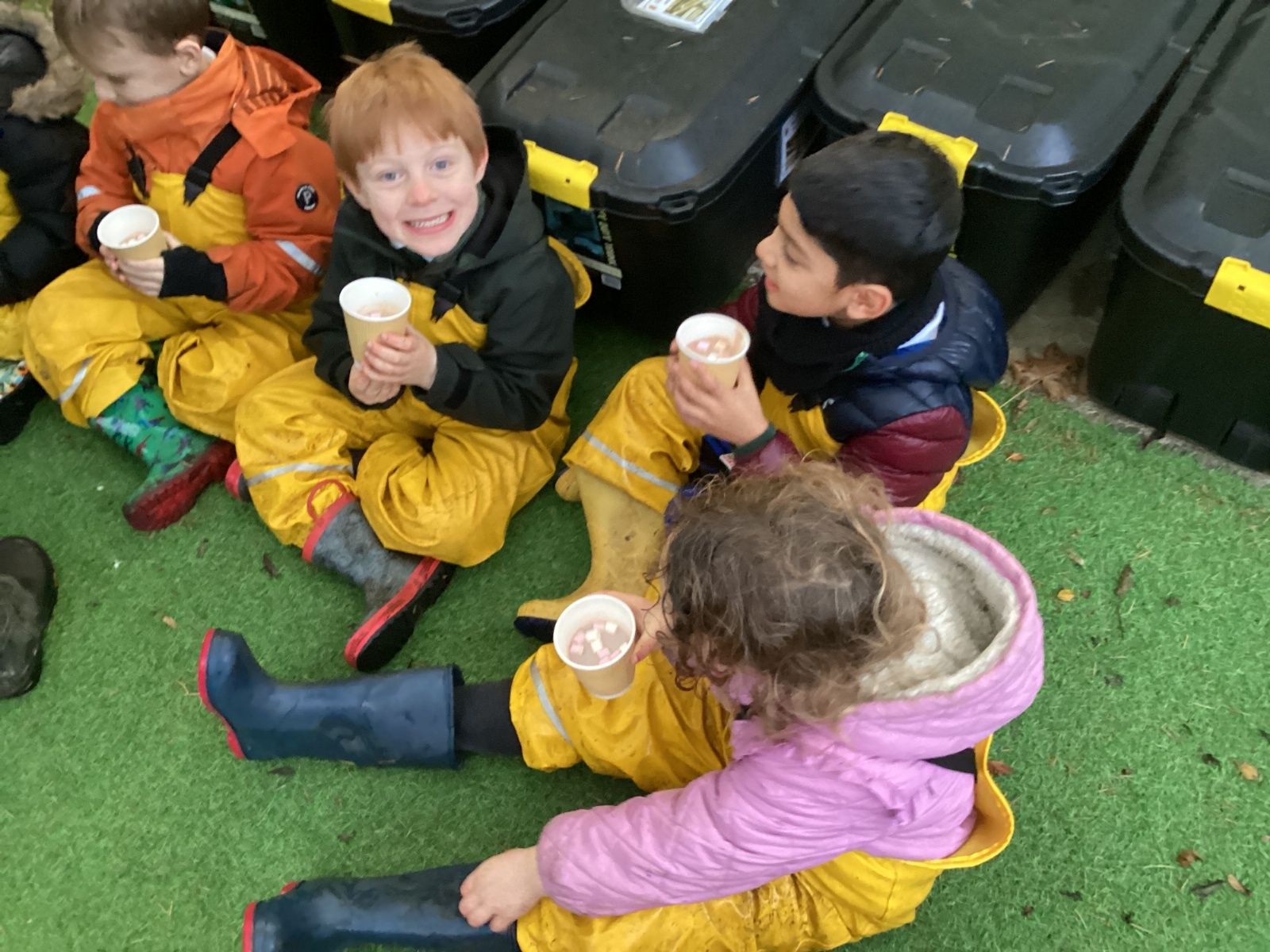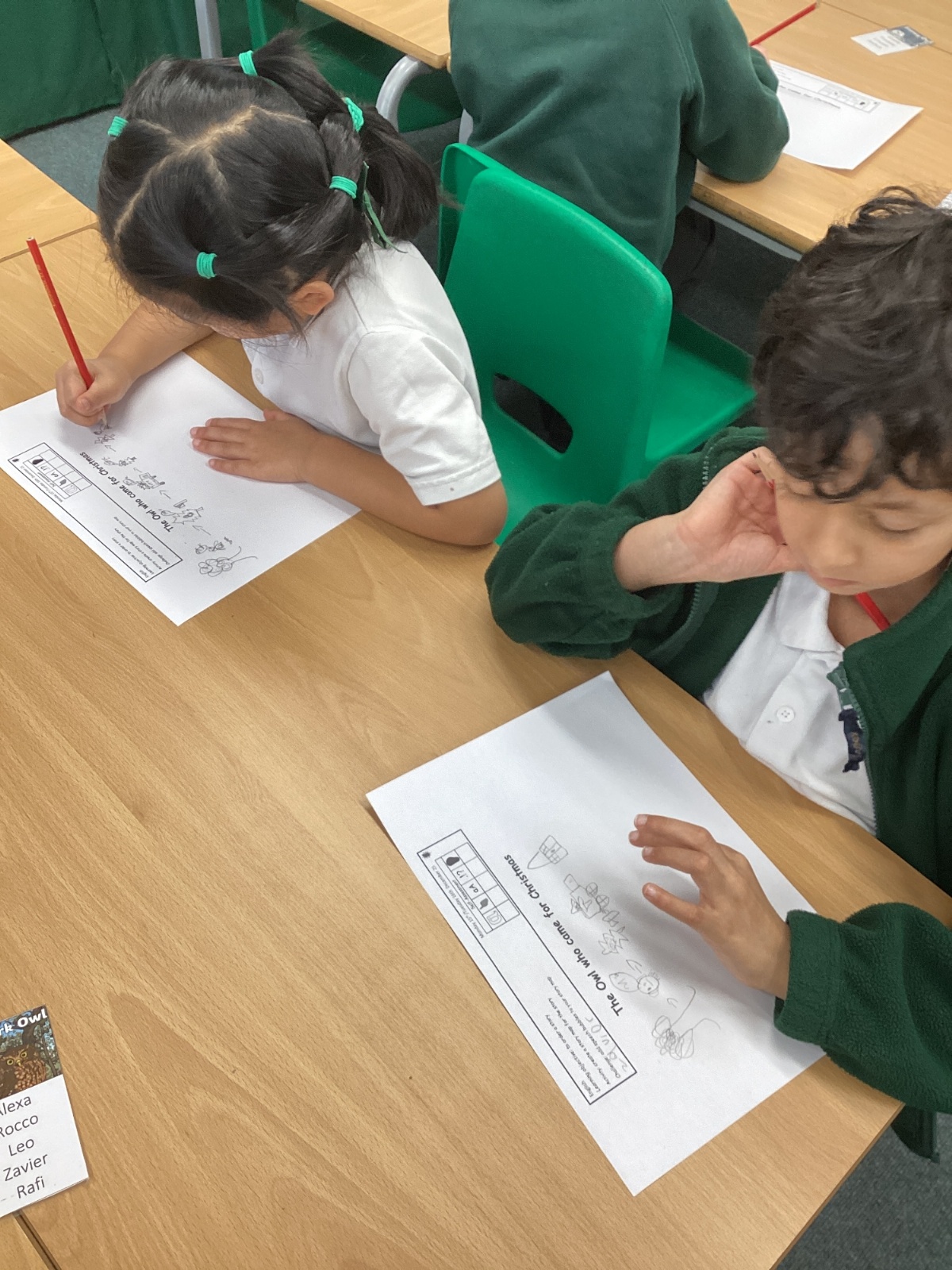 It has been the last week of term and we have had a wonderful week! We started our week using our skills of following a recipe to make star-shaped biscuits. We then decorated a plate with a Festive design to take our iced biscuits home.  Our book of the week has been 'The Owl who came for Christmas'. We enjoyed listening to the true story all about an owl who got trapped in a Christmas tree and ended up in a family home. We created a story map of the story to retell the story to a friend. On Wednesday we had a fabulous time at our school Christmas lunch! The whole school sat down together to enjoy a delicious lunch together in our Festive outfits. In forest school we explored the forest and enjoyed a hot chocolate!