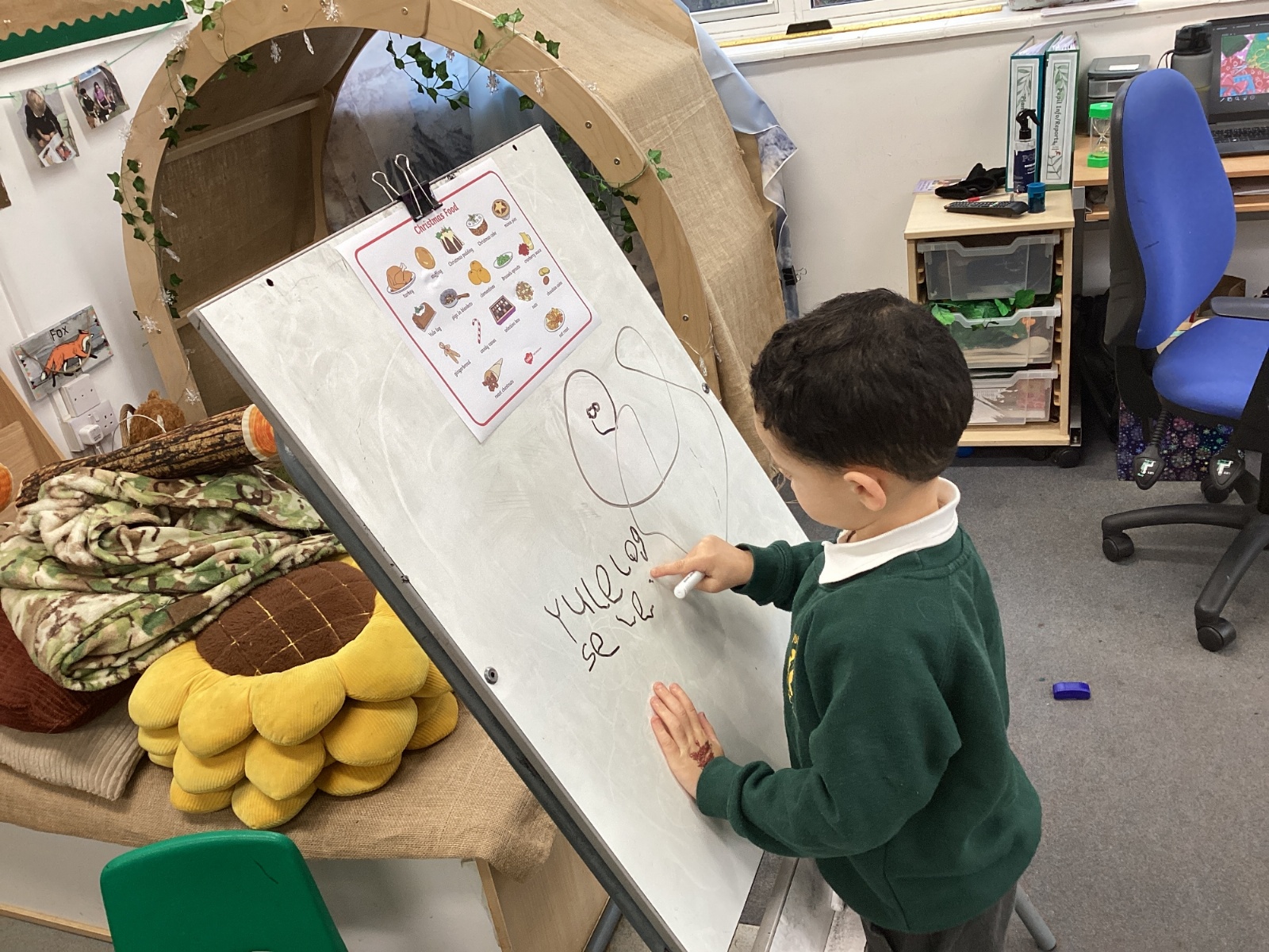 This week, we have been continuing to learn about the 'Nativity Story'. Our Foxes have really enjoyed acting out the story as well as taking part in our very own Nativity in school. We have also been working on our Oracy skills during Show and Tell. We have also been carrying out many fine and gross motor activities when taking part in Christmas themed arts and crafts. From cutting and sticking and creating snowflakes to designing and joining baubles! For maths, we have been revisiting our recognition of number and matching numerals to quantity. In Literacy, we have been using our phonic knowledge when writing our very own Christmas cards.