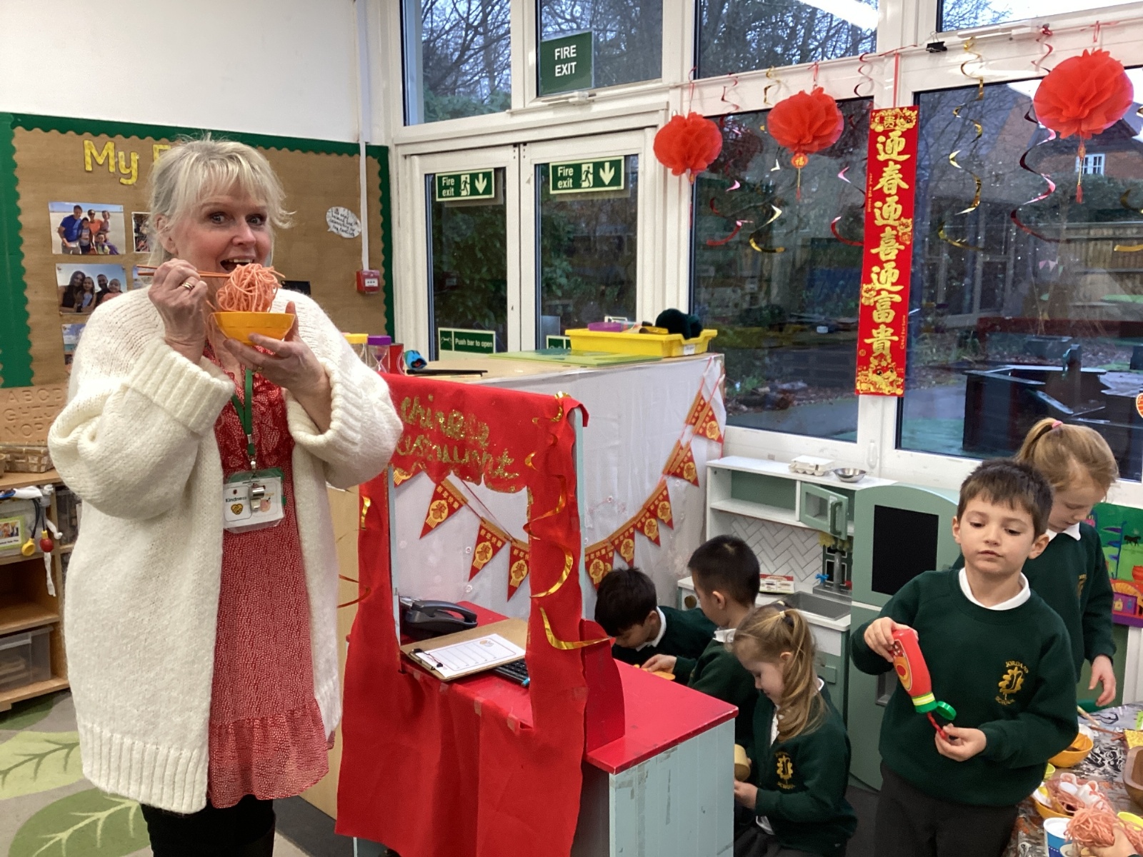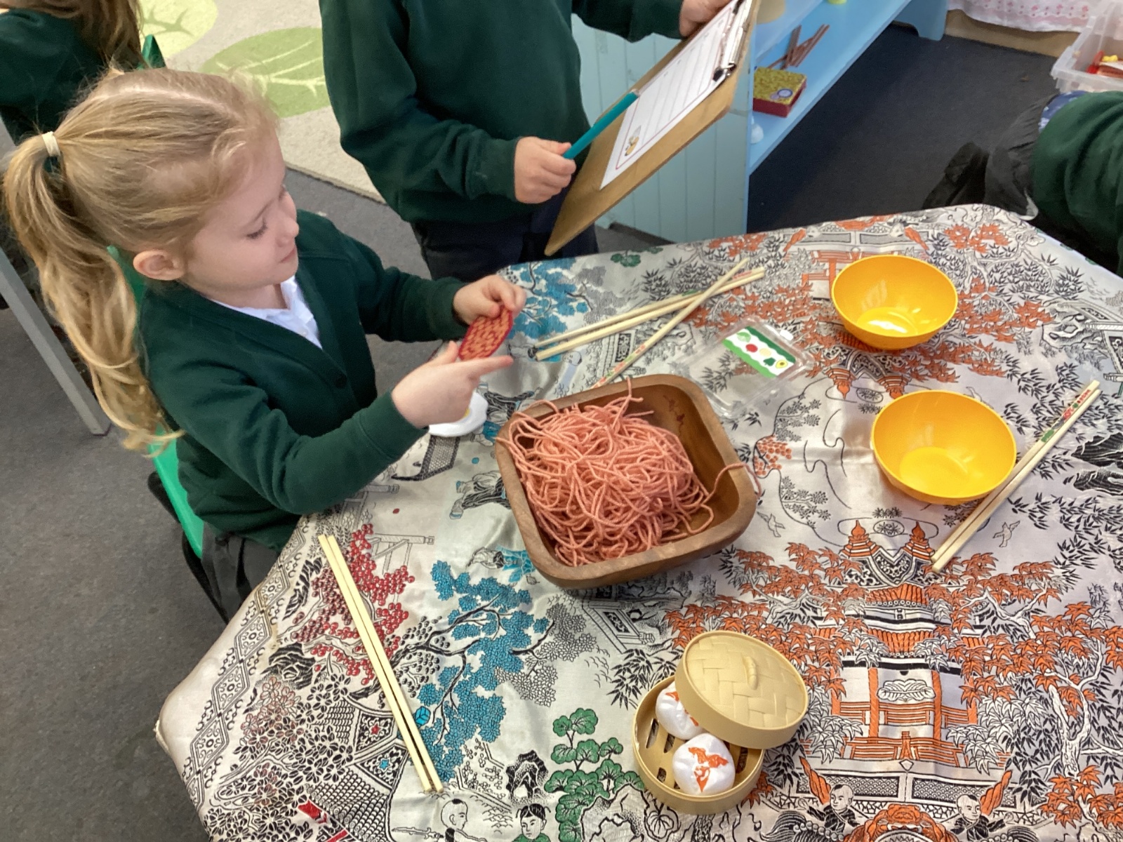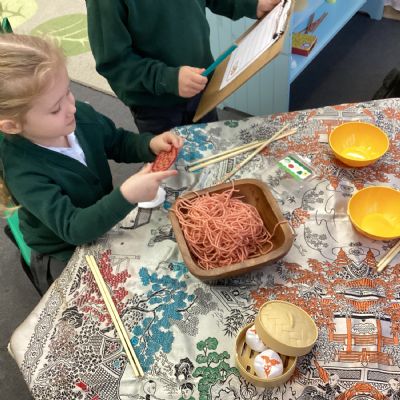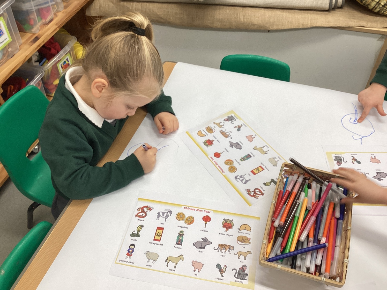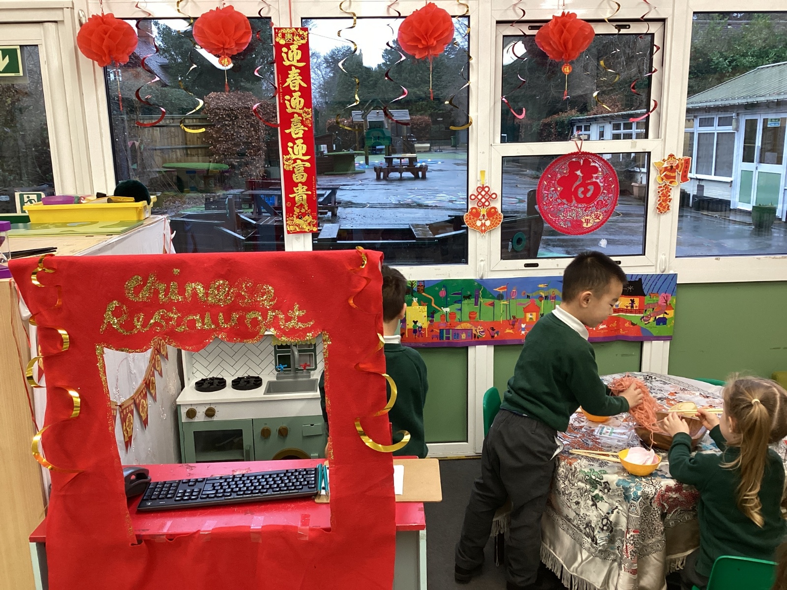 This week, our Foxes have been learning about Chinese/Lunar New Year. We have had a wonderful discussion about our world and where China is on a world map. We have also been very busy making wontons in our new Chinese Restaurant role play area this week. We have been writing menus and building our fine motor skills in making wontons using paper and thread to tie a knot. Our book of the week 'The Great Race' has been a highlight of our Literacy lessons this week. We have acted out the story, discussed its origin and have been using our phonic knowledge to write the names of the animals from the story.