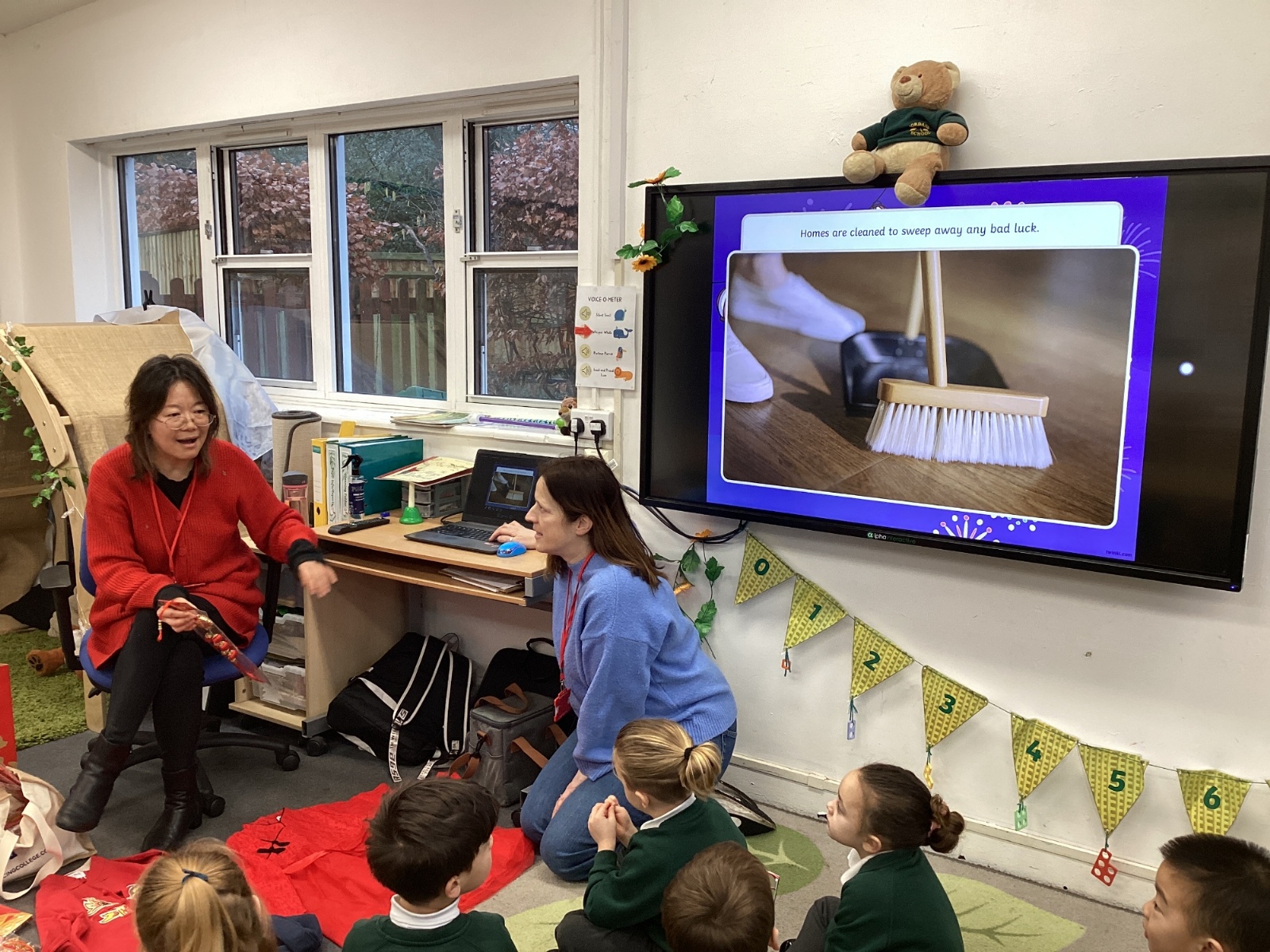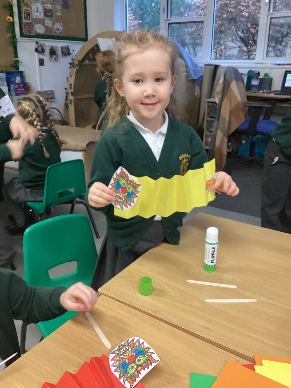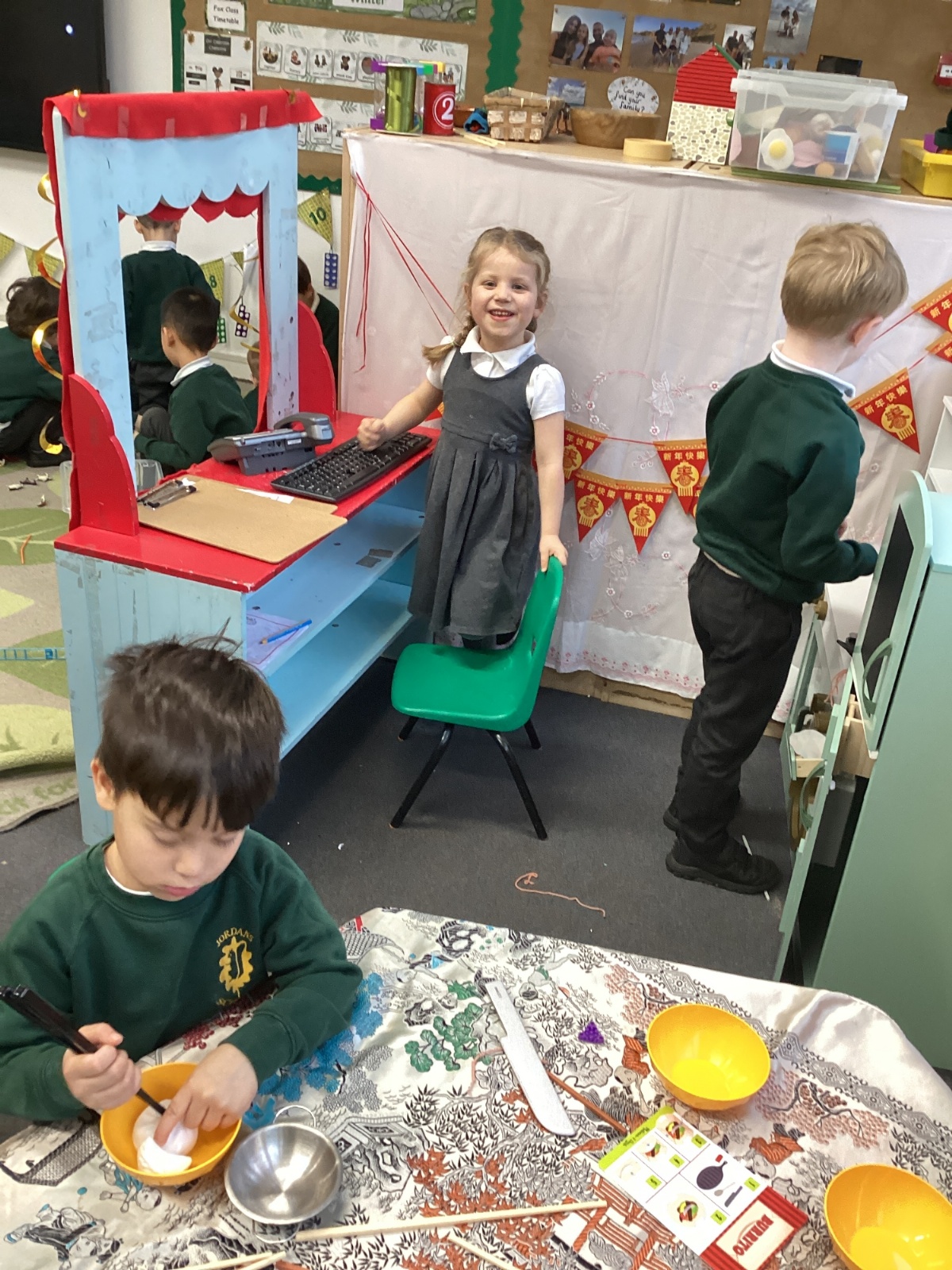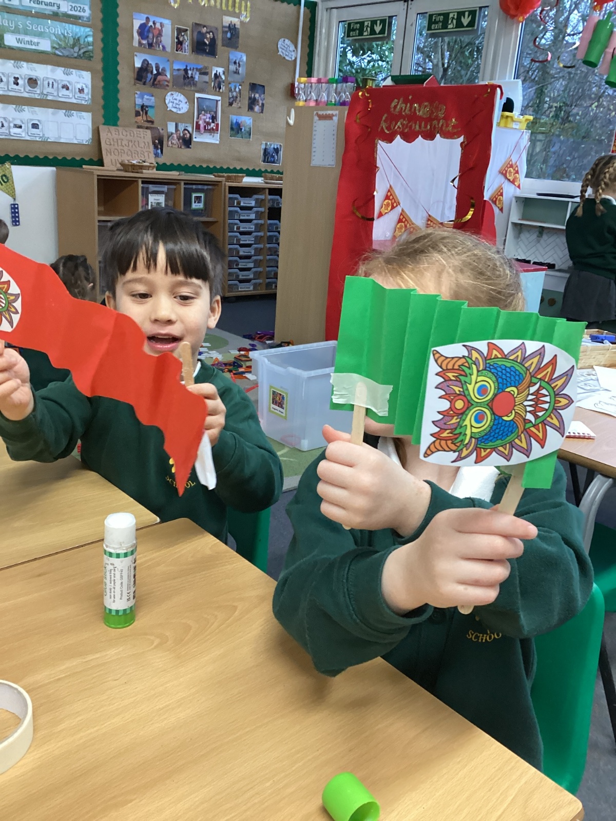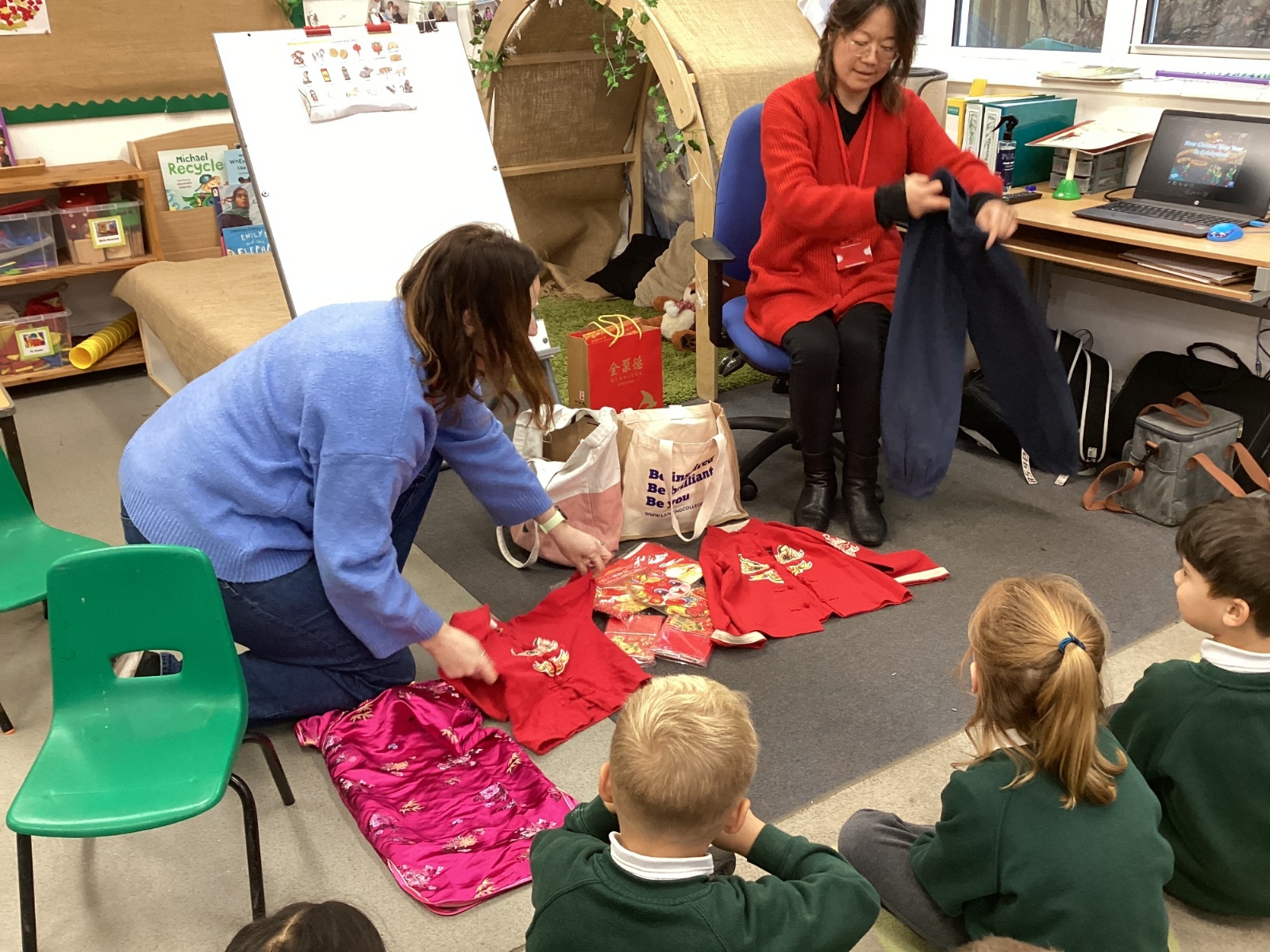 This week, our Foxes have been learning about the story 'Lanterns and Firecrackers'. We have been discussing about celebrations and how Chinese New Year is celebrated at home. We also took part in a class Dragon dance which was a great success. In Literacy, our Foxes have been acting out the story of the 'Great Race' and sequencing pictures. During our phonics lessons, we have been recapping all of our sounds, digraphs and trigraphs that we have learnt so far. In Maths, we have been comparing and measuring length and height of our Fox class children. In PSHE, we learnt about how our bodies are our own and learnt our 'Pants are Private' song linked to NSPCC. During our Forest School sessions, we have been continuing to learn about potions and mixing natural herbs found around us! For our UTW lesson, we were lucky to have to Fox Parents to come in and talk about how they celebrate Chinese/Lunar New Year. We got to see some wonderful clothing, decorations and even a lucky red envelope to take home with a special bracelet inside!