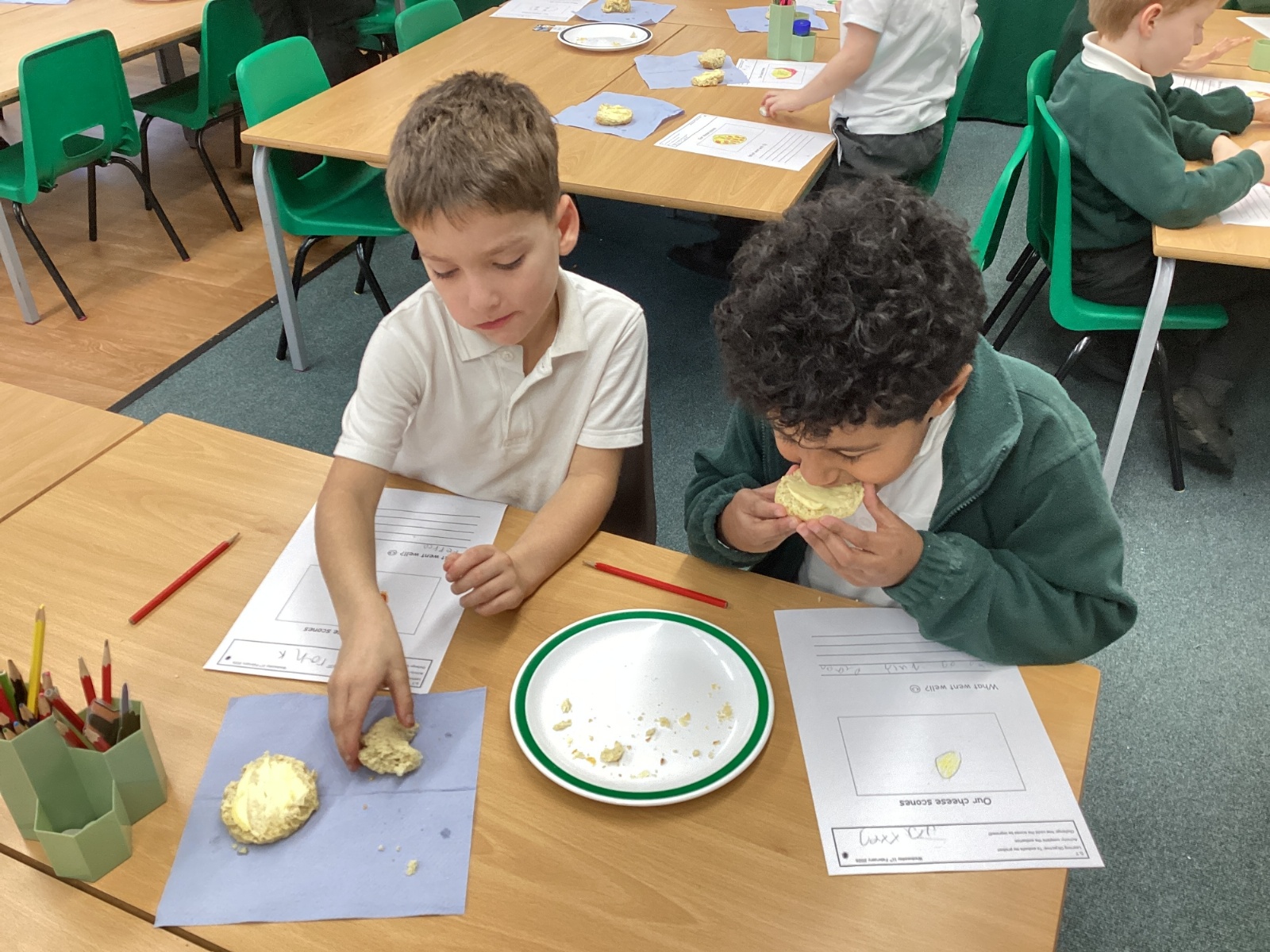 This week in Owl class, we were busy baking! We followed a recipe very carefully to bake cheese scones. We used all the skills we have learnt such as rubbing butter in to flour and mixing. Later on, we tasted our cheese scones and evaluated the taste, texture and appearance of the scones. We all loved them! In Maths this week, we have been continuing to work with numbers to 20. We have been practising the skill of doubling numbers to 20. We practised this practically and through written questions. In English this week our book of the week has been 'Jonty Gentoo, the adventures of a penguin'. We loved hearing about Jonty's adventures around the world to get to the South Pole. We wrote fact files all about Gentoo penguins.