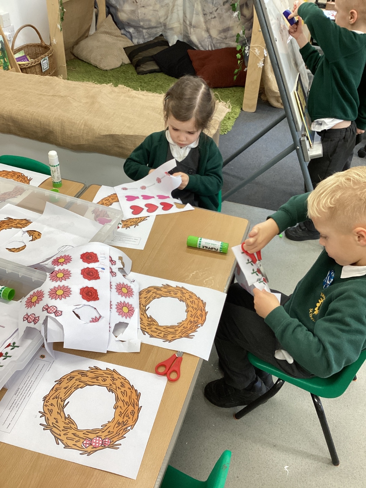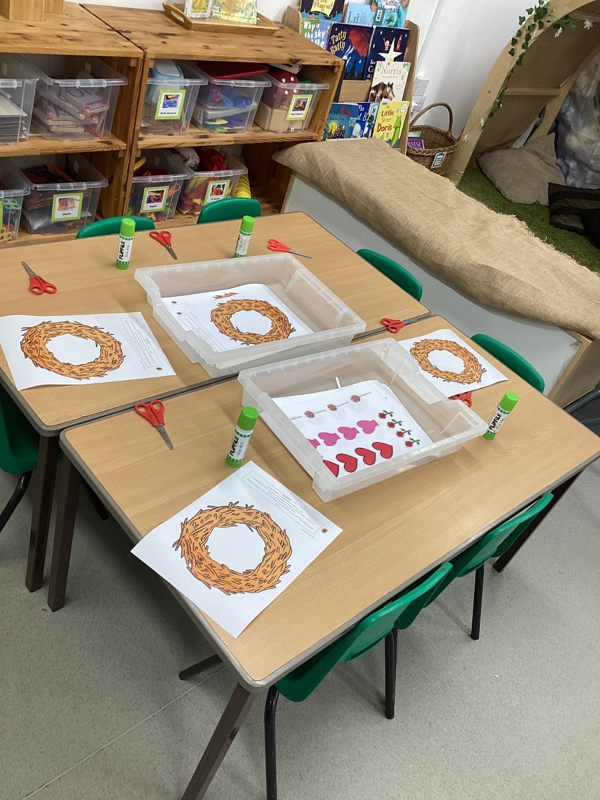-Cutting and creating our Valentines Wreaths