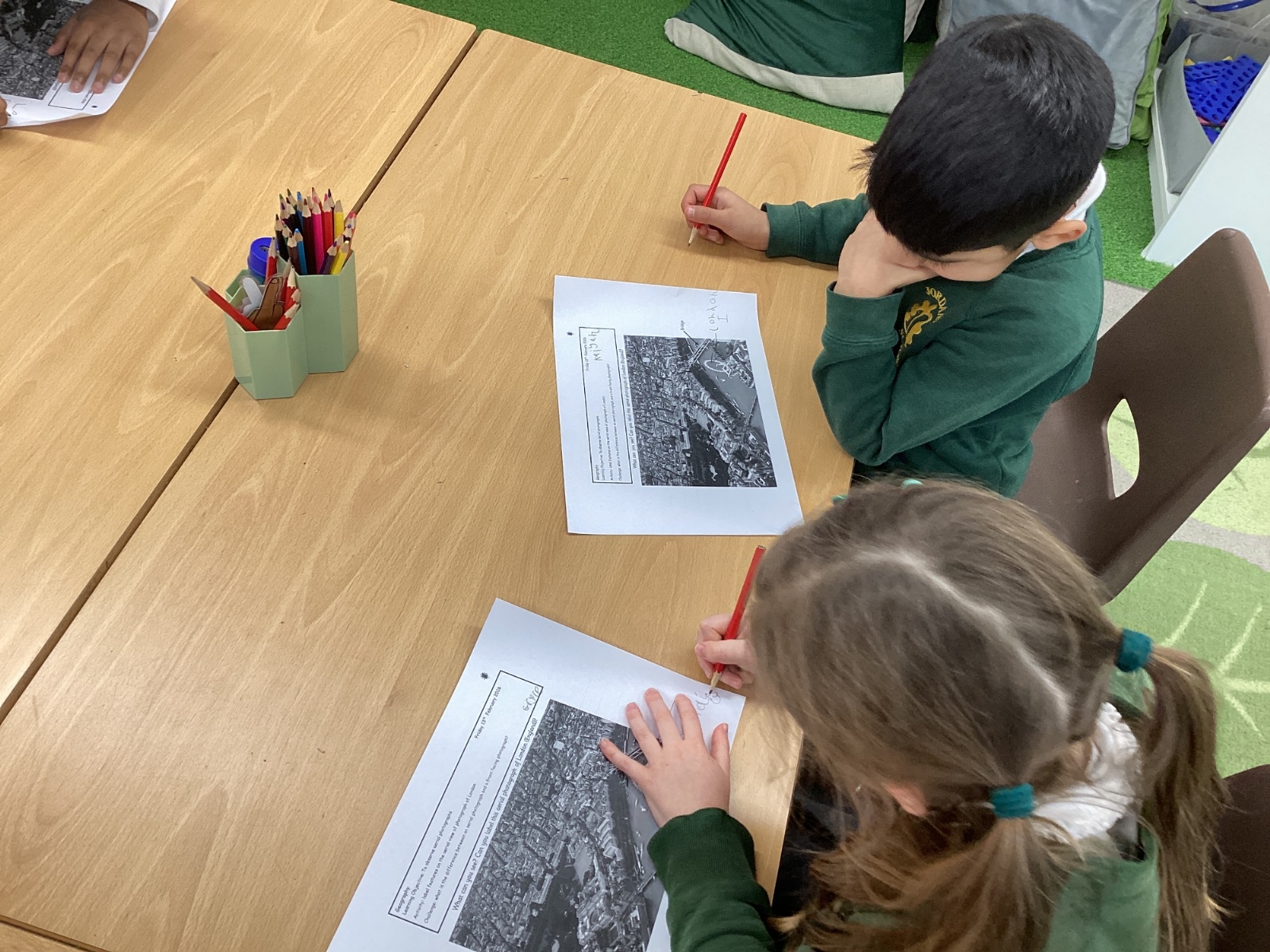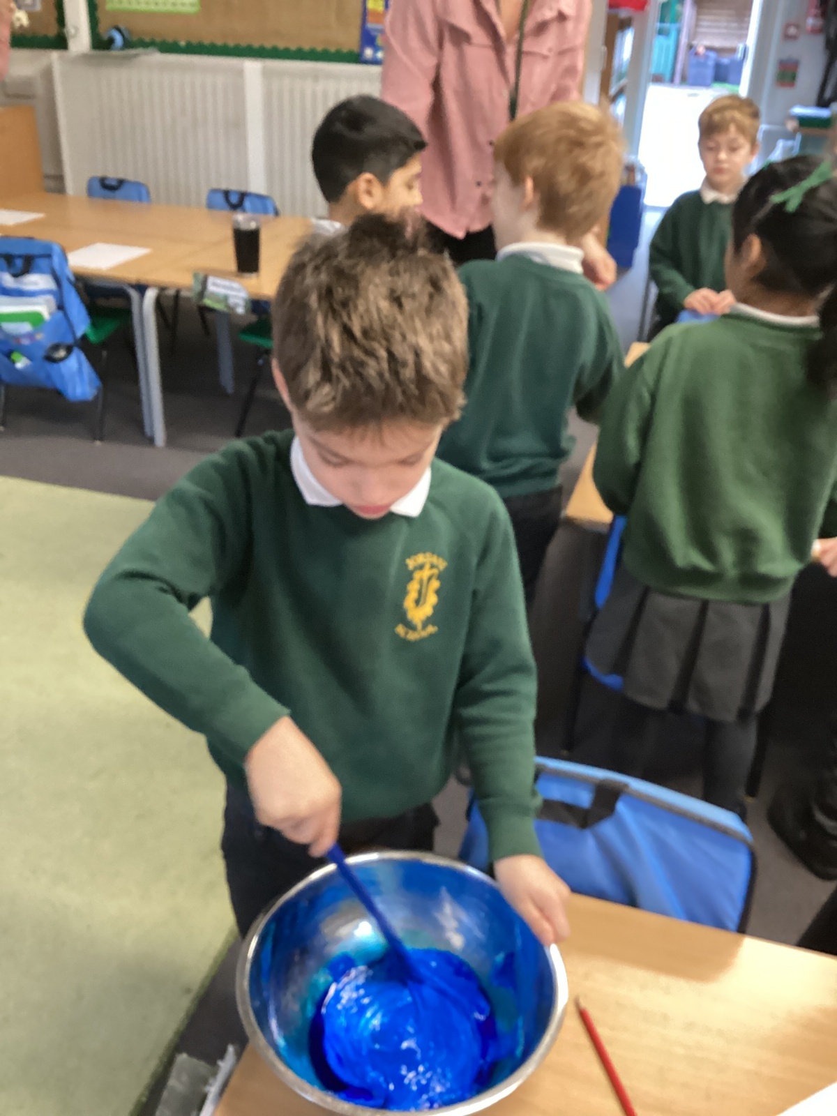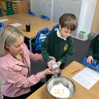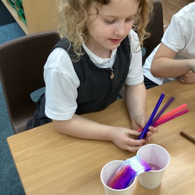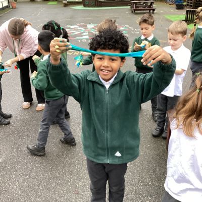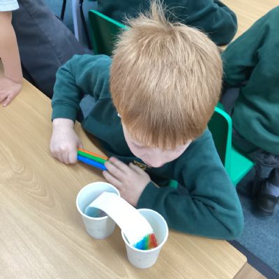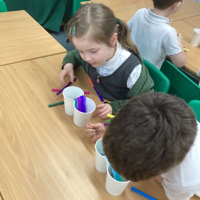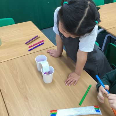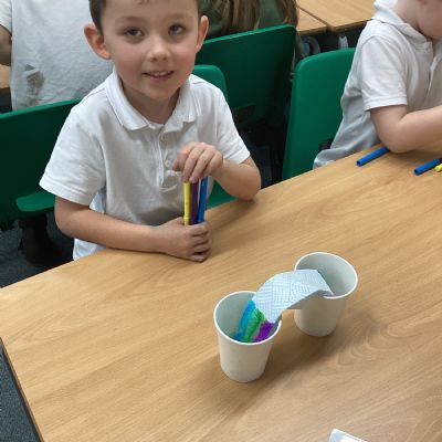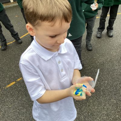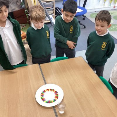 On Wednesday, it was Science Day! The theme of our Science Day this year was colour. We had a fantastic time carrying out experiments all about colour; we found out how to create slime, we explored how water molecules can create a rainbow and we watched skittles create a rainbow too! This week our book of the week has been 'One world', we explored how we can care for our planet and why it is so important. We created posters for our school to encourage everyone to care for our planet in many different ways. In Computing, we used our knoweldge of buttons and inputting information to programme floor robots. In Georgraphy we learnt about ariel views and explored an ariel view of London.