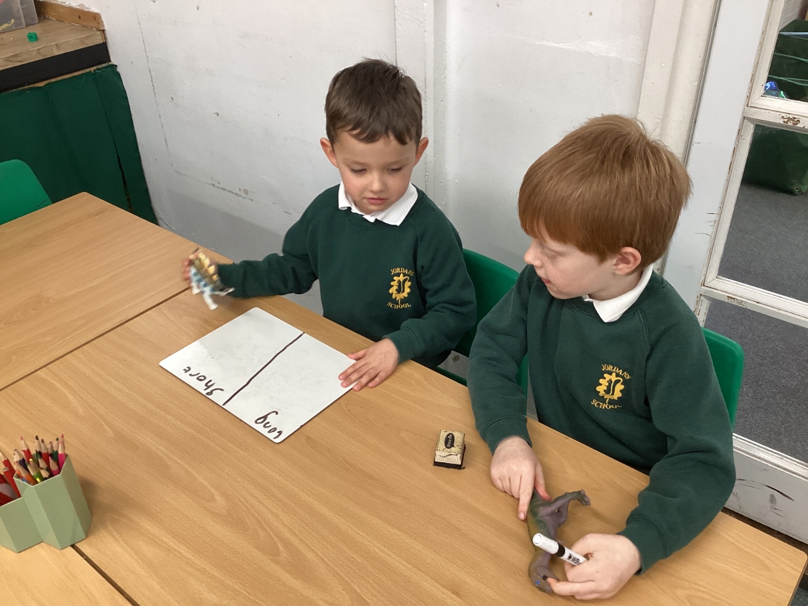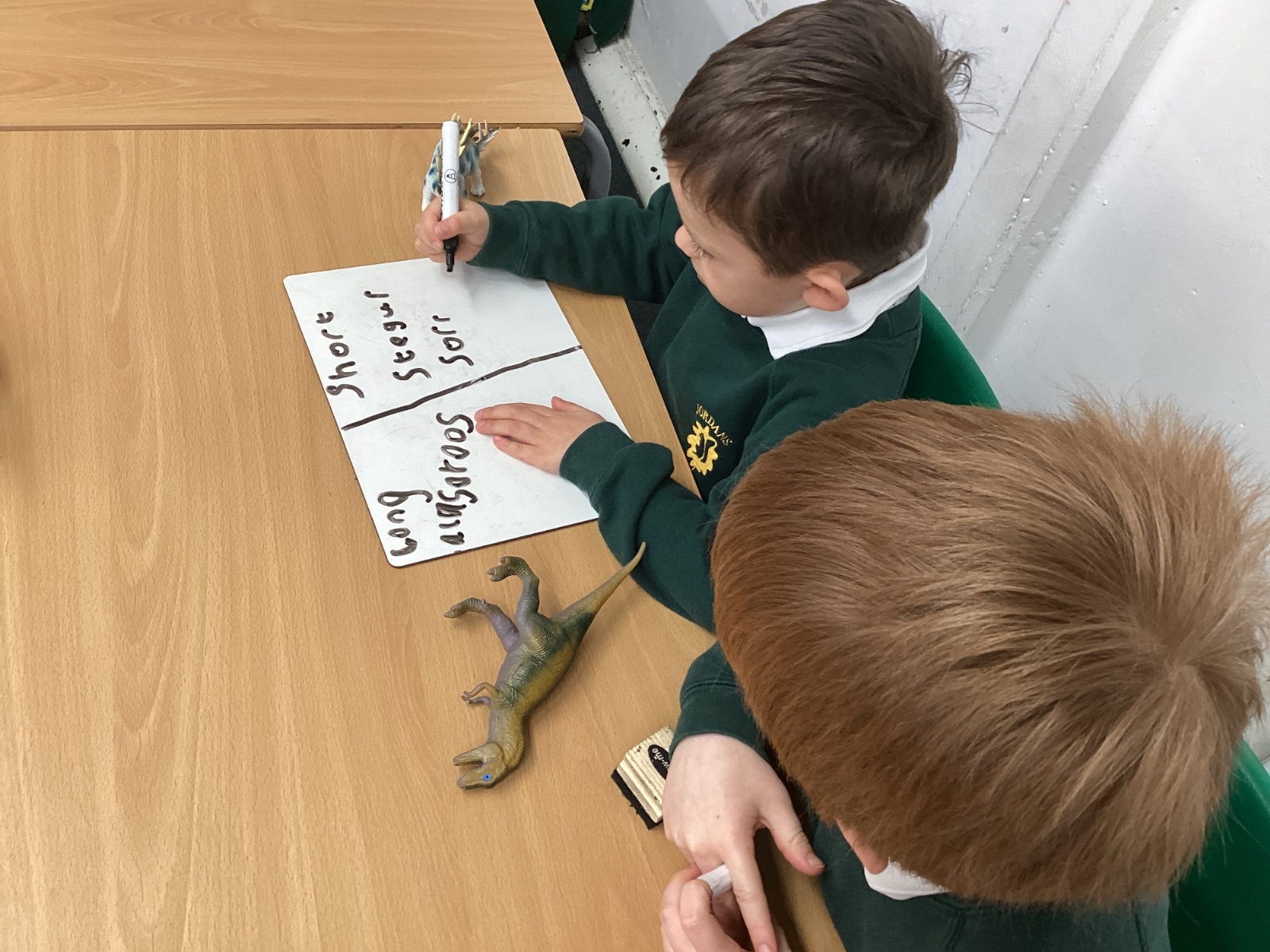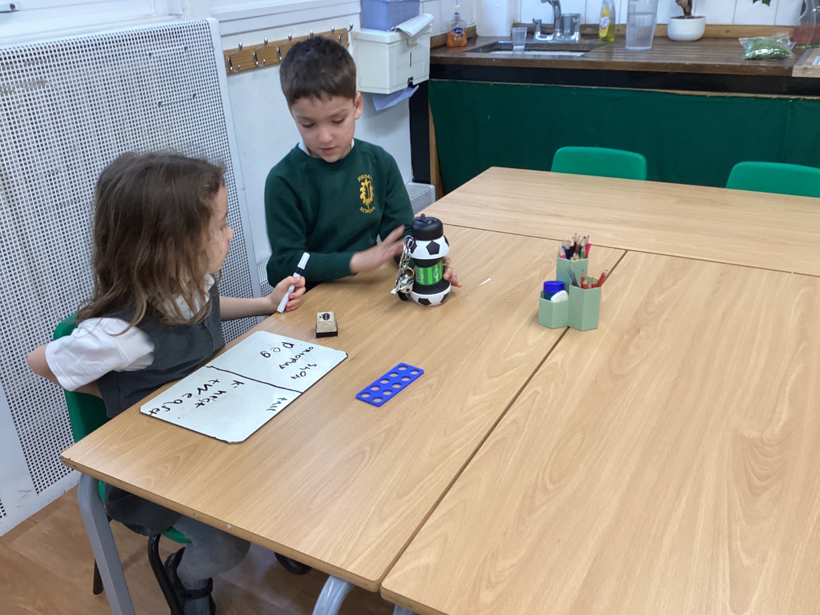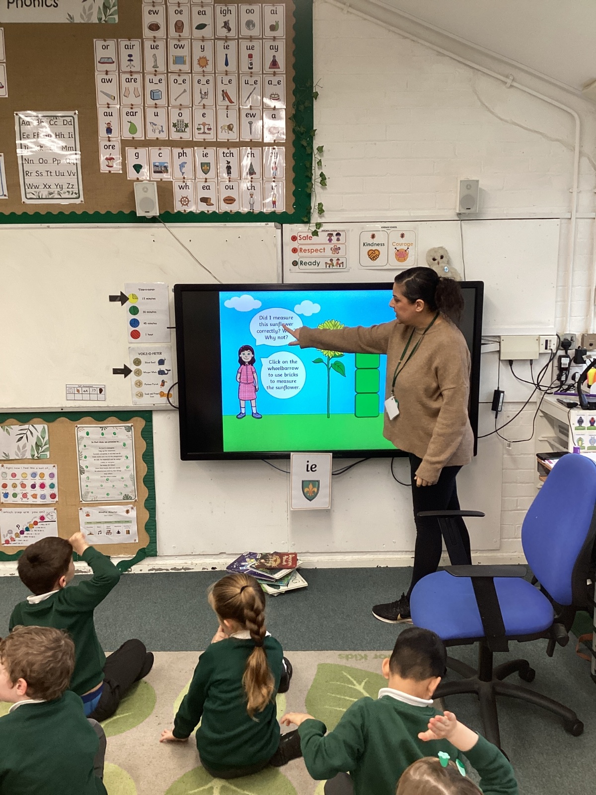 In Maths this week, we have been exploring length and height. We have been using the language longer, shorter and taller. We have also been measuring objects using non- standard units of measure such as cubes.