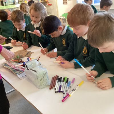 In Art this week we used all of our knowledge and skills in collage to create a collage of a toy. The children created wonderful pieces of artwork using a range of textures and colours.
