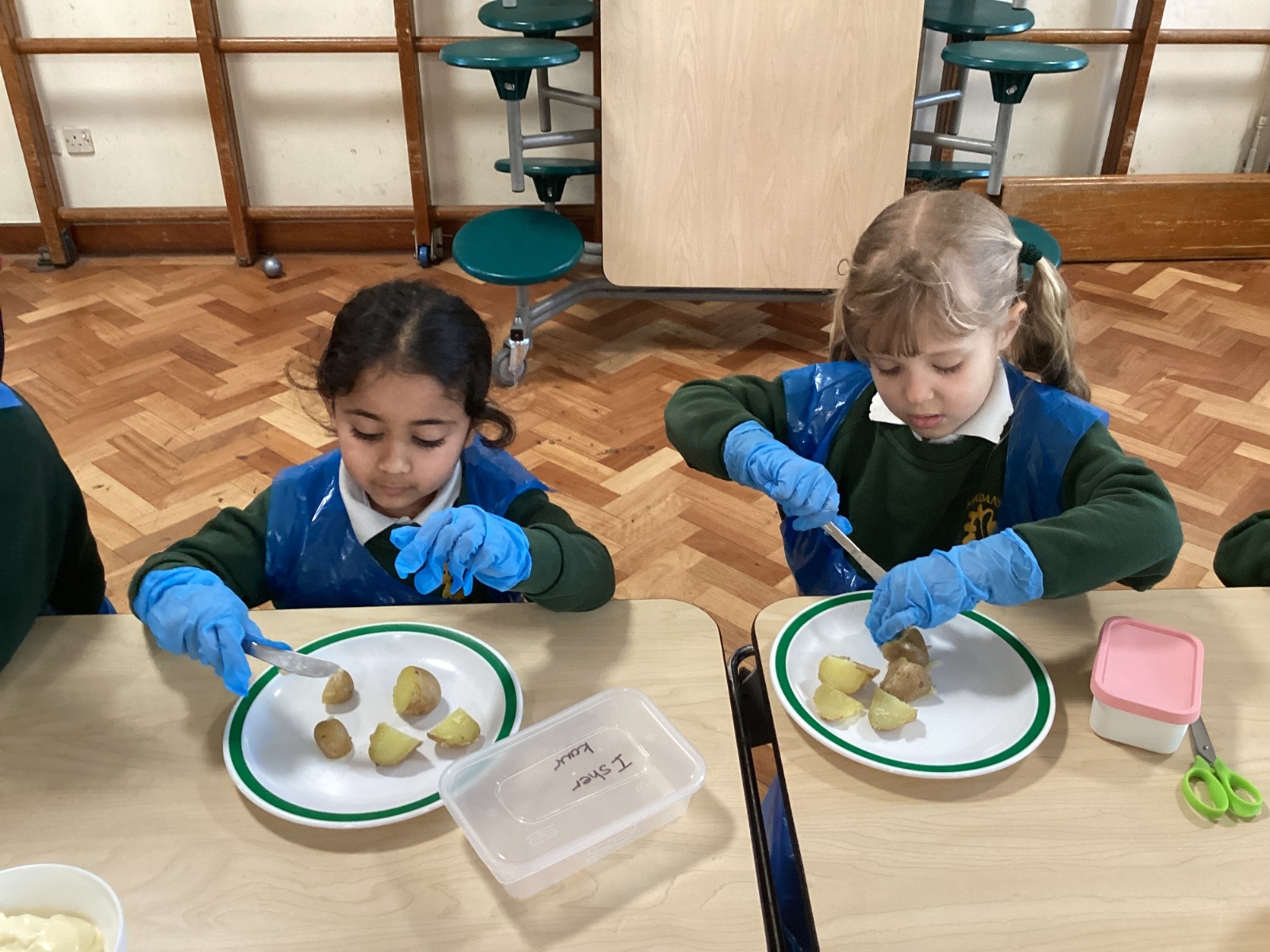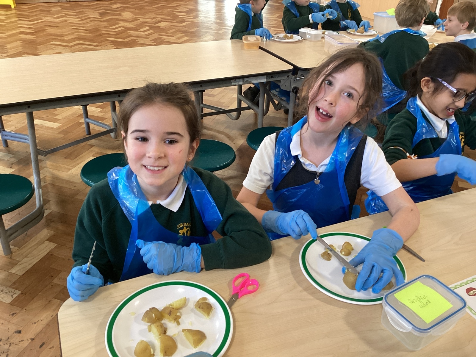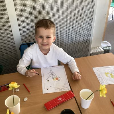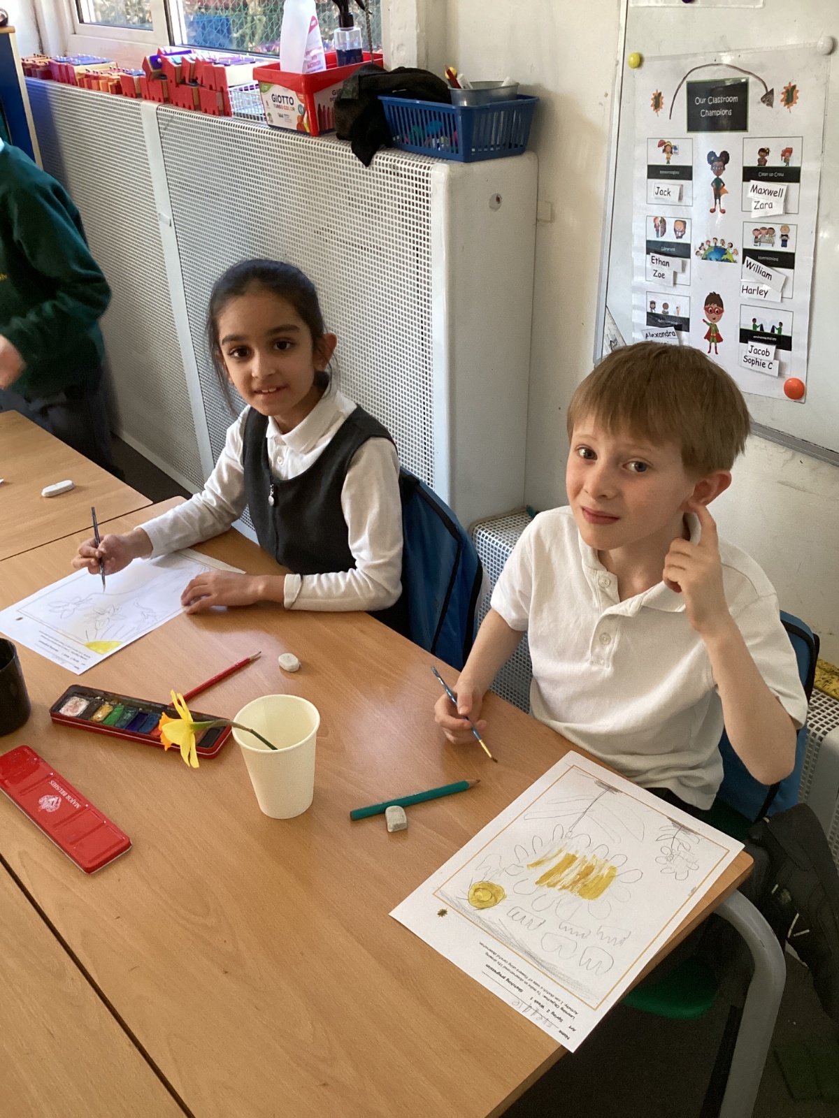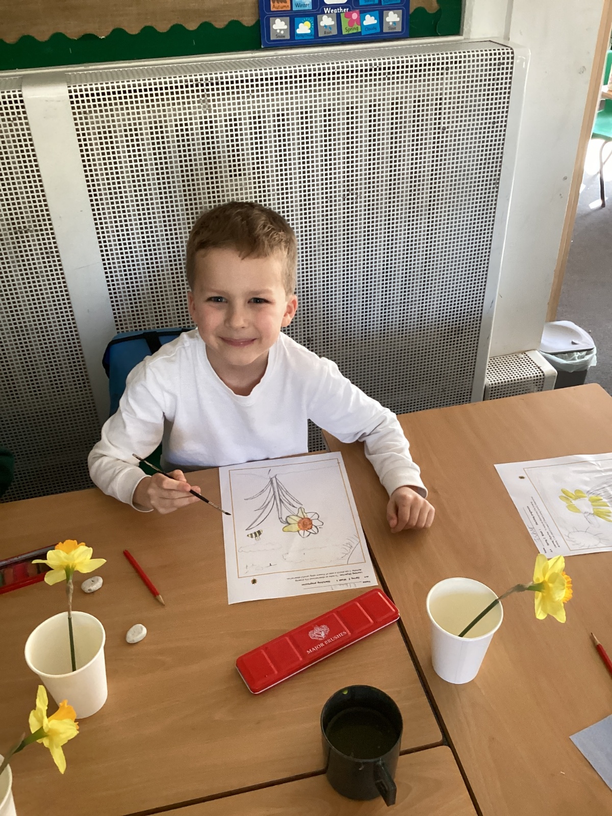 In DT, we made our potato salads — which I’m sure you heard all about — and they were very tasty! We’ve also been practising for our Easter assembly, perfecting Hot Cross Buns on the chime bars. In Art, the children sketched still-life daffodils and then used watercolours to bring them to life. These beautiful paintings will be proudly displayed during our assembly.
