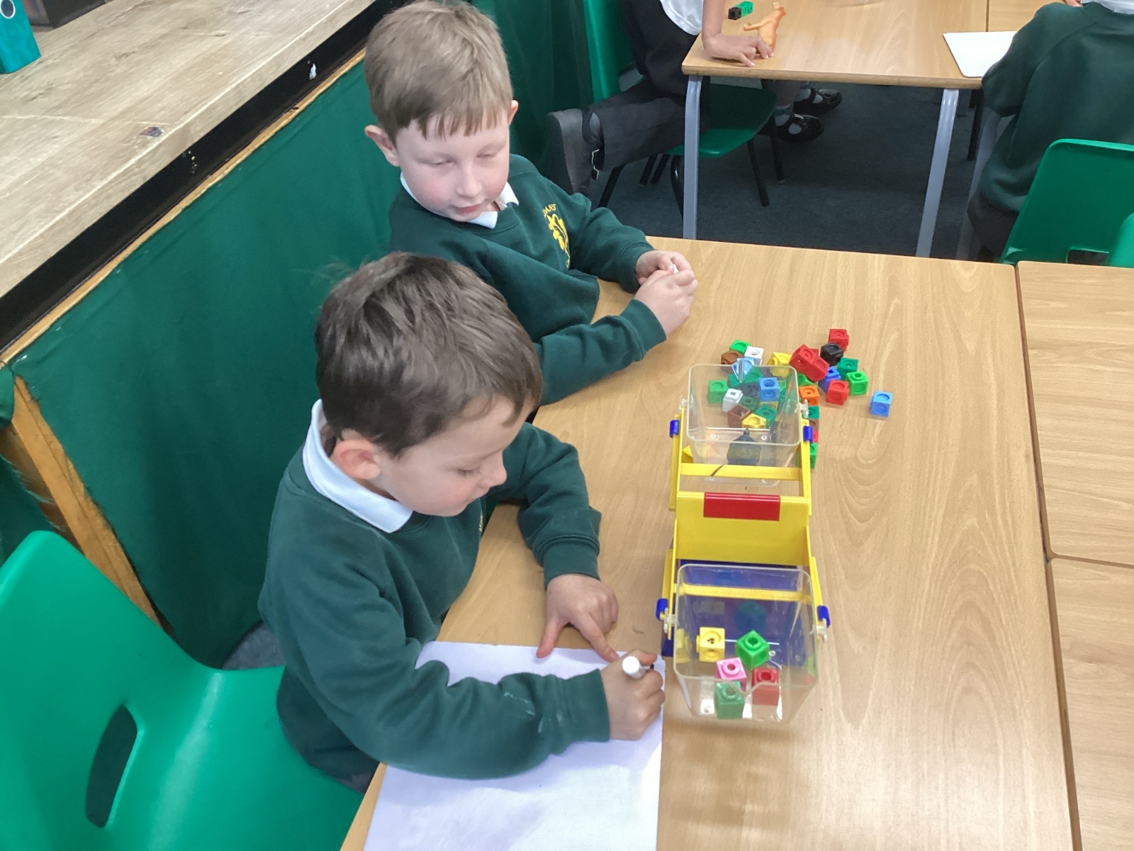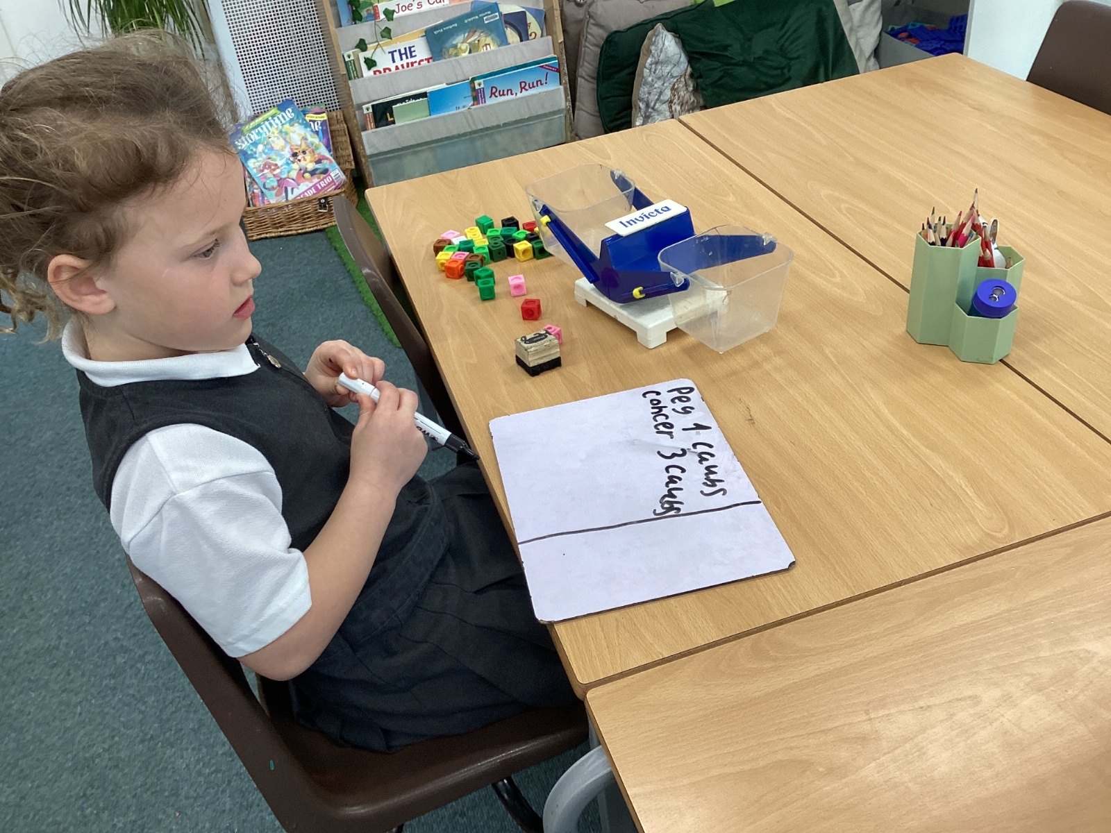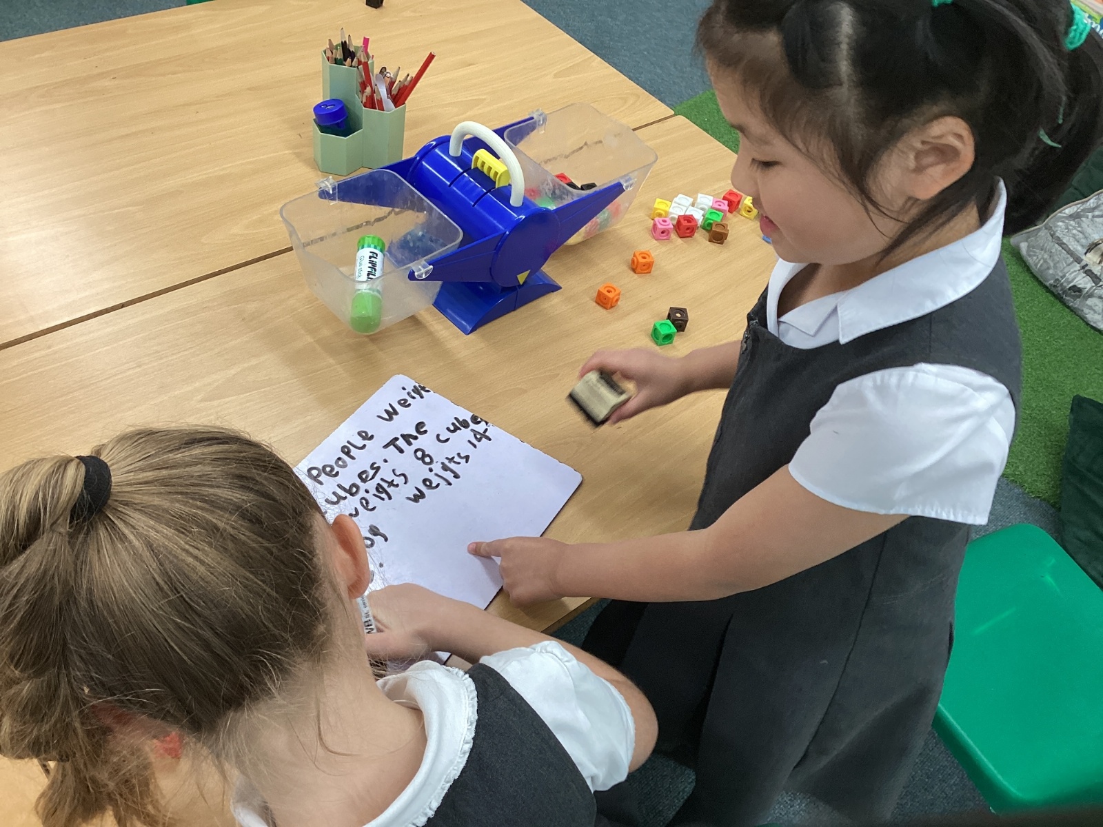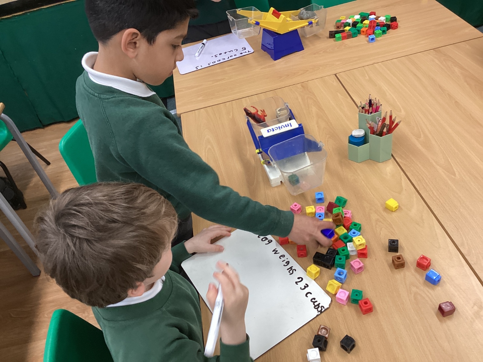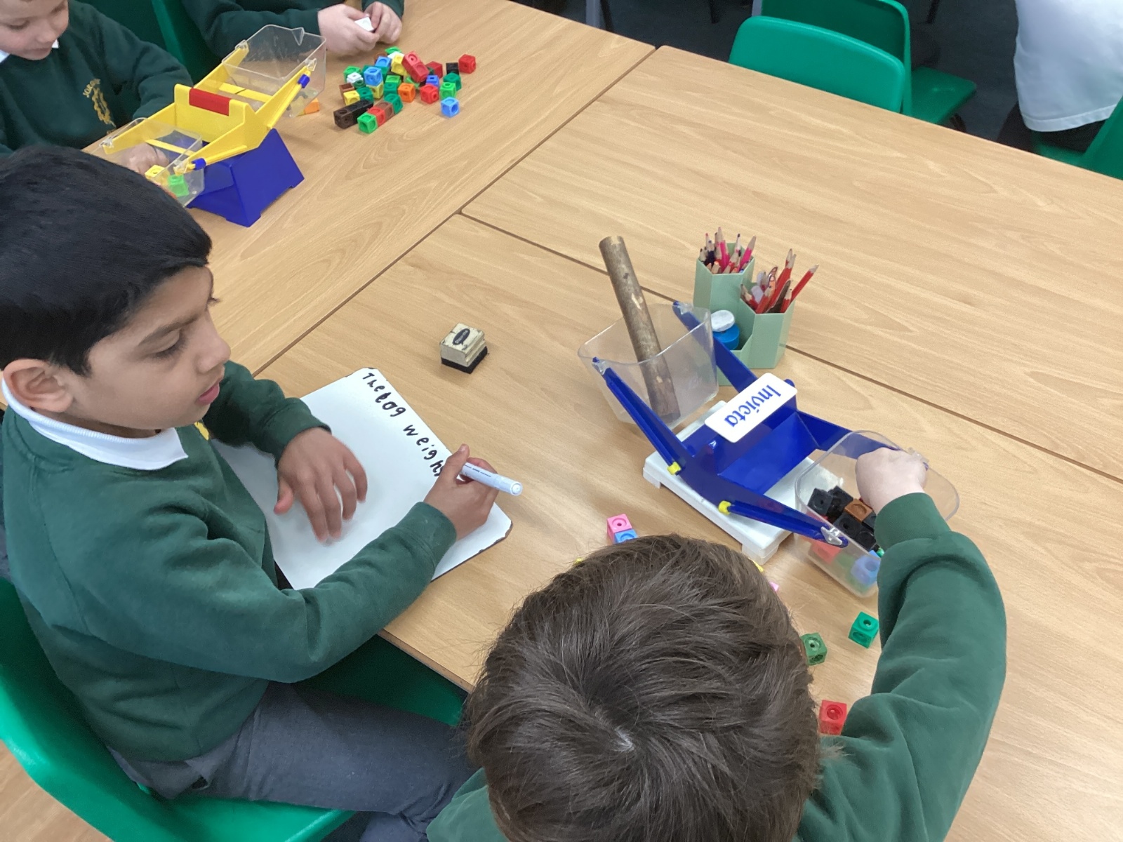 In Maths, we have been learning about mass. We have explored mass using scales and learning how to record this on whiteboards.